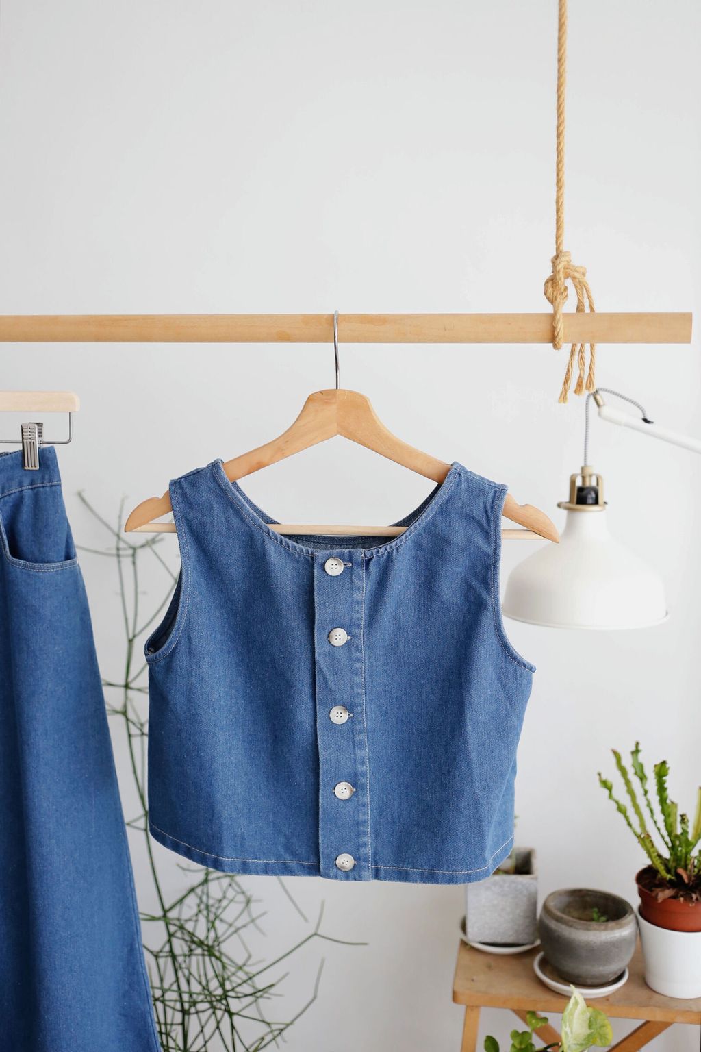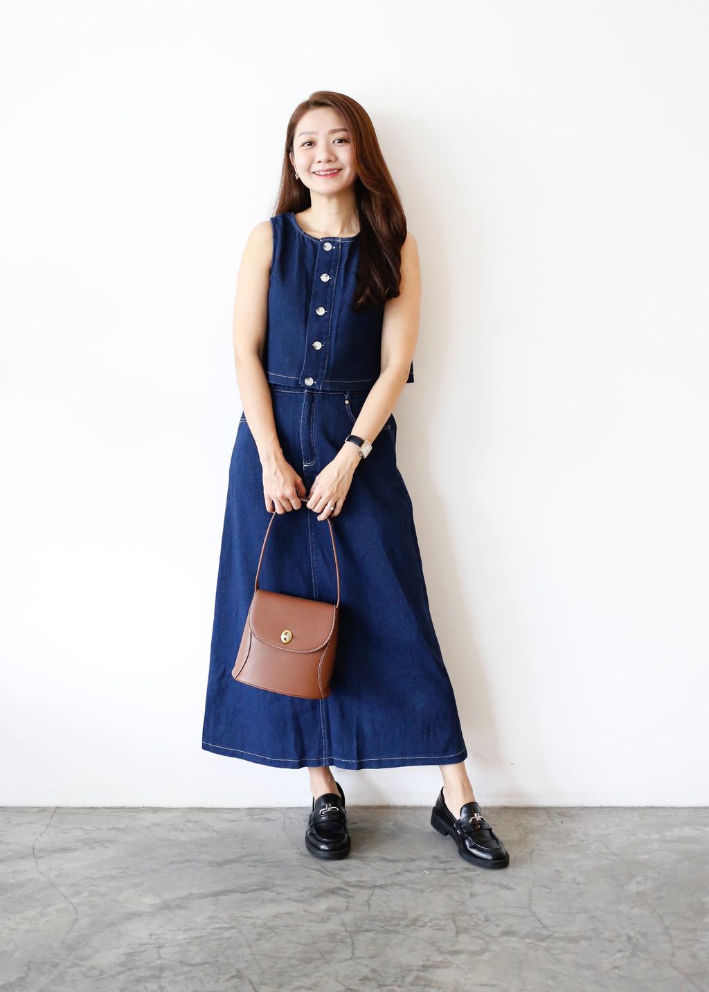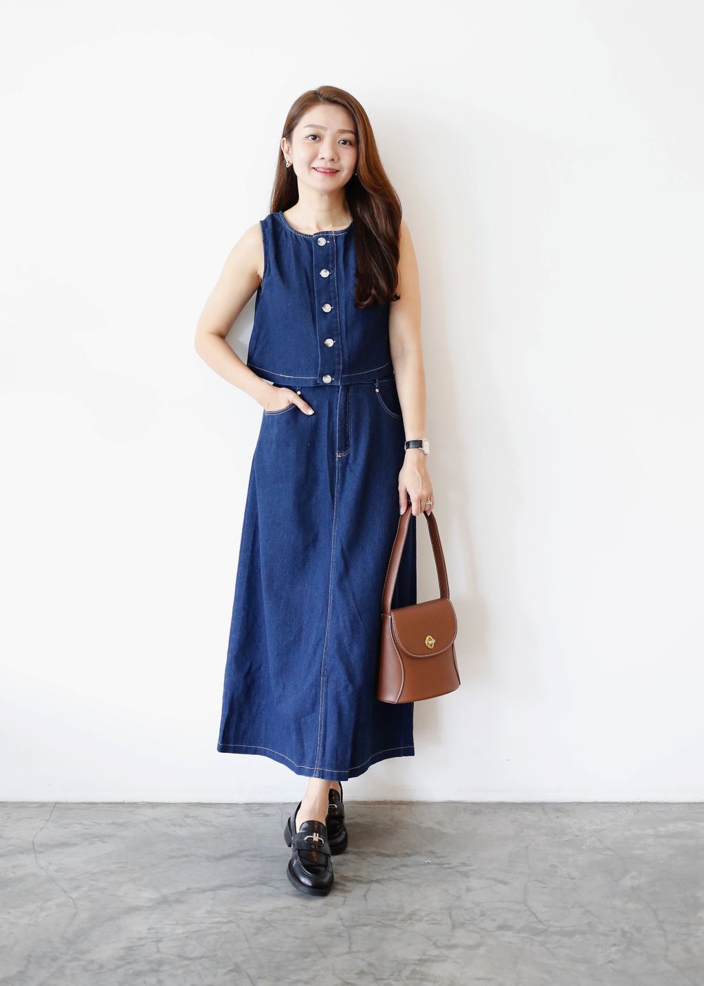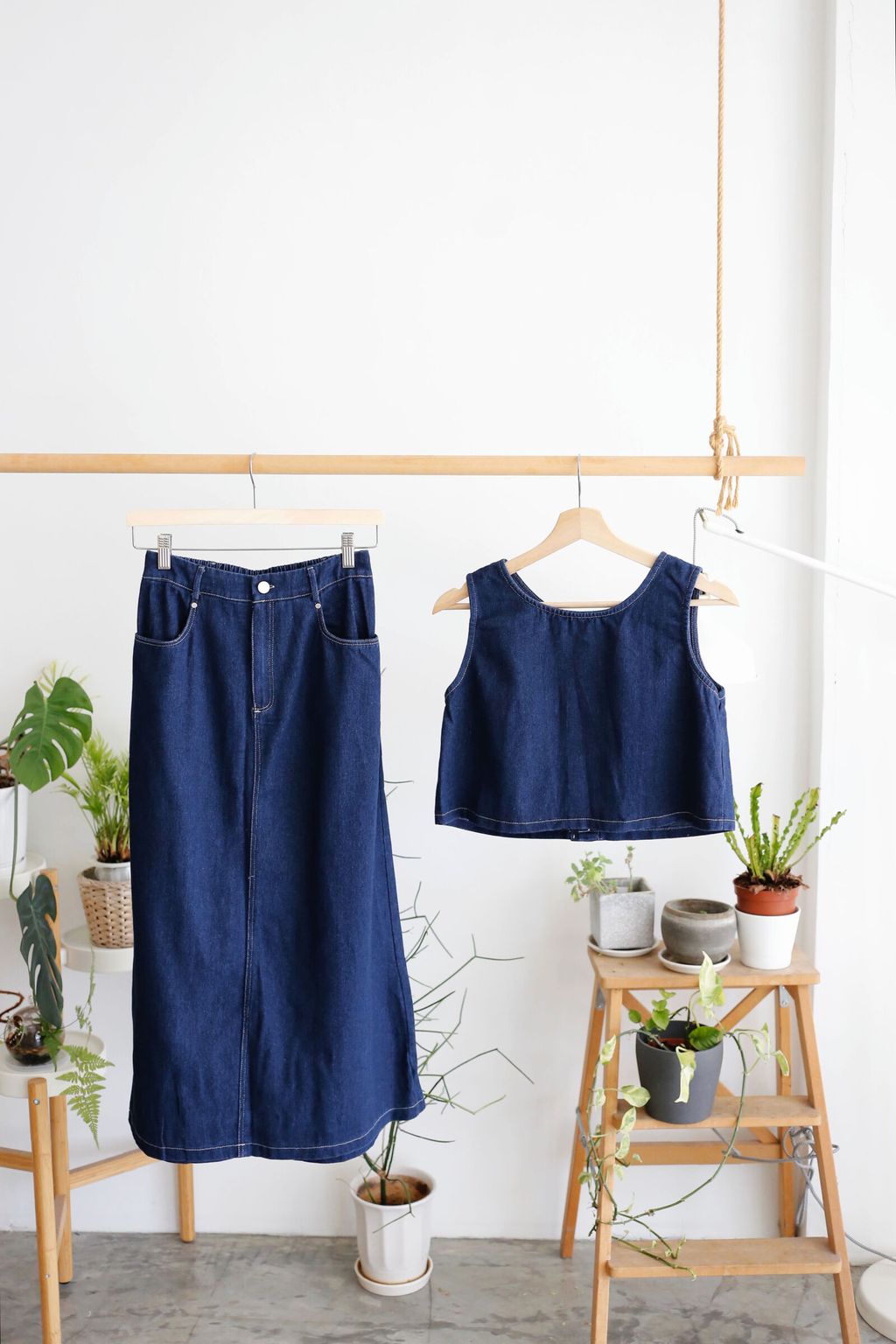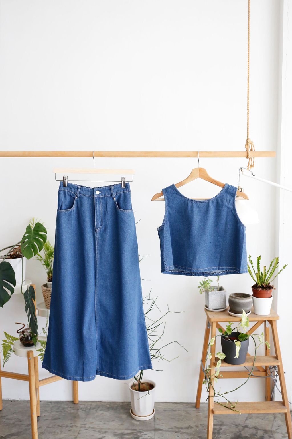 Type: 2PCS Denim Top and Midi Skirt Set | Non Stretchable Denim Fabric | Stretchable Waistband for Skirt | Front Zipper | Side Pockets | Functional Button for Top | Wear the Top Two Ways - Front or Back