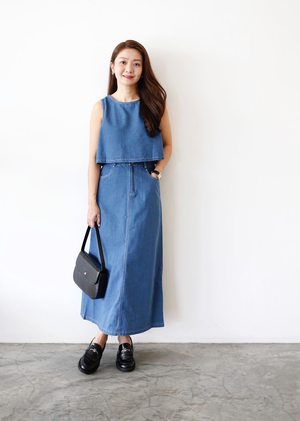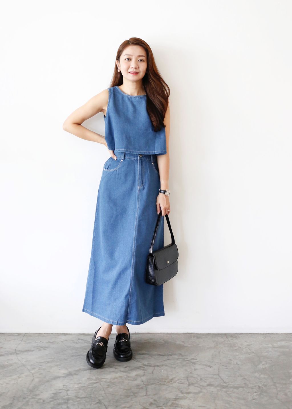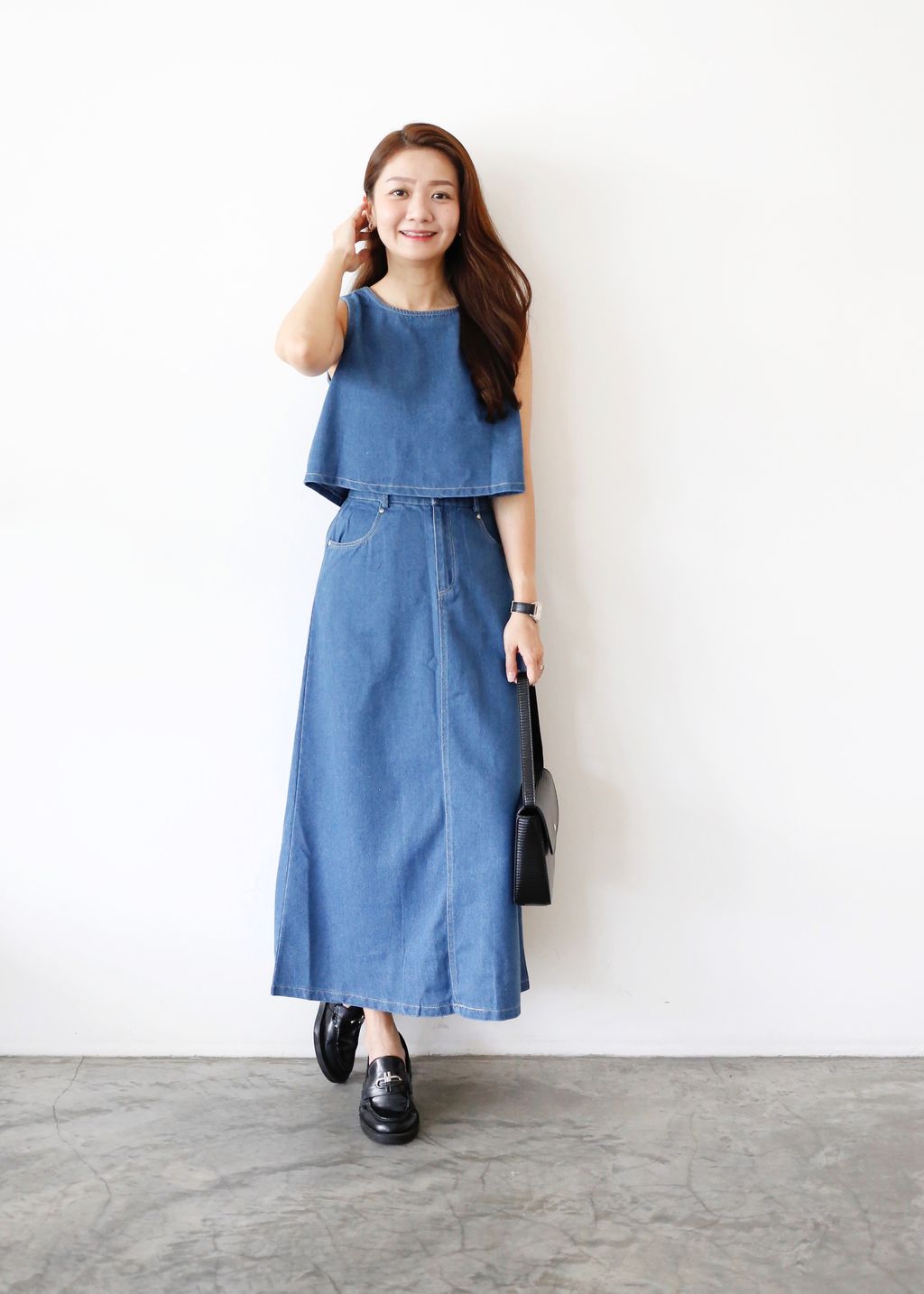 2PCS Denim Top and Midi Skirt Set