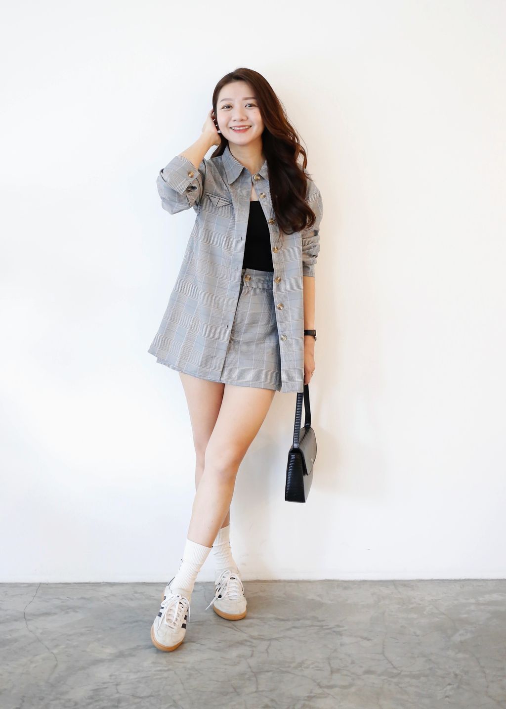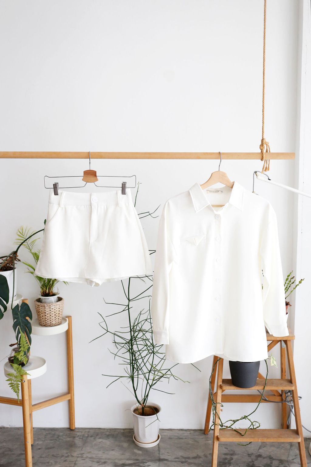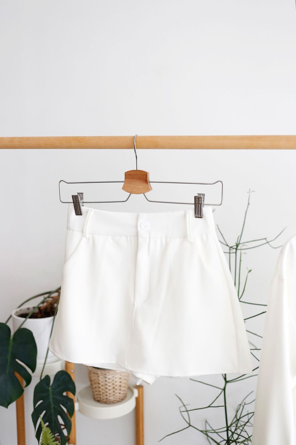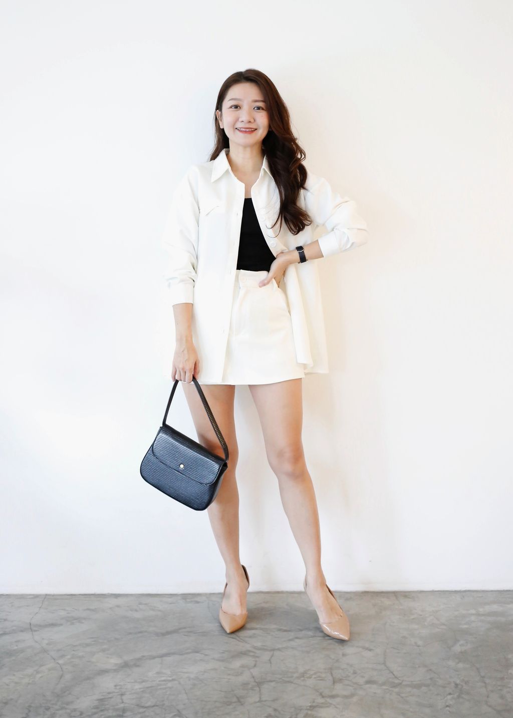 Type: 2PCS Long Sleeves Soft Shirt with Skort Set | PREMIUM SERIES | Suit Fabric | Slightly High Waist for Skort | Front Zipper | Side Pockets | Front is Skirt Looking, Back is Pants Looking | Cutting Slightly Small | Not Stretchable | White Color Pants Comes with Lining