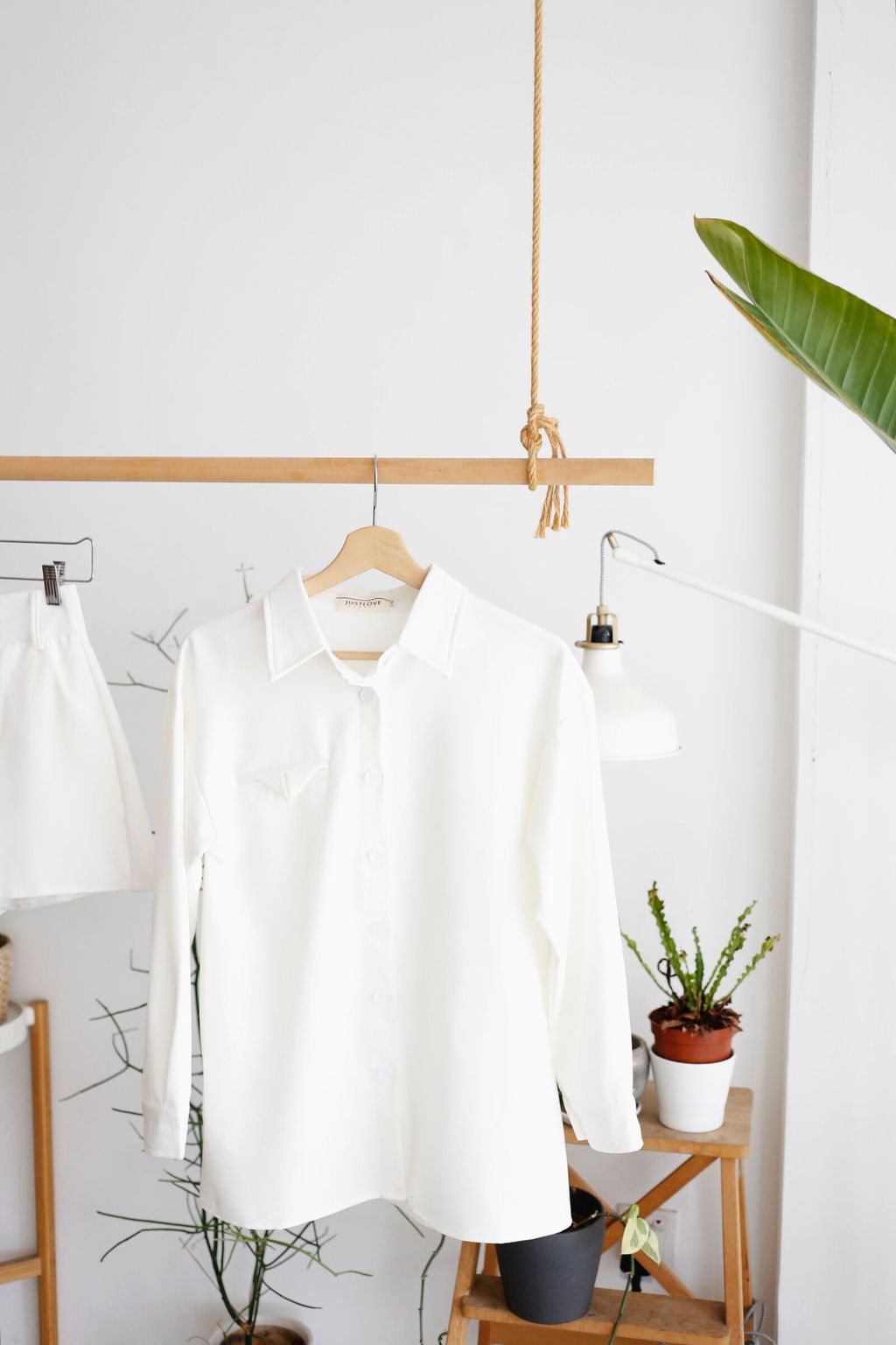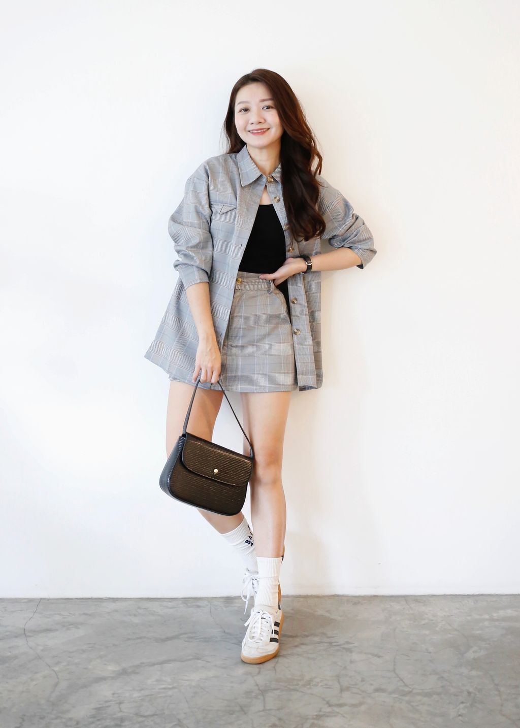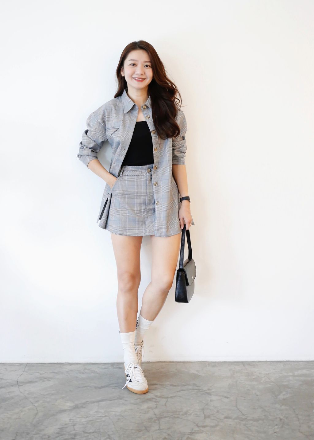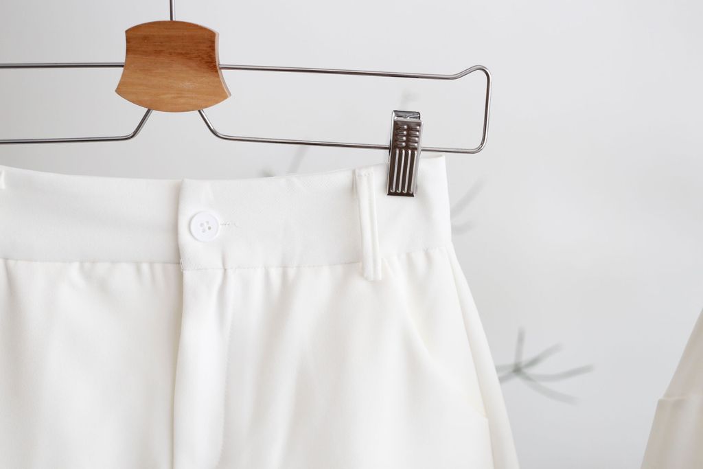 Type: 2PCS Long Sleeves Soft Shirt with Skort Set | PREMIUM SERIES | Suit Fabric | Slightly High Waist for Skort | Front Zipper | Side Pockets | Front is Skirt Looking, Back is Pants Looking | Cutting Slightly Small | Not Stretchable | White Color Pants Comes with Lining