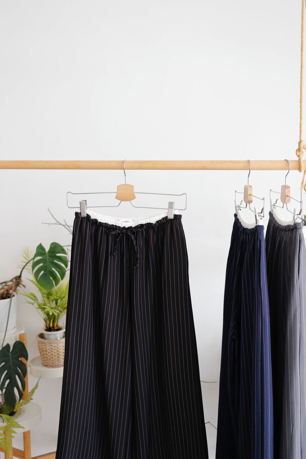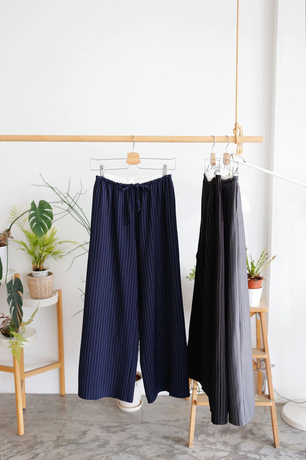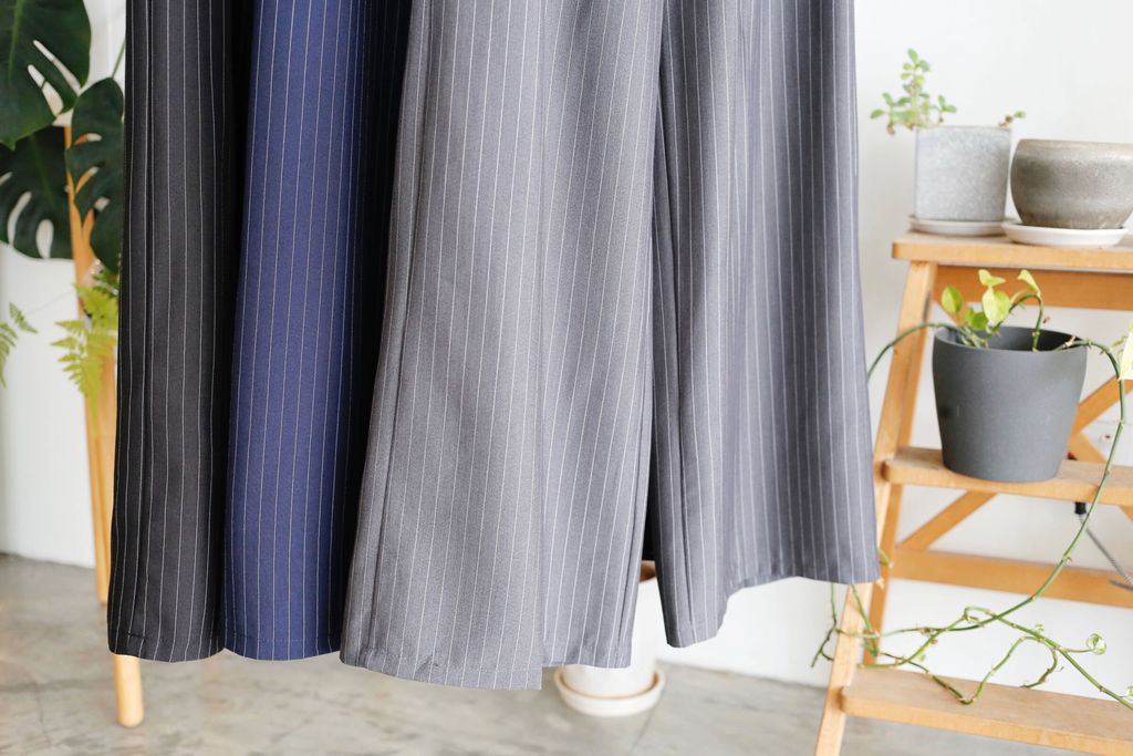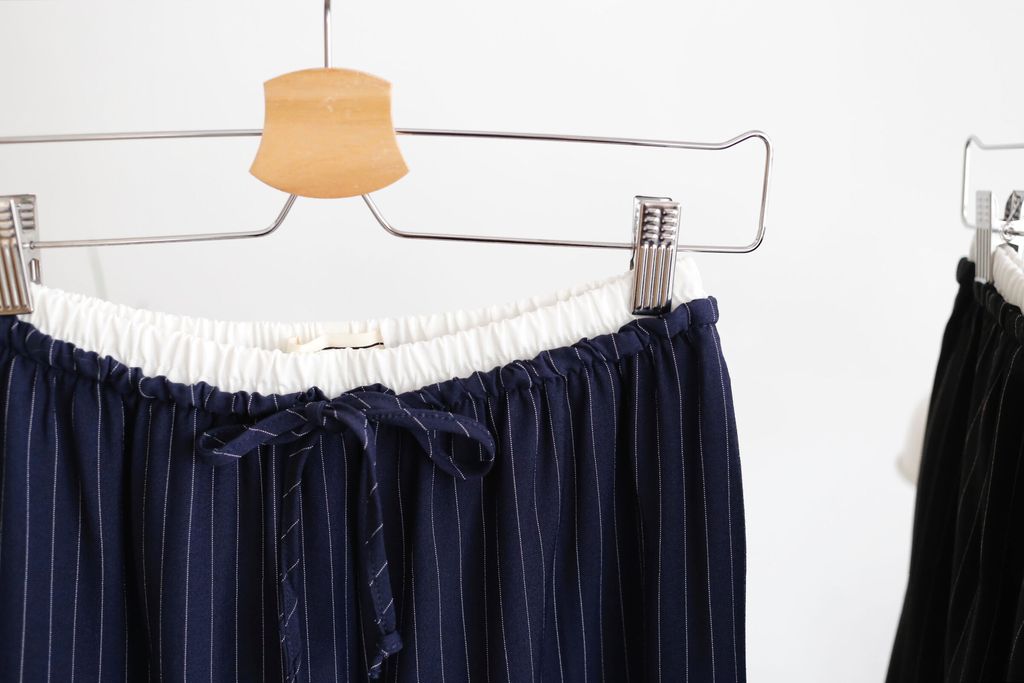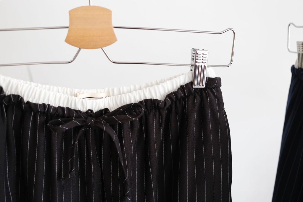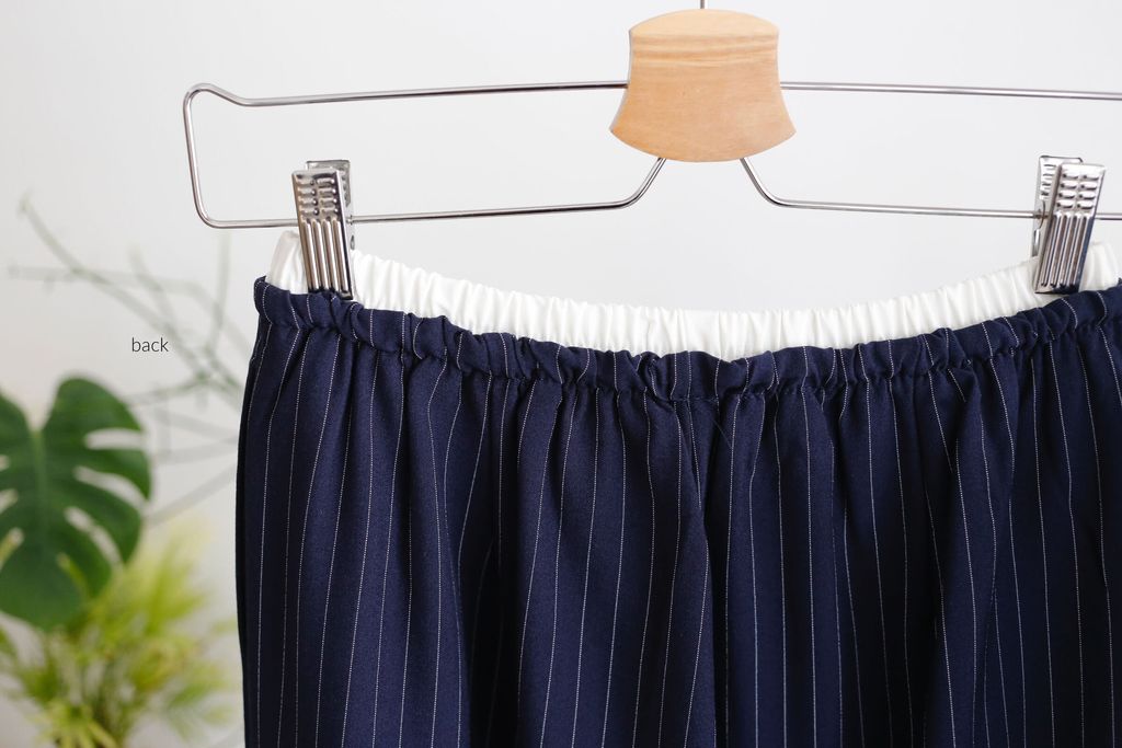 Type: 2-Tone Gather Waist Stripey Wide Leg Pants | Suit Fabric | Stretchable Waistband with Drawstring | Side Pockets
