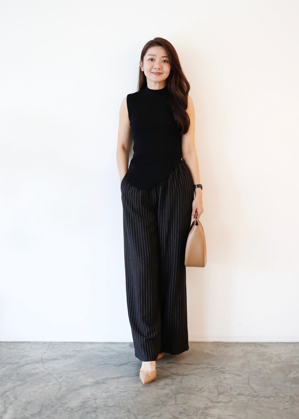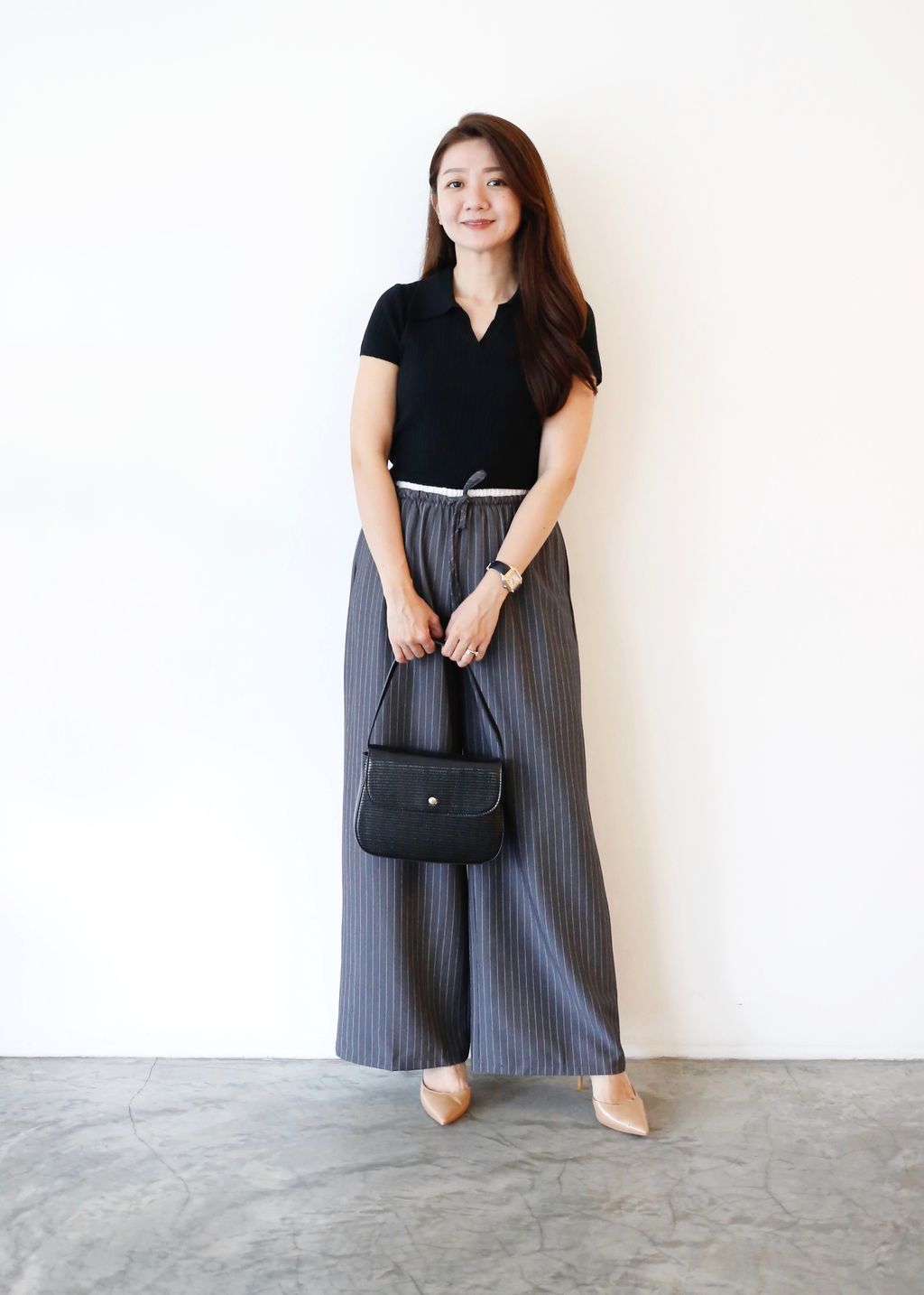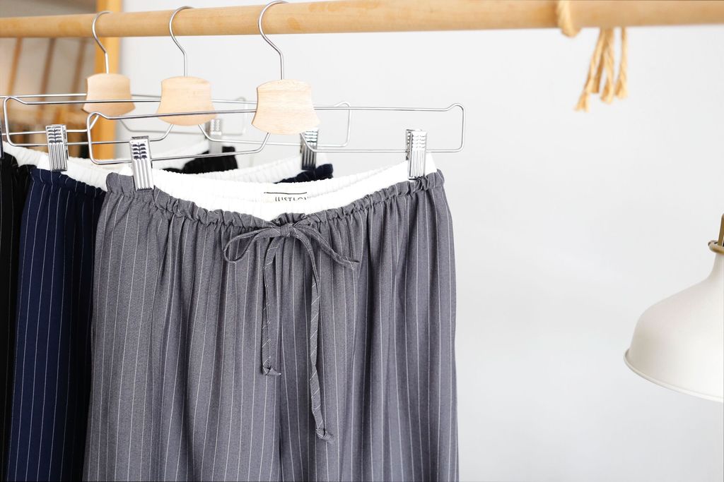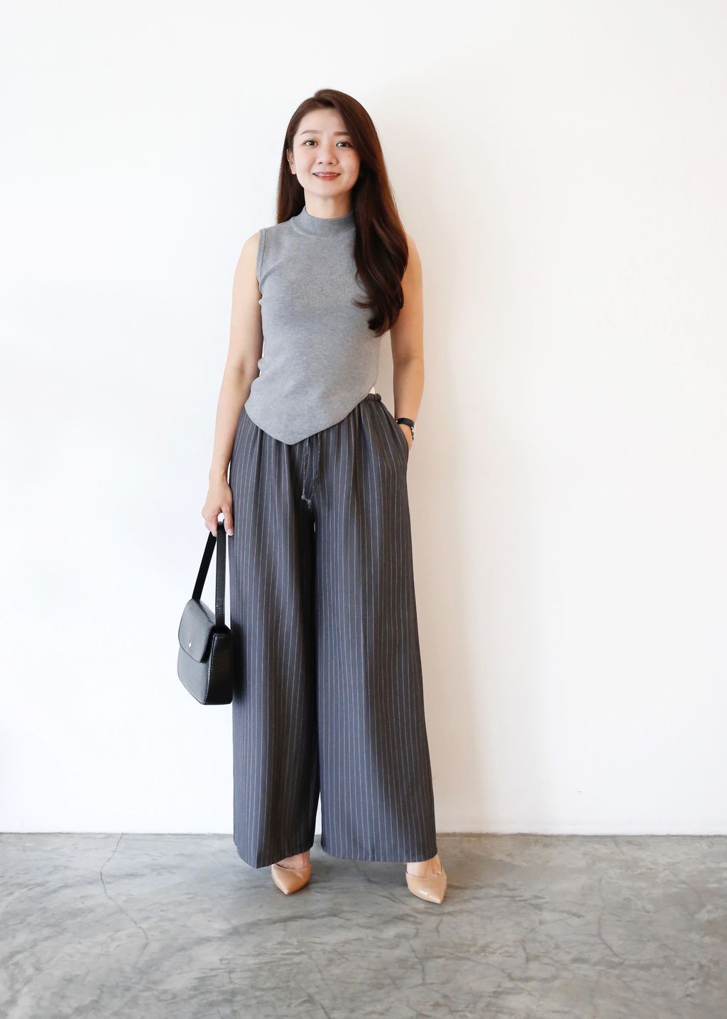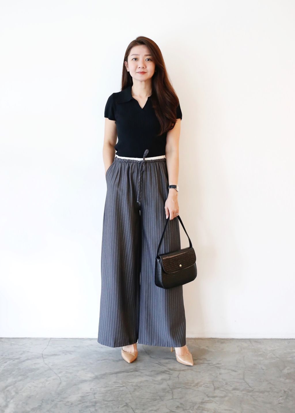 Type: 2-Tone Gather Waist Stripey Wide Leg Pants | Suit Fabric | Stretchable Waistband with Drawstring | Side Pockets