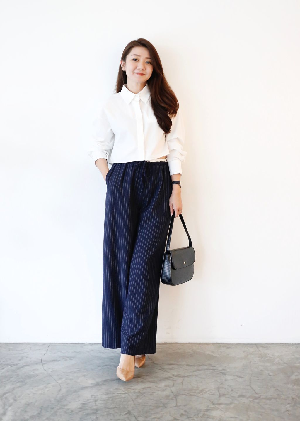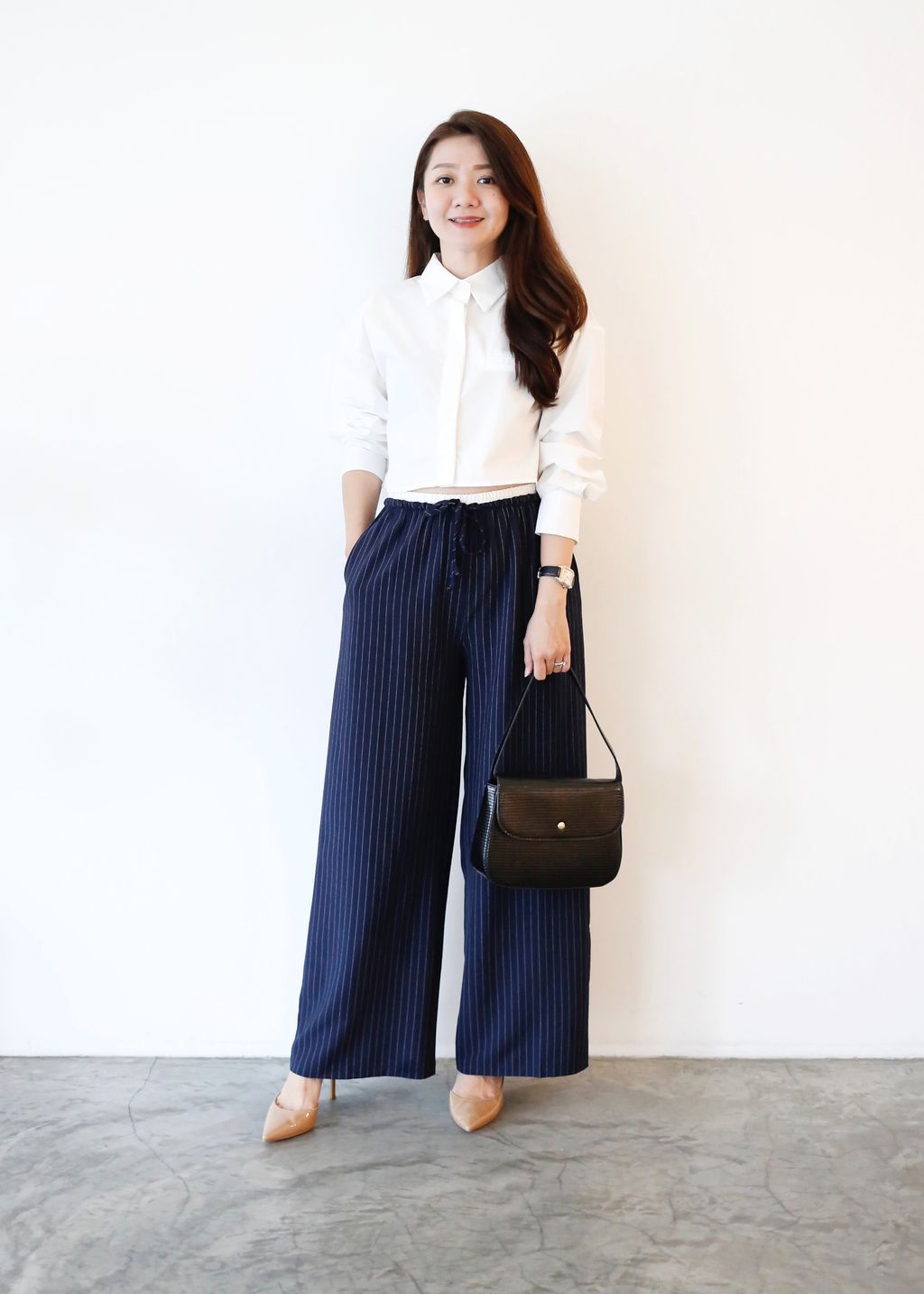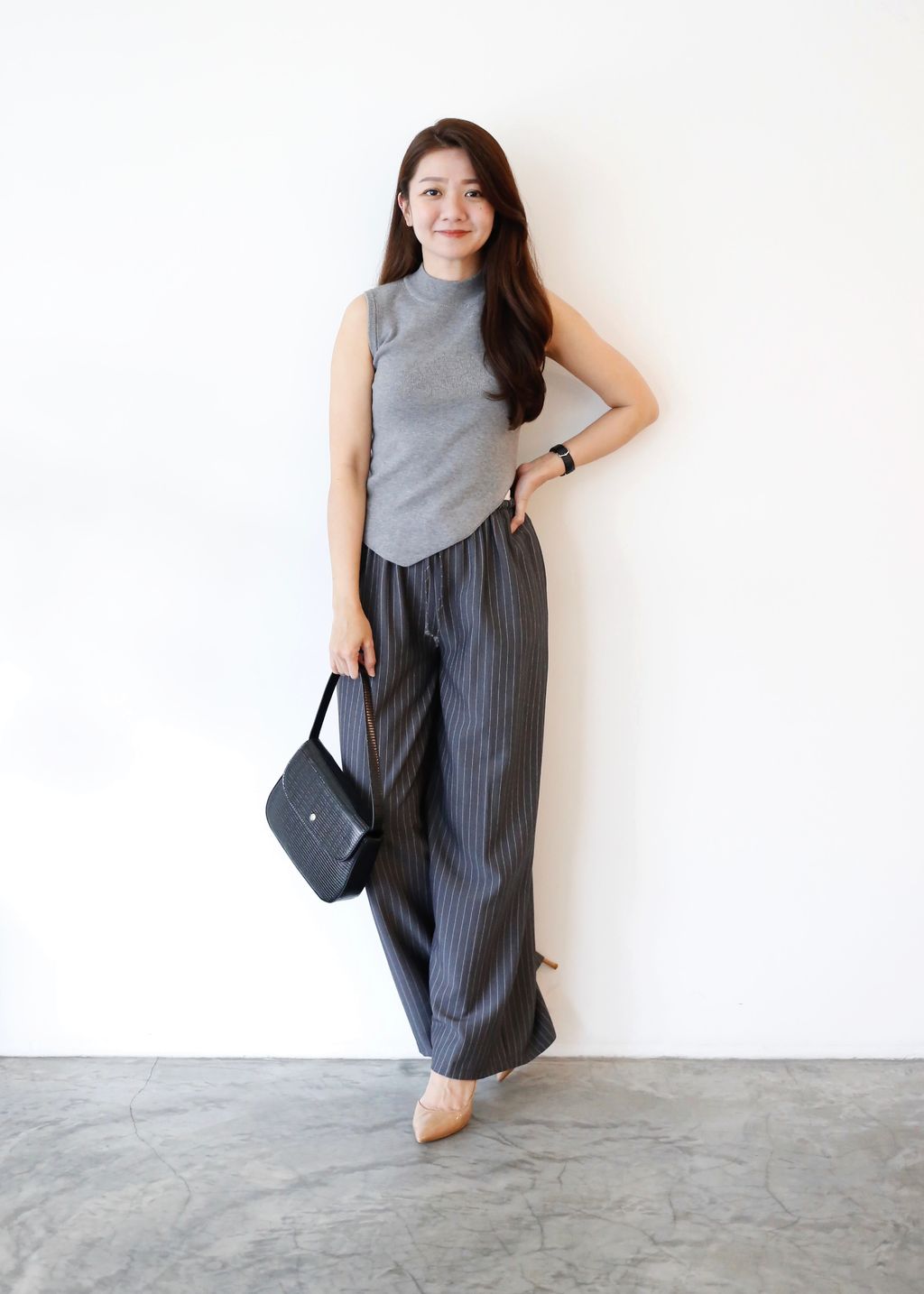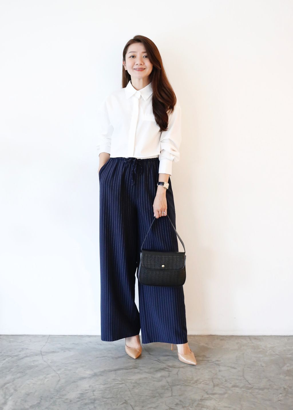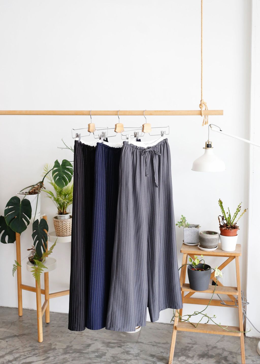 Type: 2-Tone Gather Waist Stripey Wide Leg Pants | Suit Fabric | Stretchable Waistband with Drawstring | Side Pockets