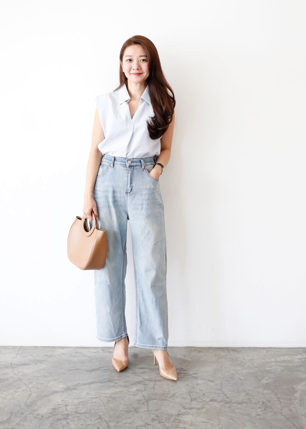 Type: Relaxed Washed Denim Straight Cut Pants | Soft Denim Fabric | Stretchable Waistband | Side Pockets | Front Zipper