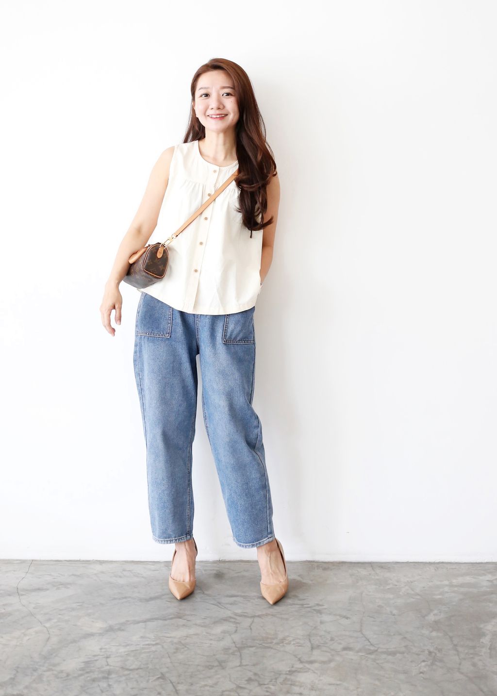 Type: Straight Cut Denim Long Pants | Soft Denim Fabric | Stretchable Waistband | Side Patched Pockets | Front Zipper