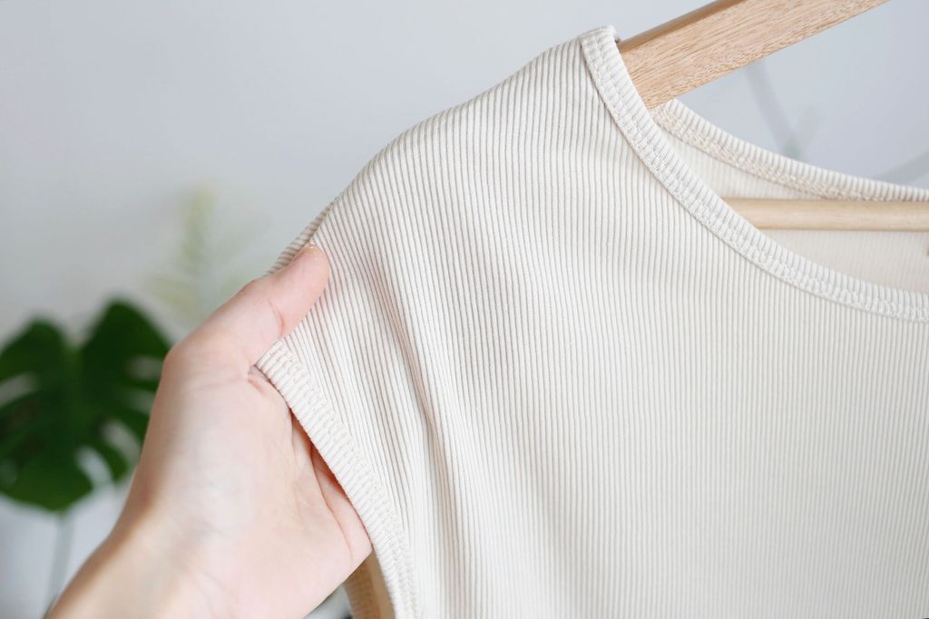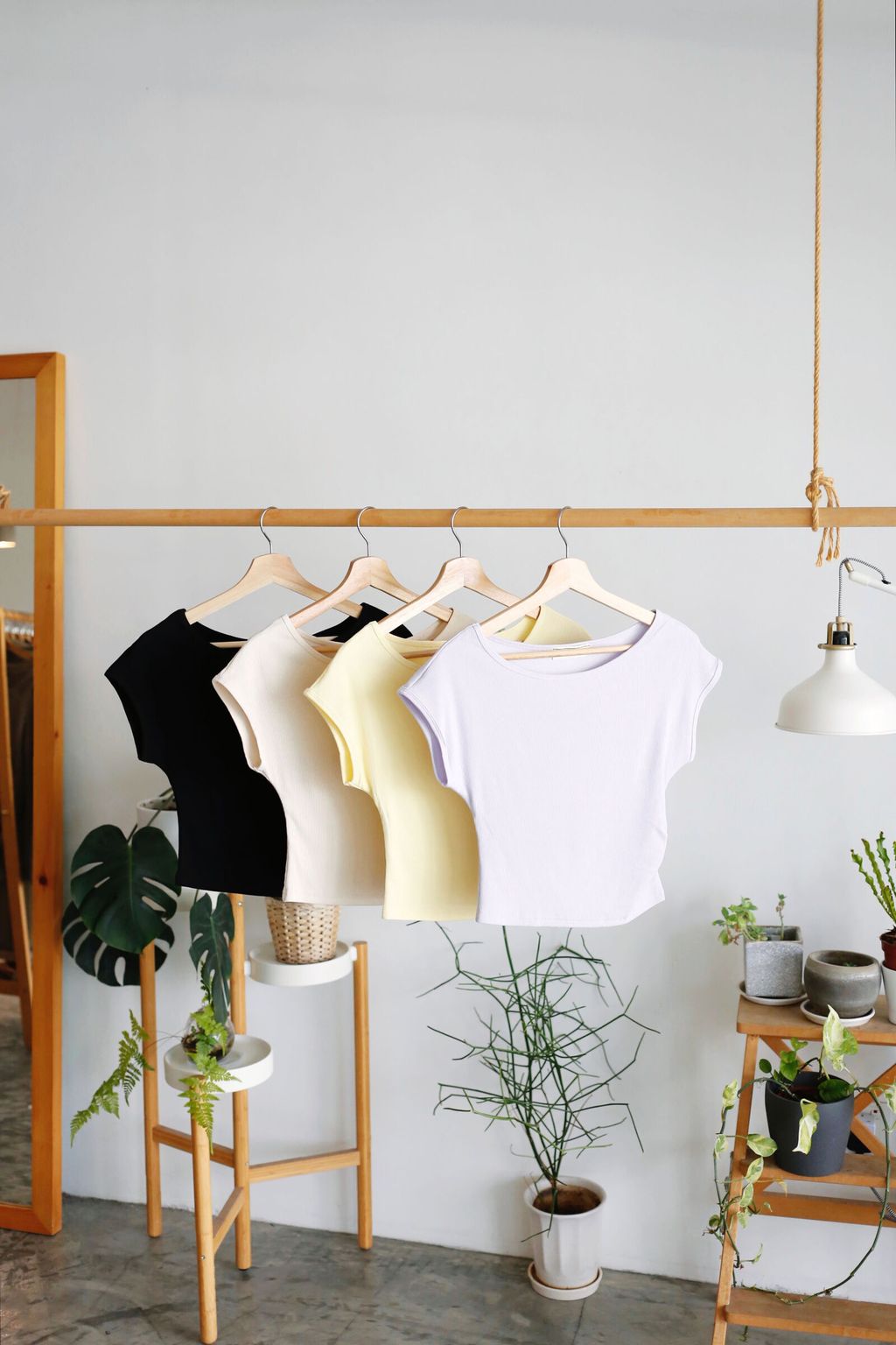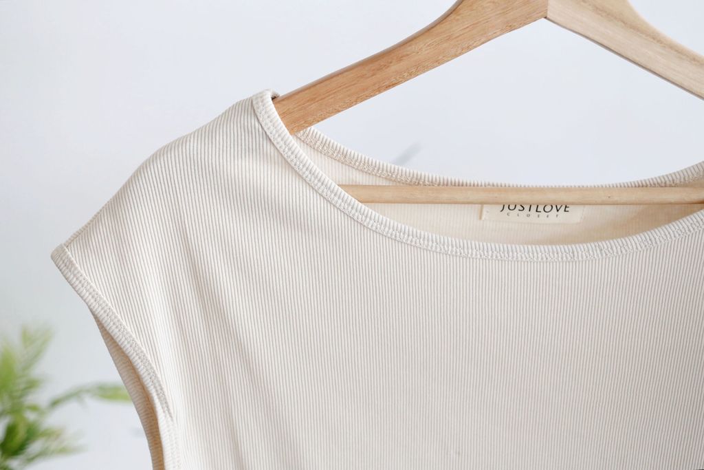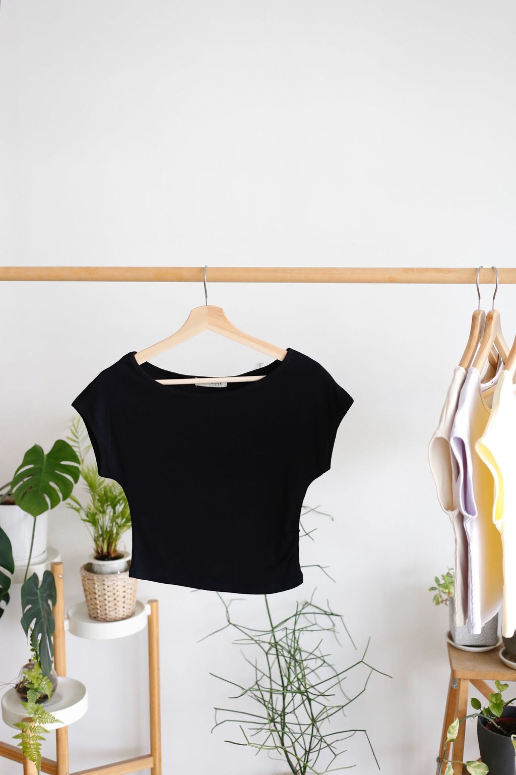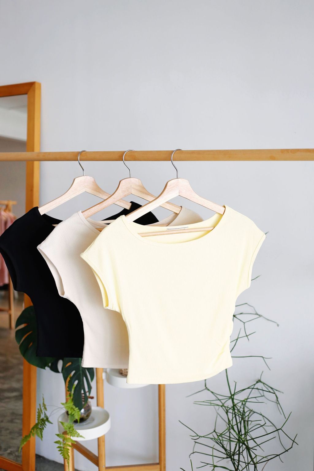 Type: Boat Neck Ribbed Tee | Stretchable Ribbed Fabric | Left Side Cinched Design