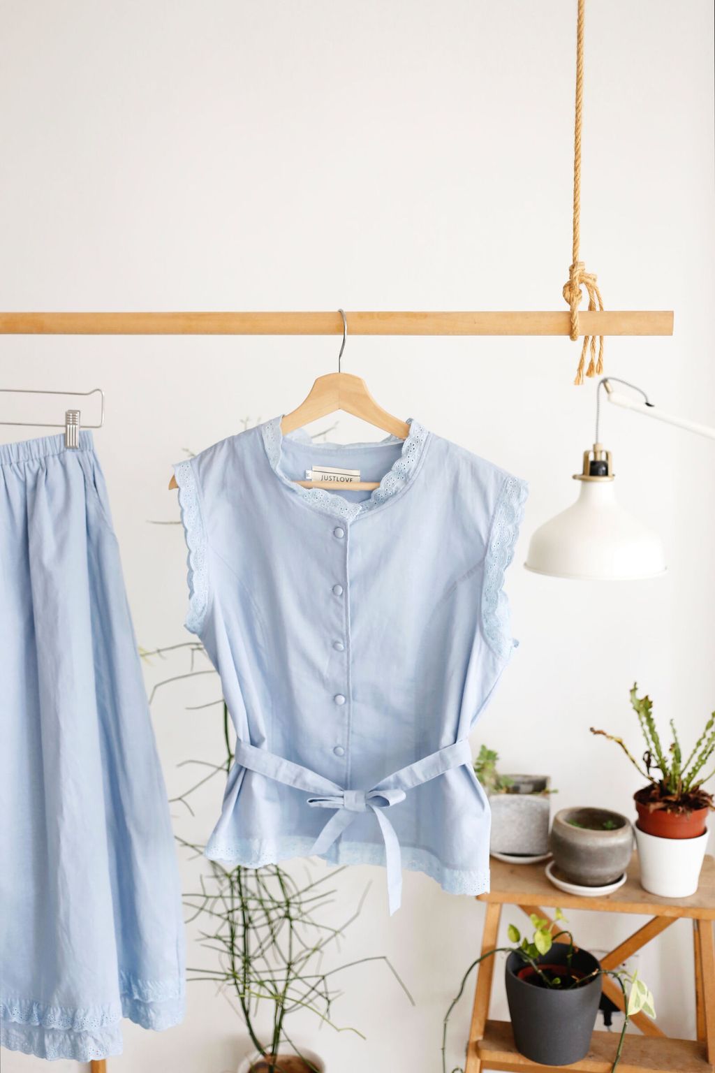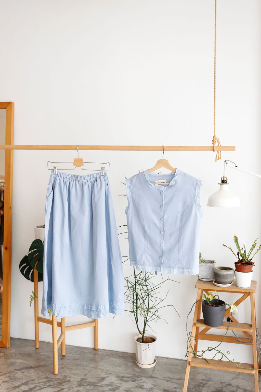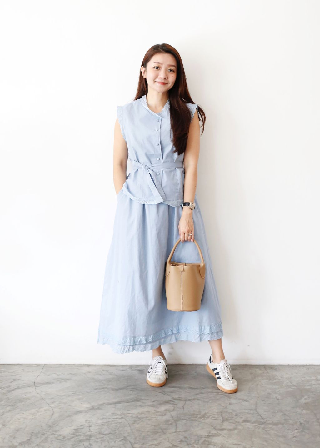 Type: 2PCS Eyelet Embroidered Blouse with Midi Skirt Set | PREMIUM SERIES | Linen Fabric | Stretchable Waistband for Skirt | Side Pockets | Skirt Comes with Lining | Kindly Take Note on Bigger Armpit Gap Hole for Blouse