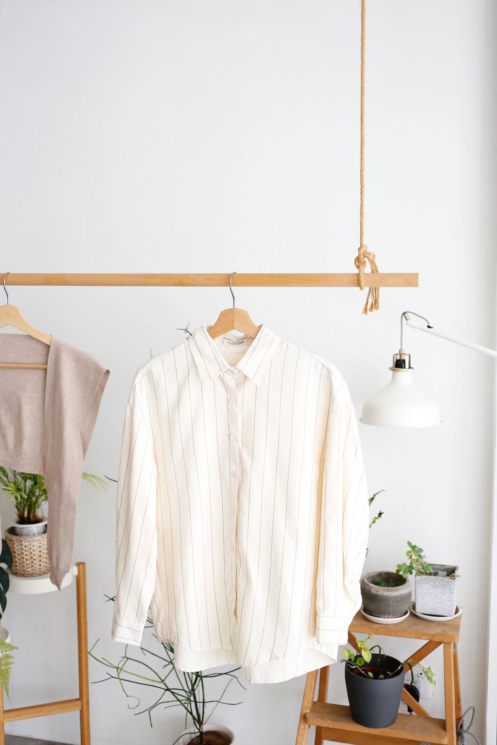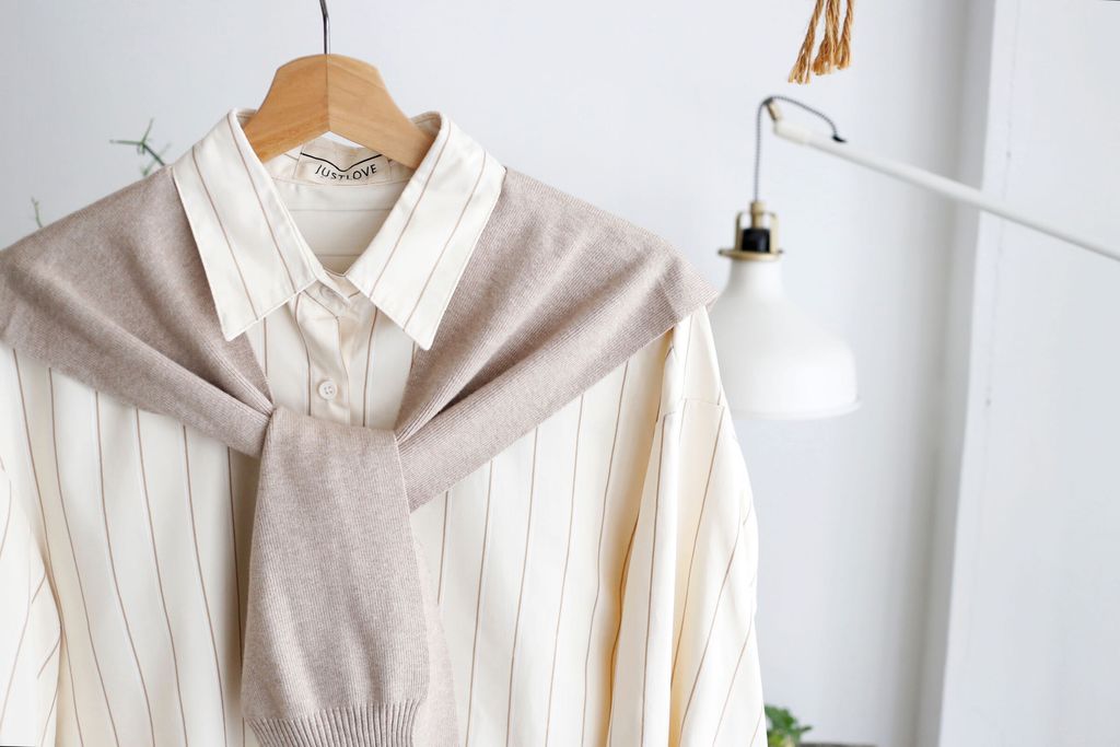 Type: 2PCS Stripey Shirt with Shawl Set | PREMIUM SERIES | Polyester Blend Fabric for Shirt | Knit Fabric for Shawl | Wrinkle Free Shirt