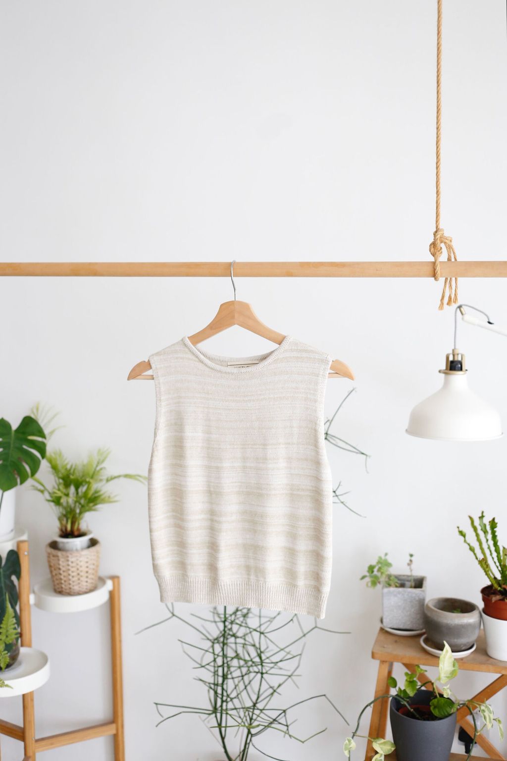 Type:Asymmetry Striped Knit Top | Stretchable Knit Fabric