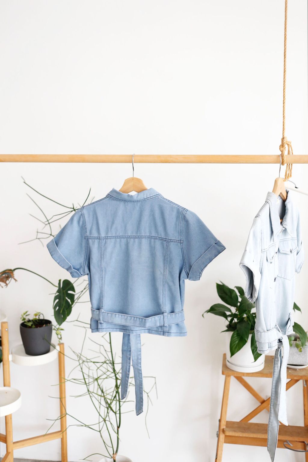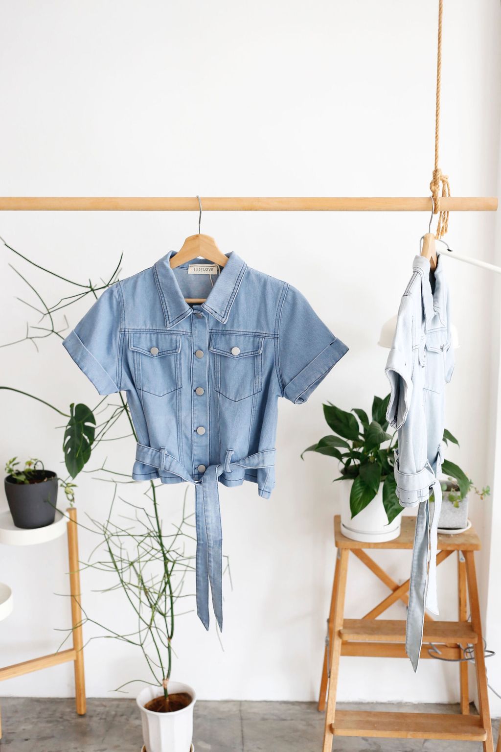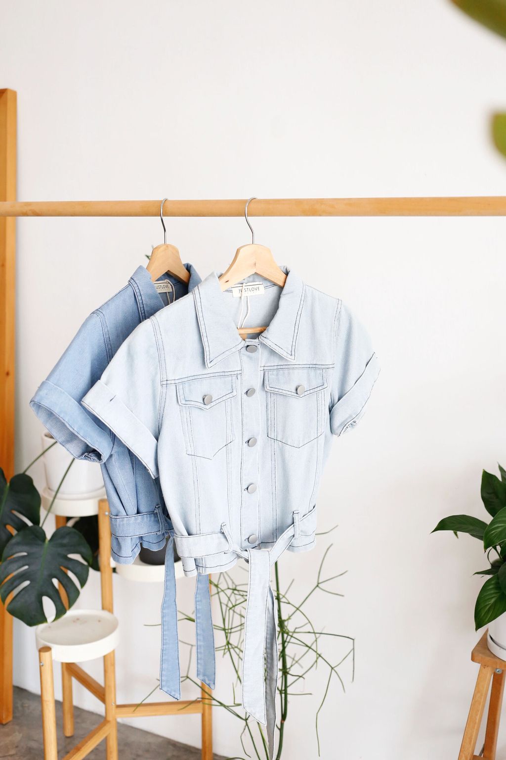 Type: Belted Cropped Denim Jacket | Not Stretchable Denim Fabric | Button Through Design | Comes with Separate Denim Belt
