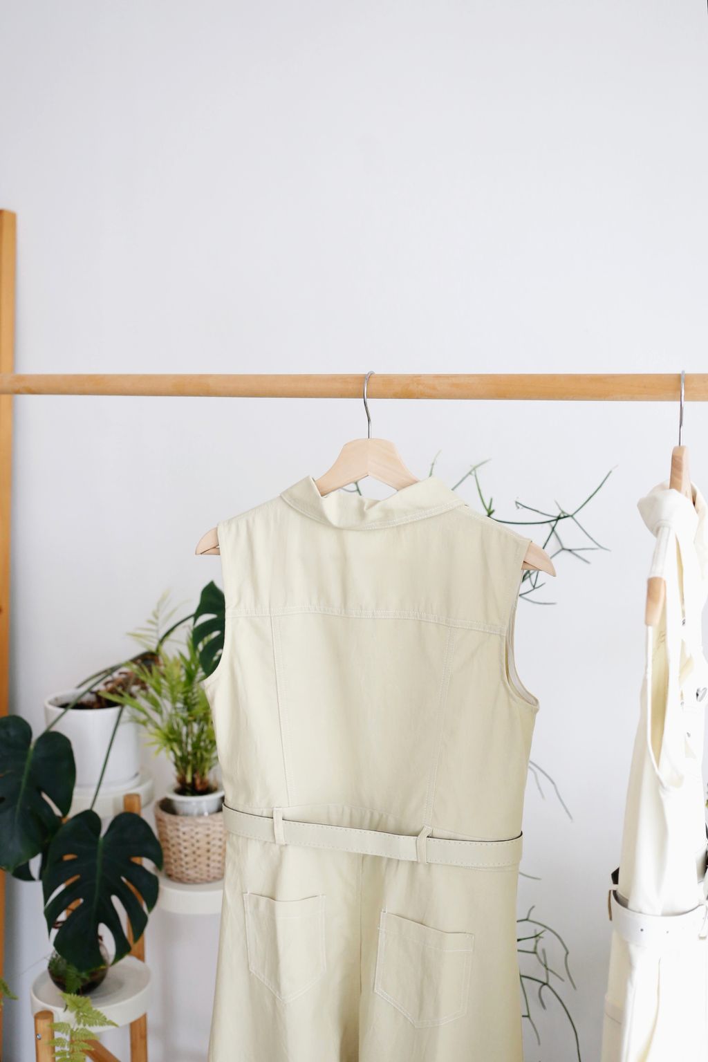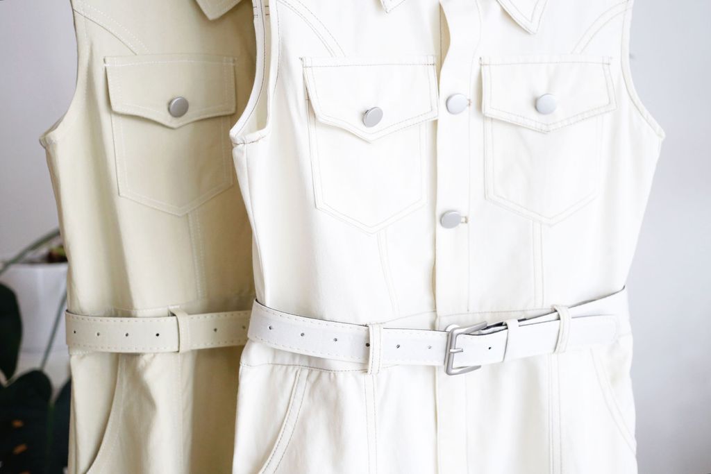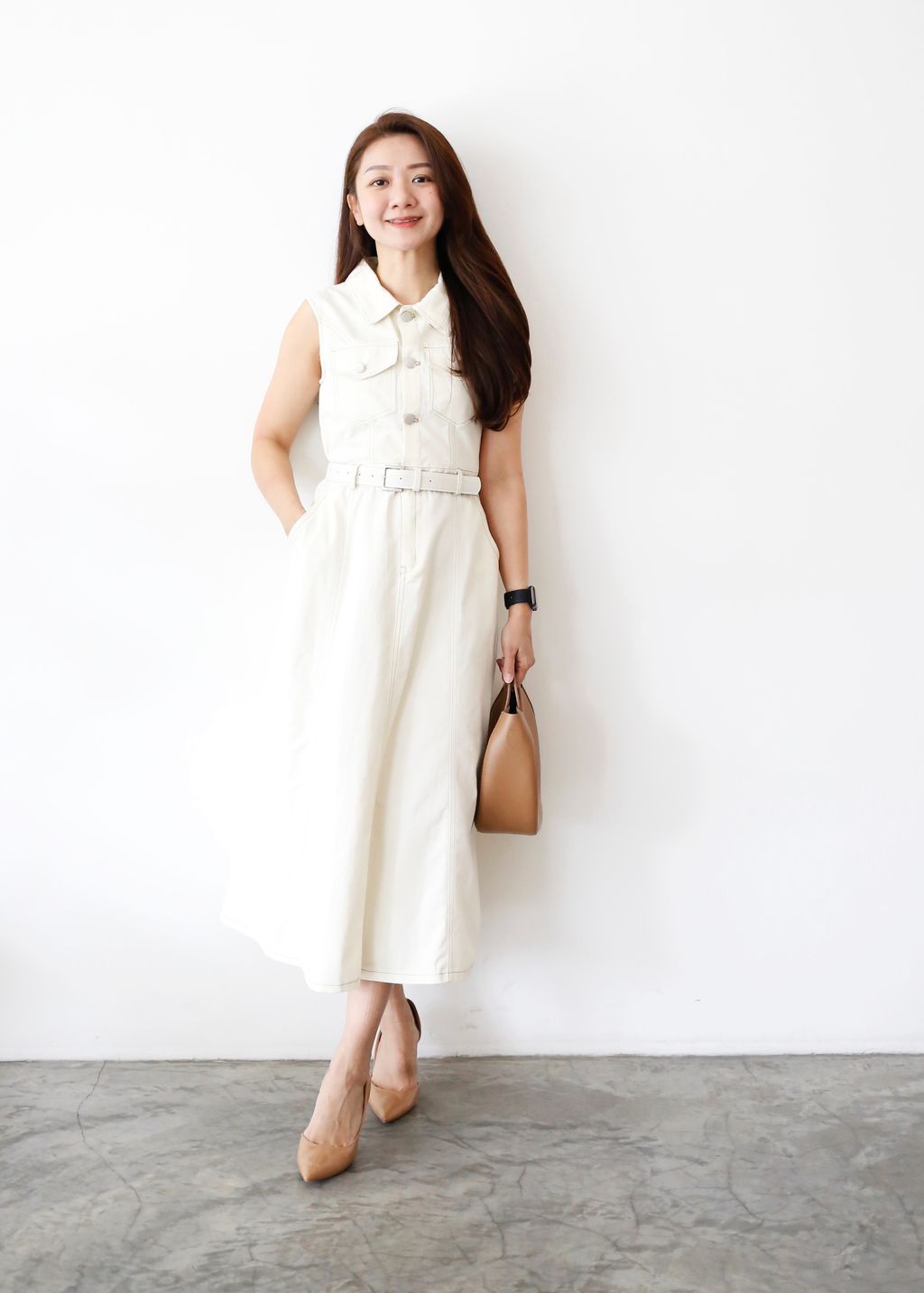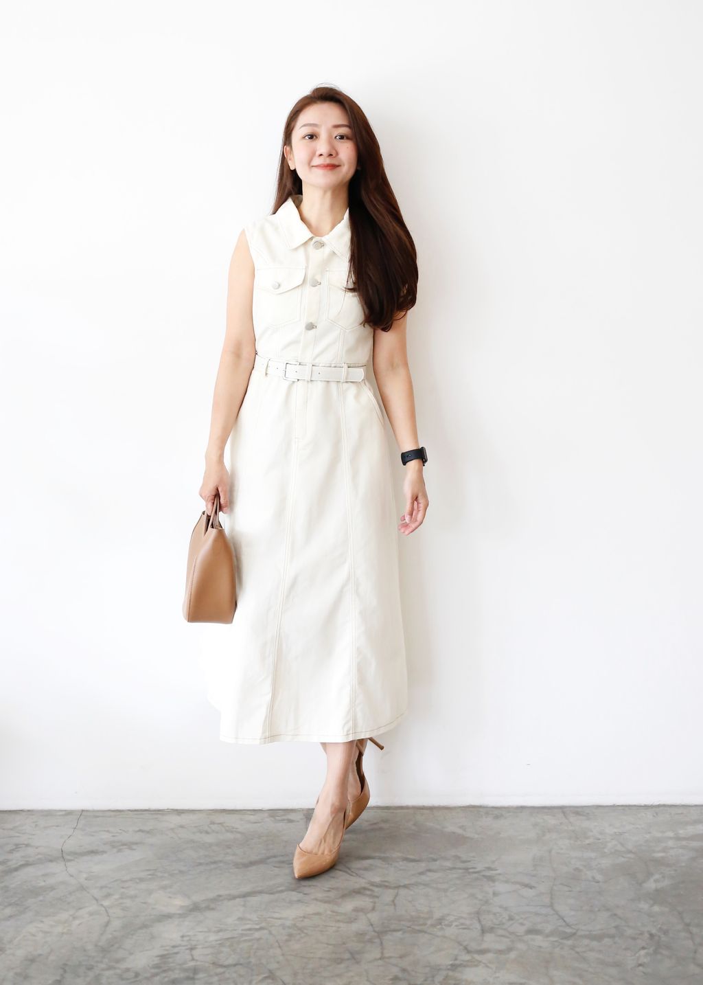 Type: Contrast Trim Sleeveless Midi Dress with Belt | Cotton Fabric | Not Stretchable | Button Through Design with Front Zipper From Waist | Side Pockets | Comes with Separate Belt