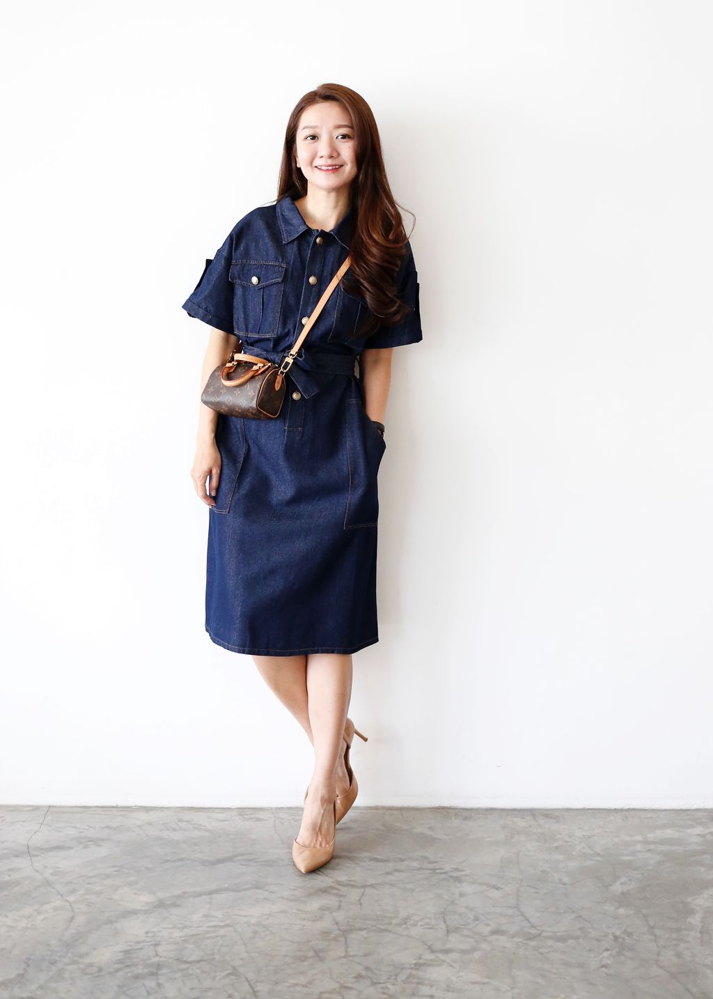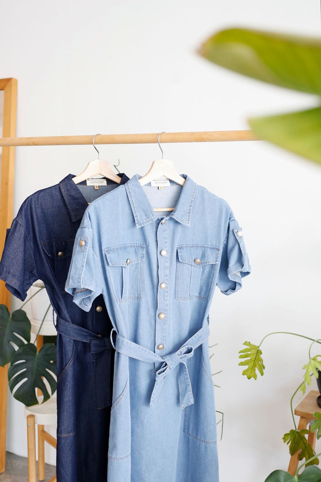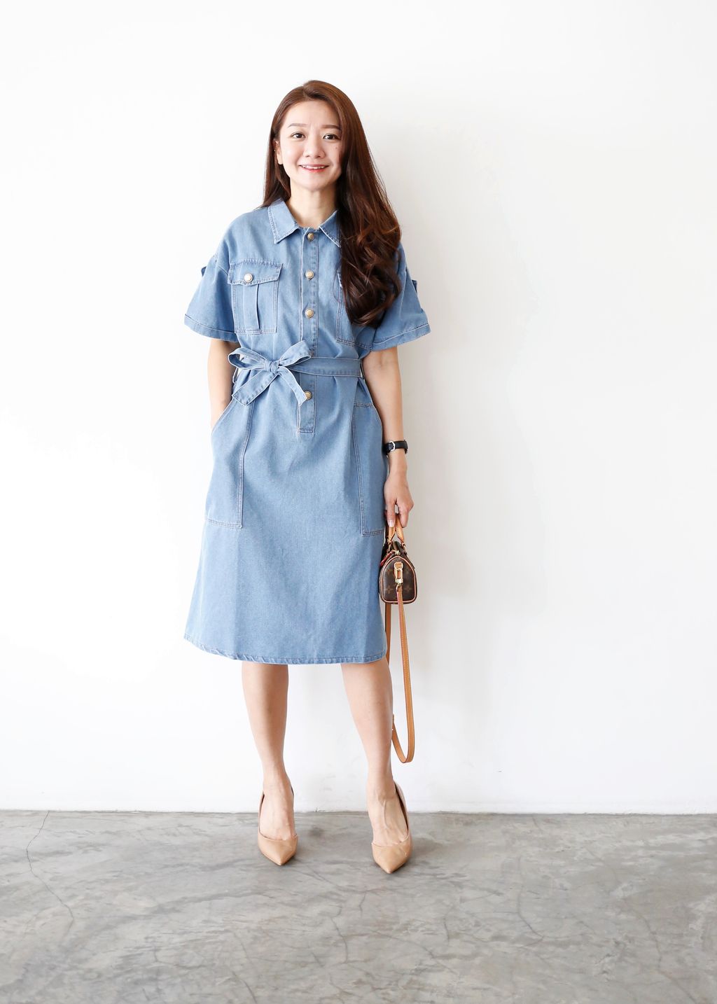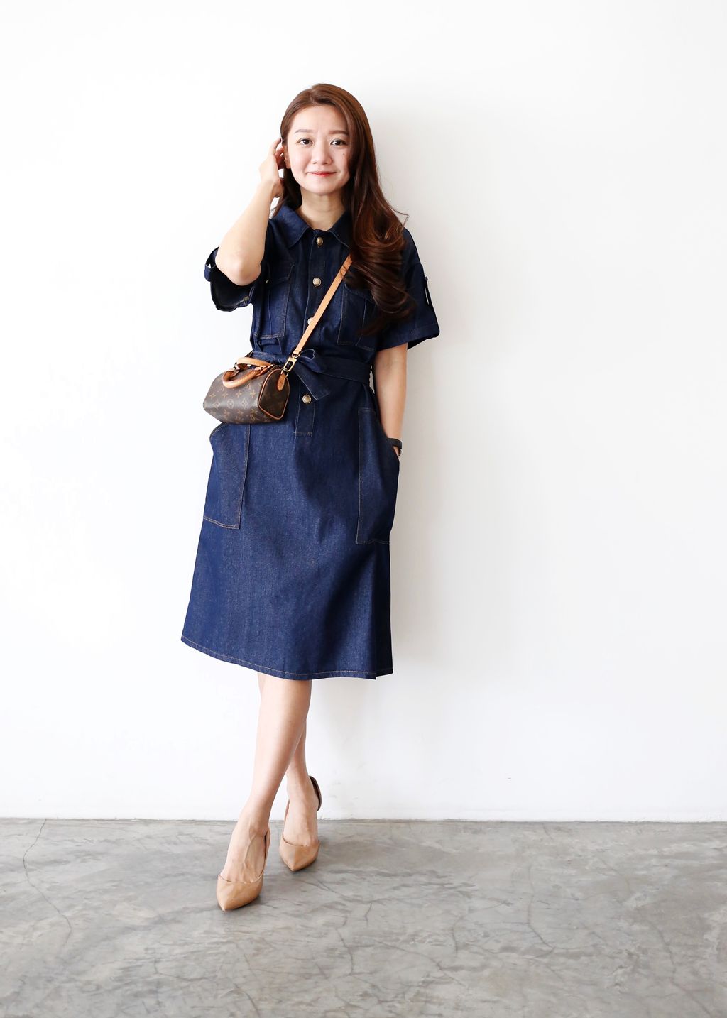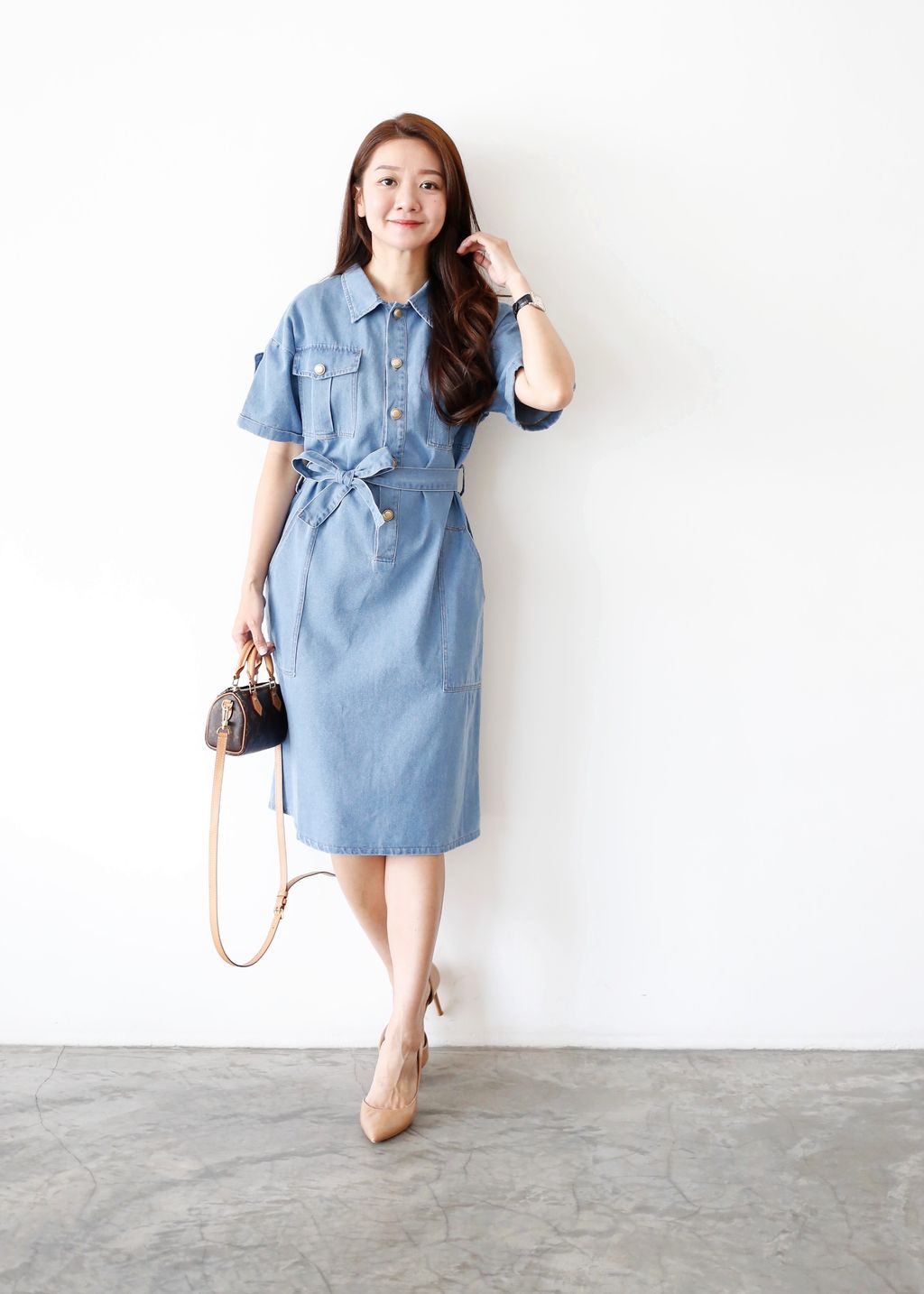 Type: Belted Waist Denim Shirts Dress | Not Stretchable Denim Fabric | Comes with Separately Belt | Side Pockets