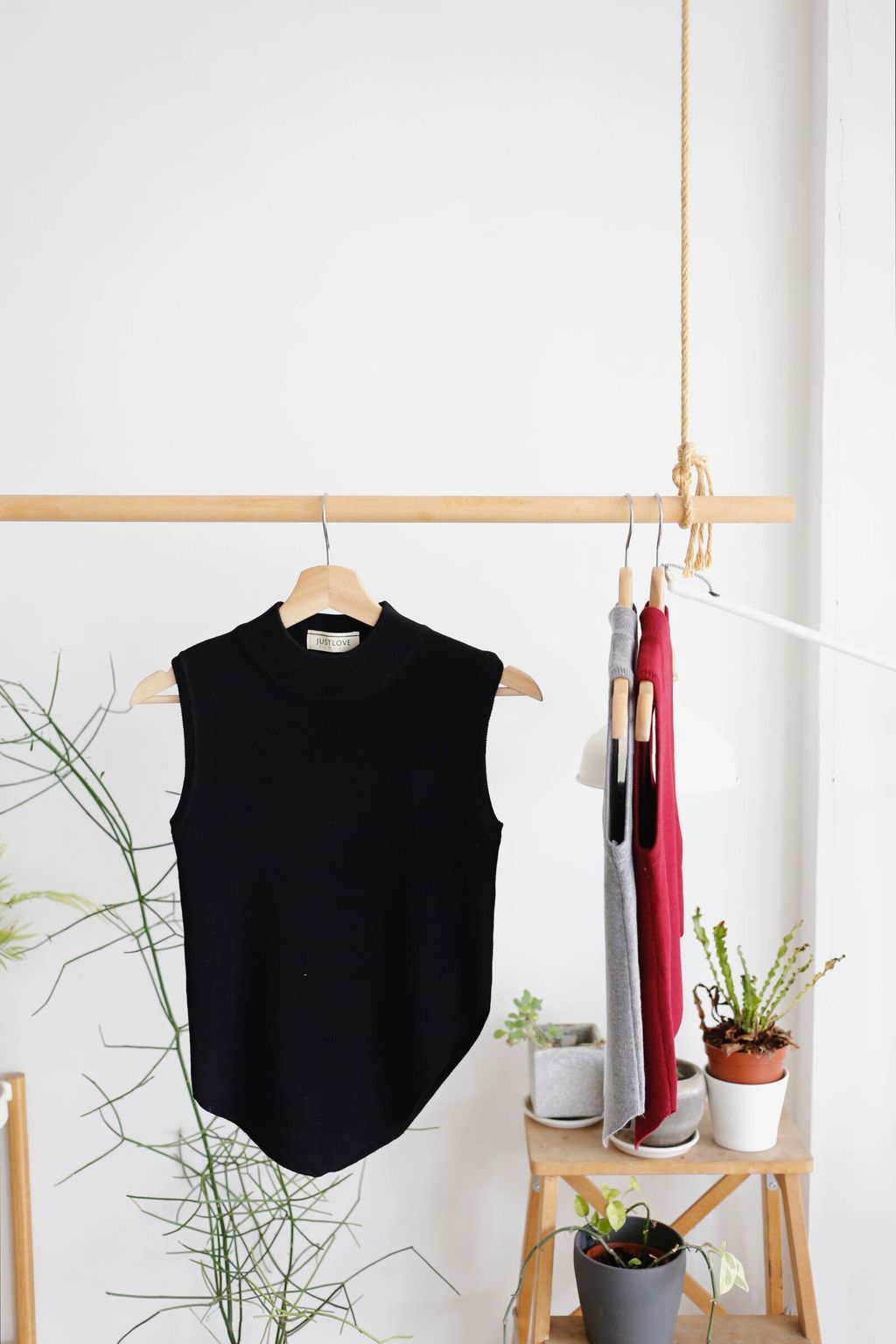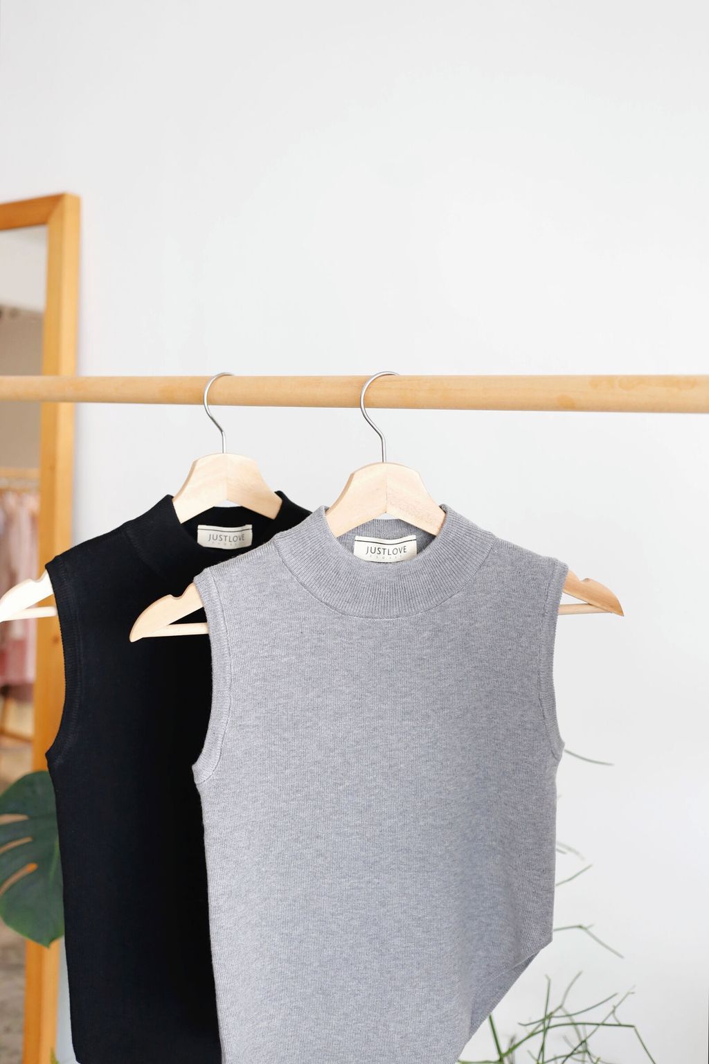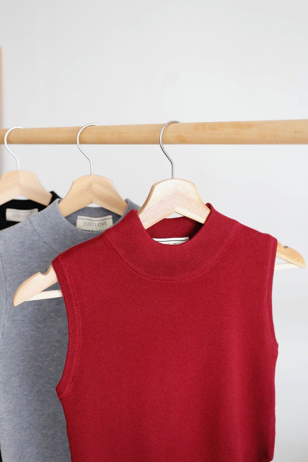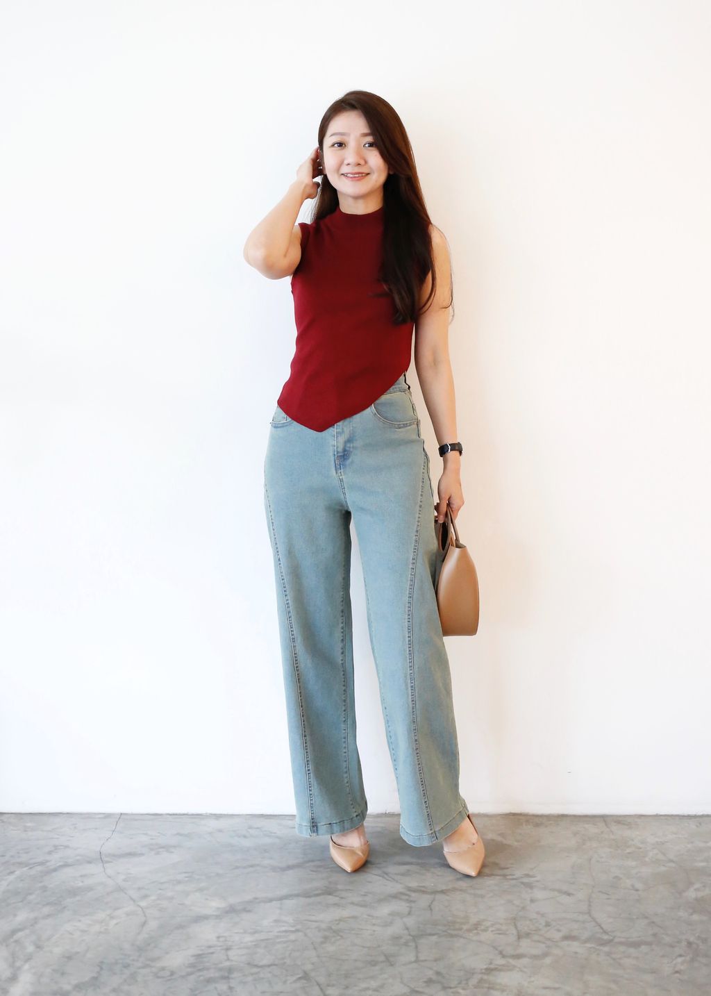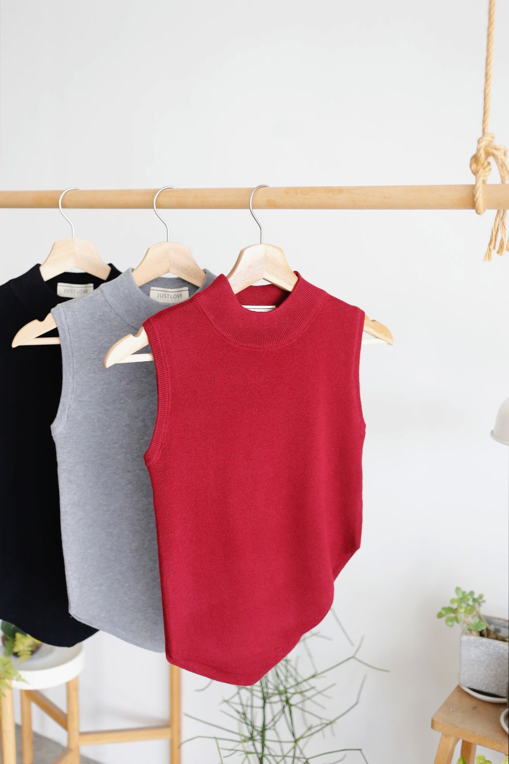 Type: Mock Neck Asymmetric Hem Knit Top | Stretchable Ribbed Knit Fabric
