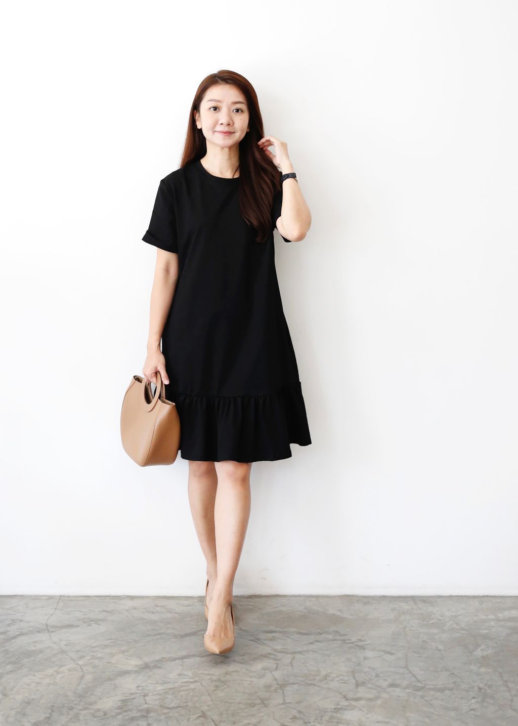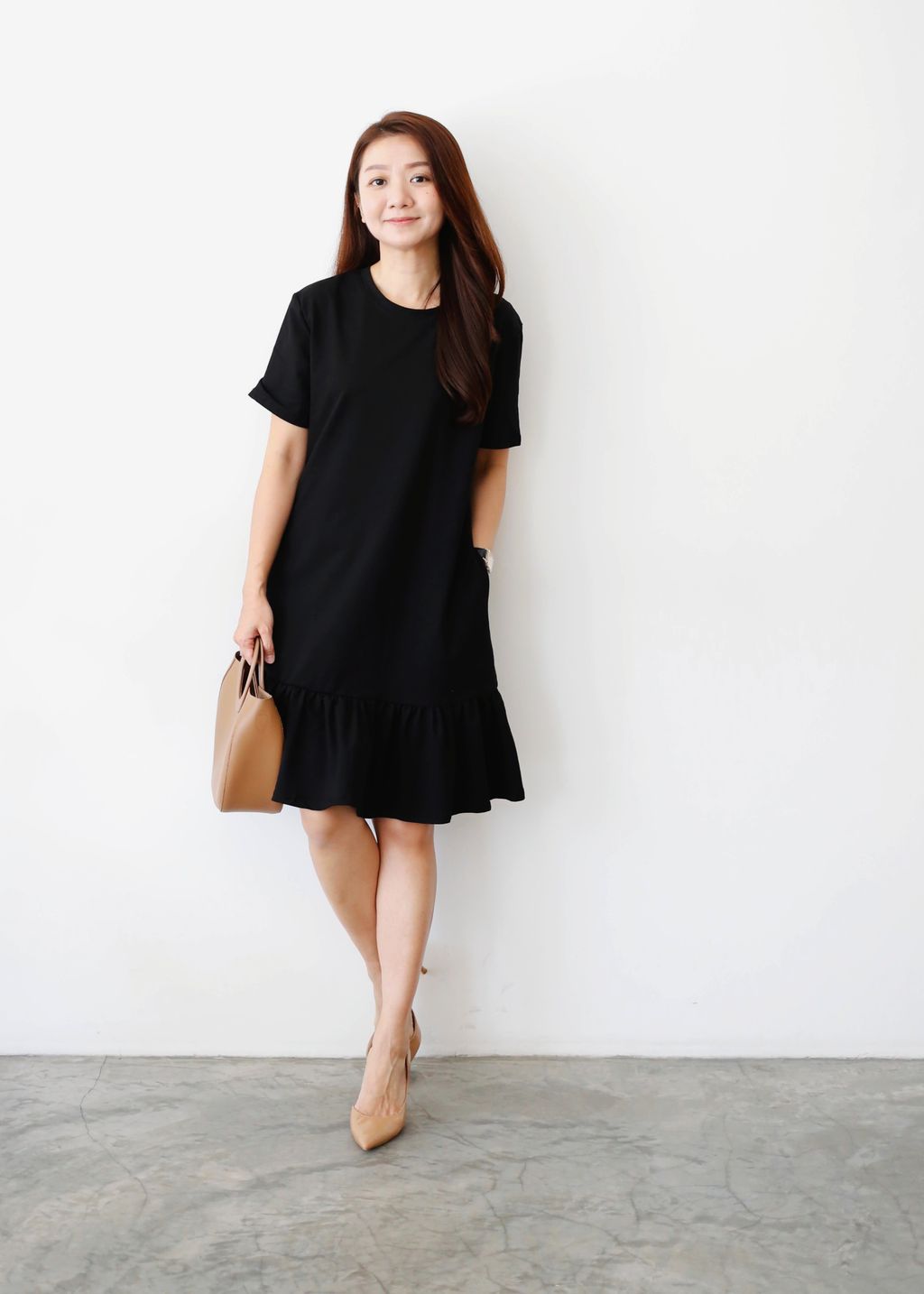 Type: Ruffles Hem Midi Dress | Stretchable Cotton Fabric | Side Pockets