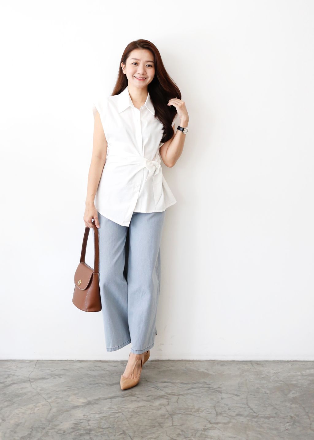 Type: Side Tie Cap Sleeves Padded Shirt | Cotton Fabric | Button Through | Comes with Shoulder Pad