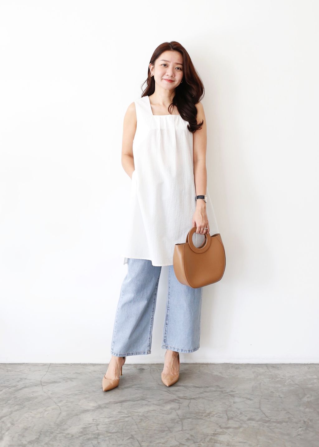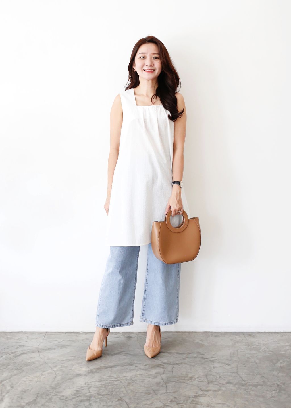 Type: Square Neck Side Button Long Top | Linen Fabric | Side Buttons on Right