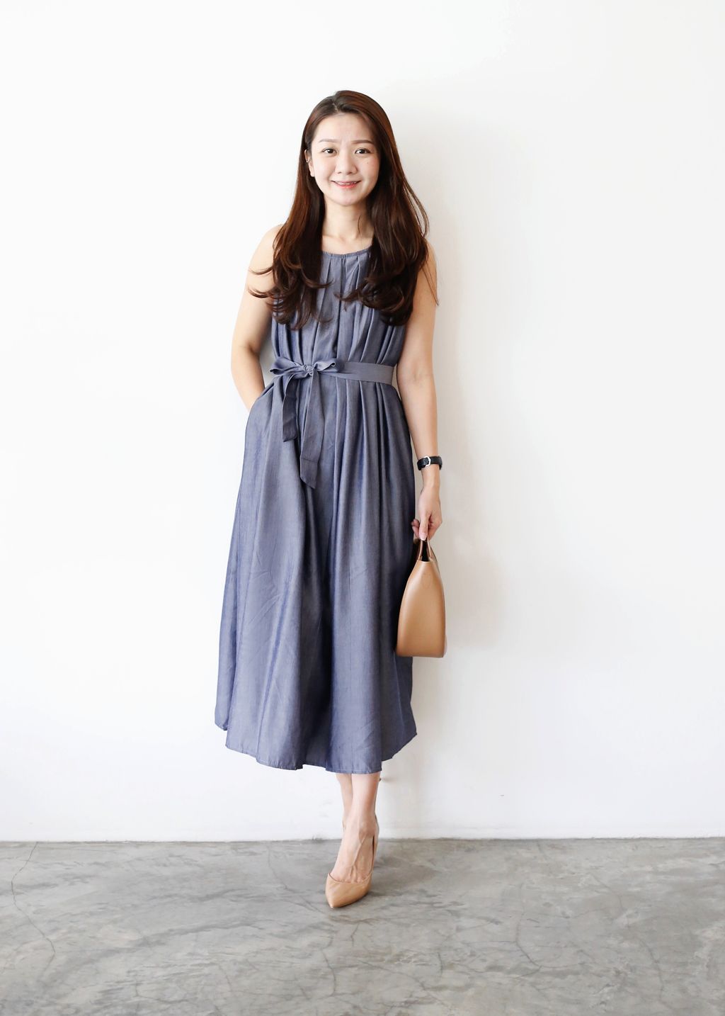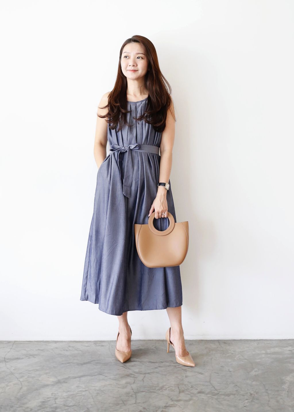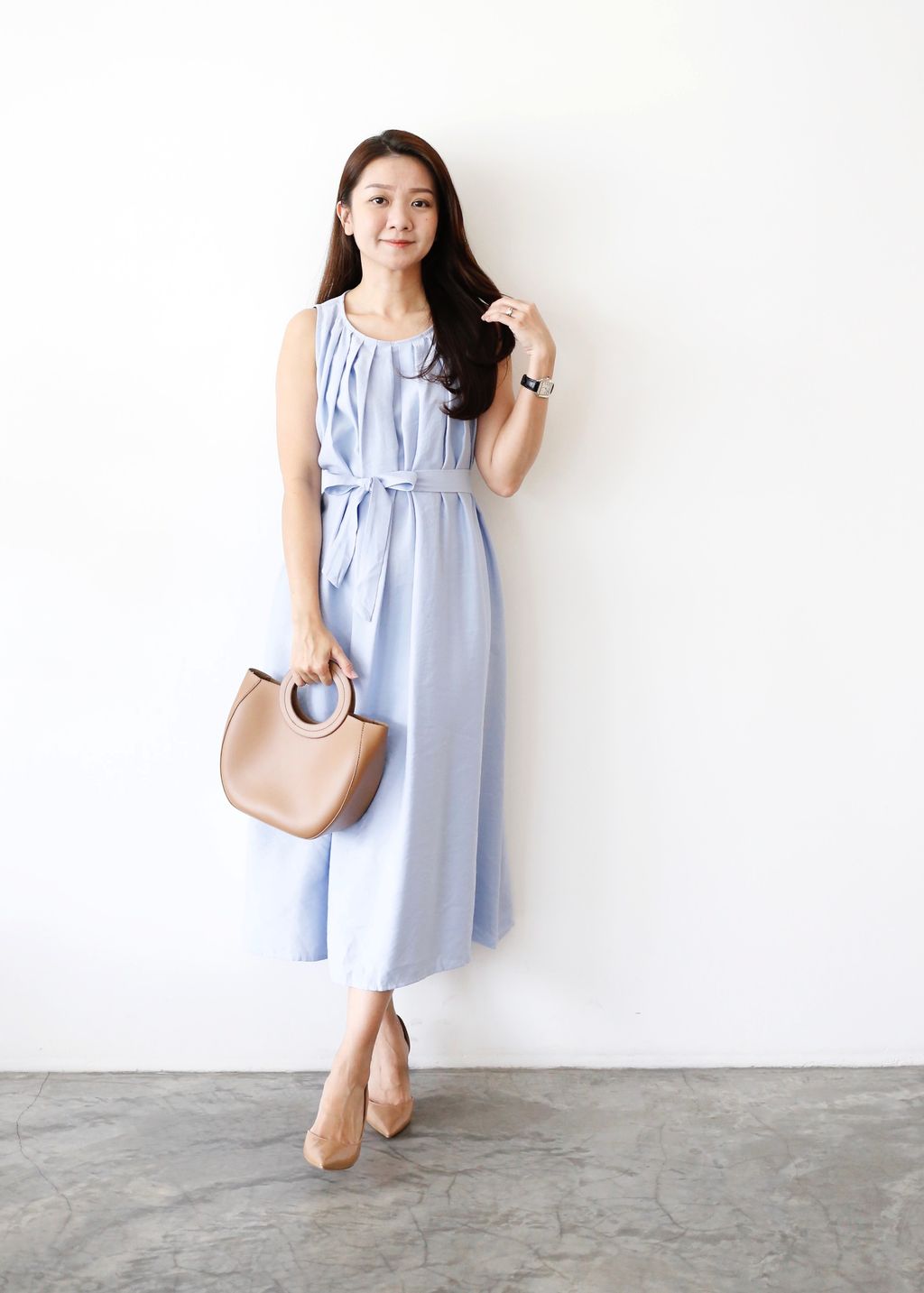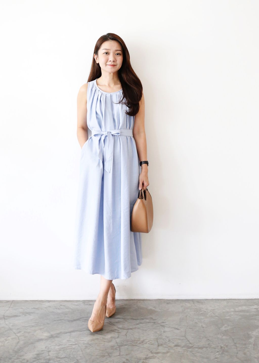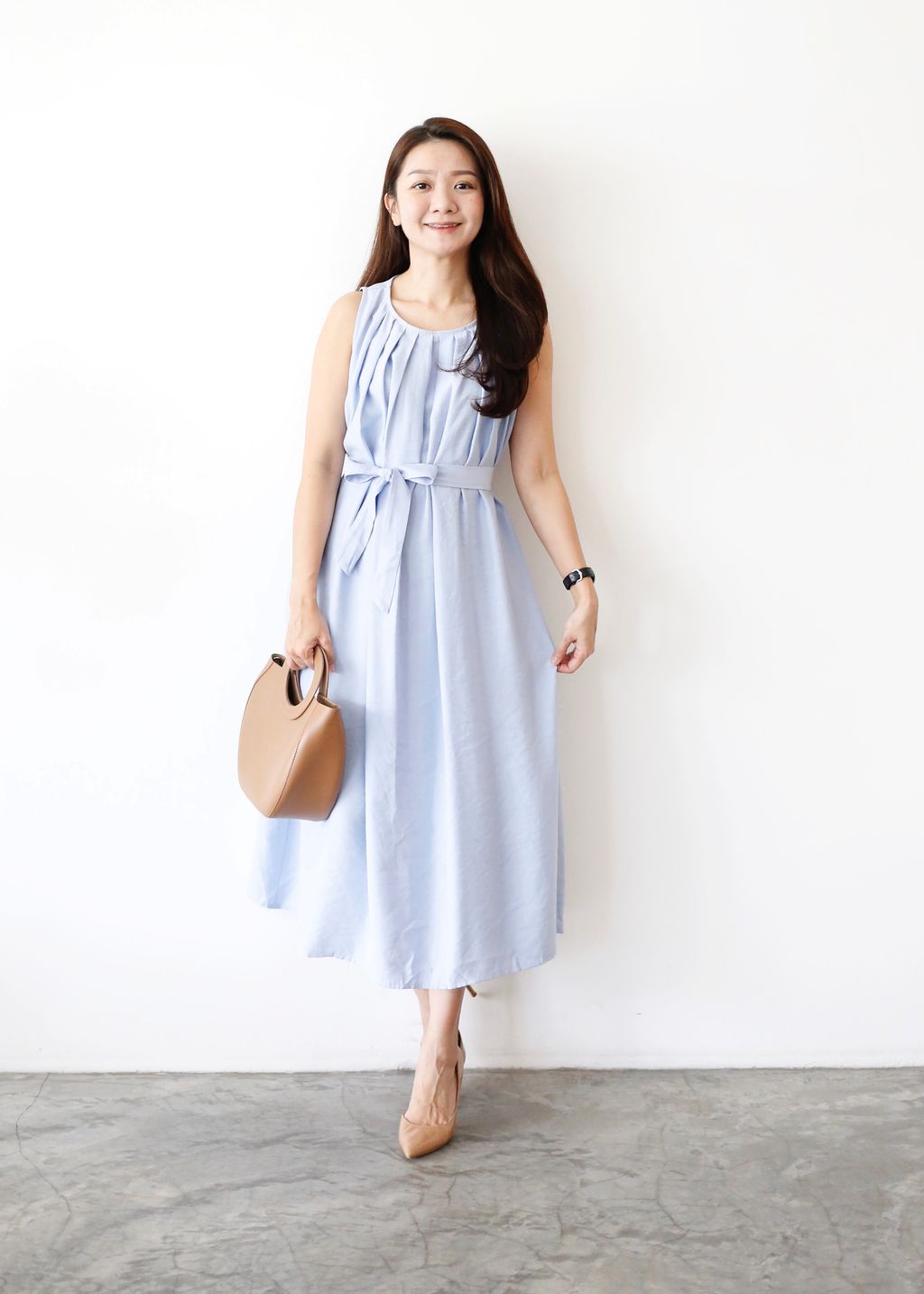Type: Volume Pleated Neck Midi Dress | PREMIUM SERIES | Cotton Fabric | Comes with Separate Belt | Side Pockets | No Lining, But Non Sheer