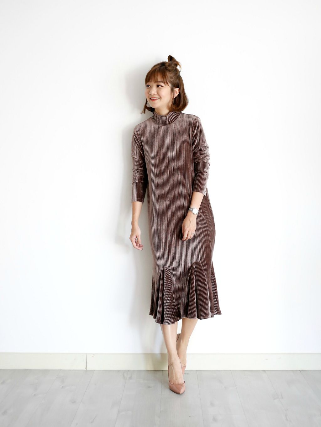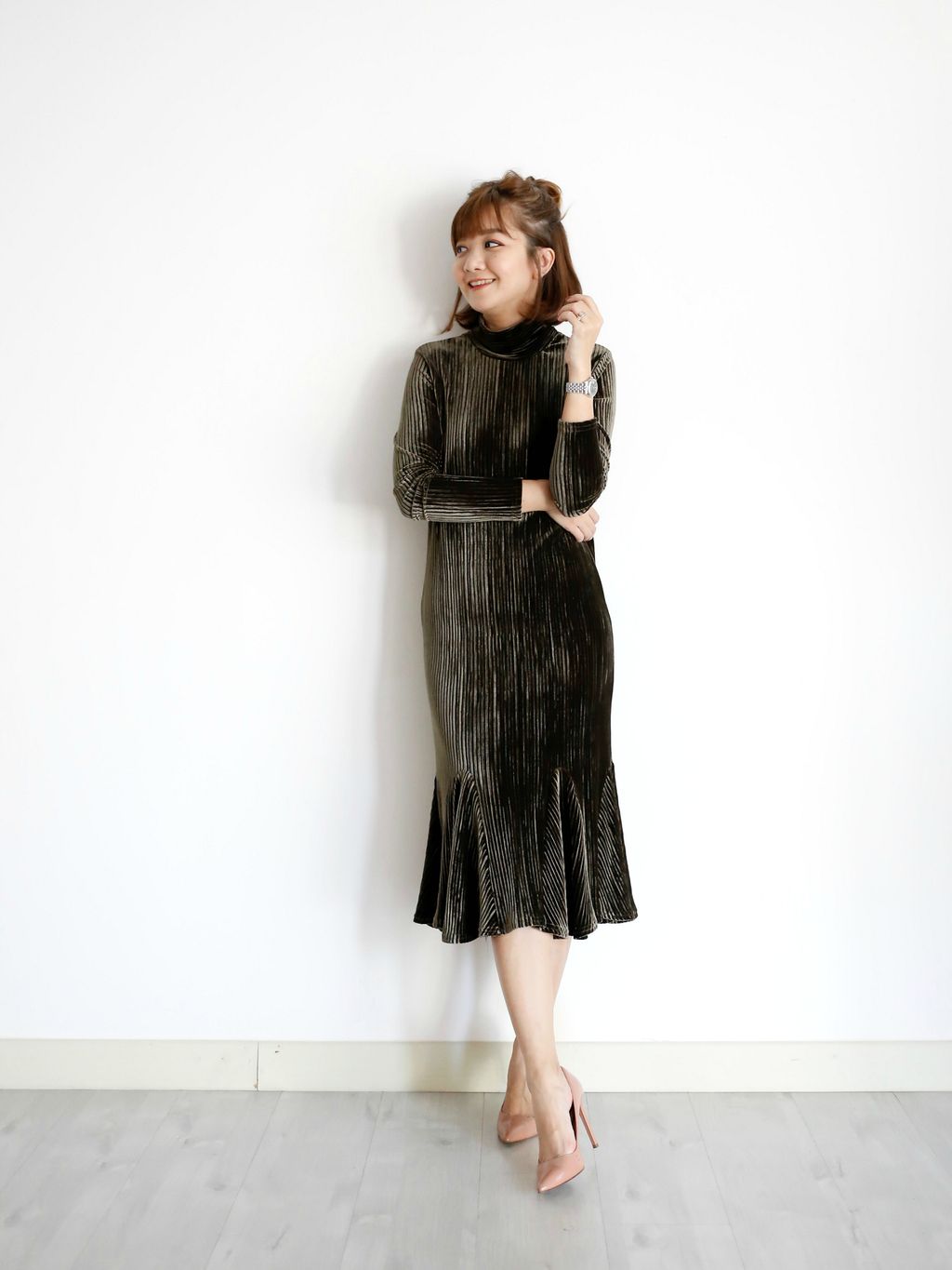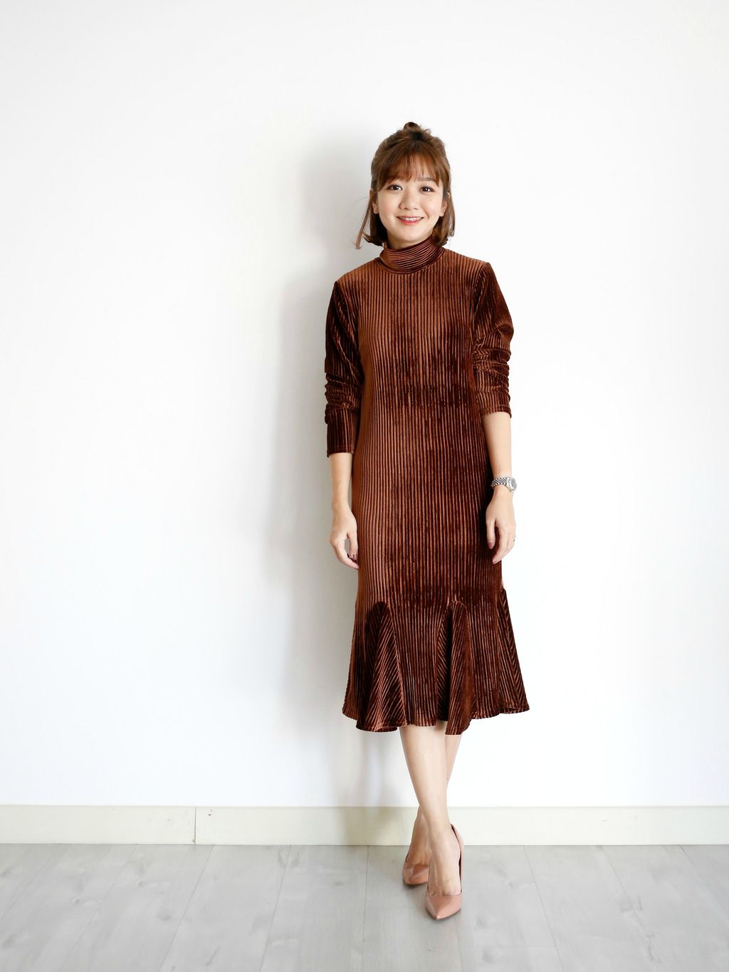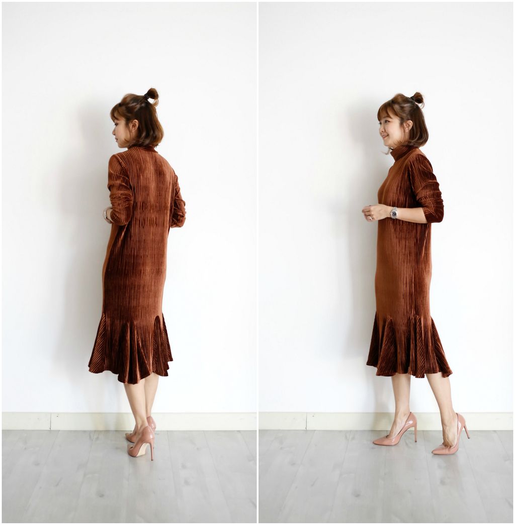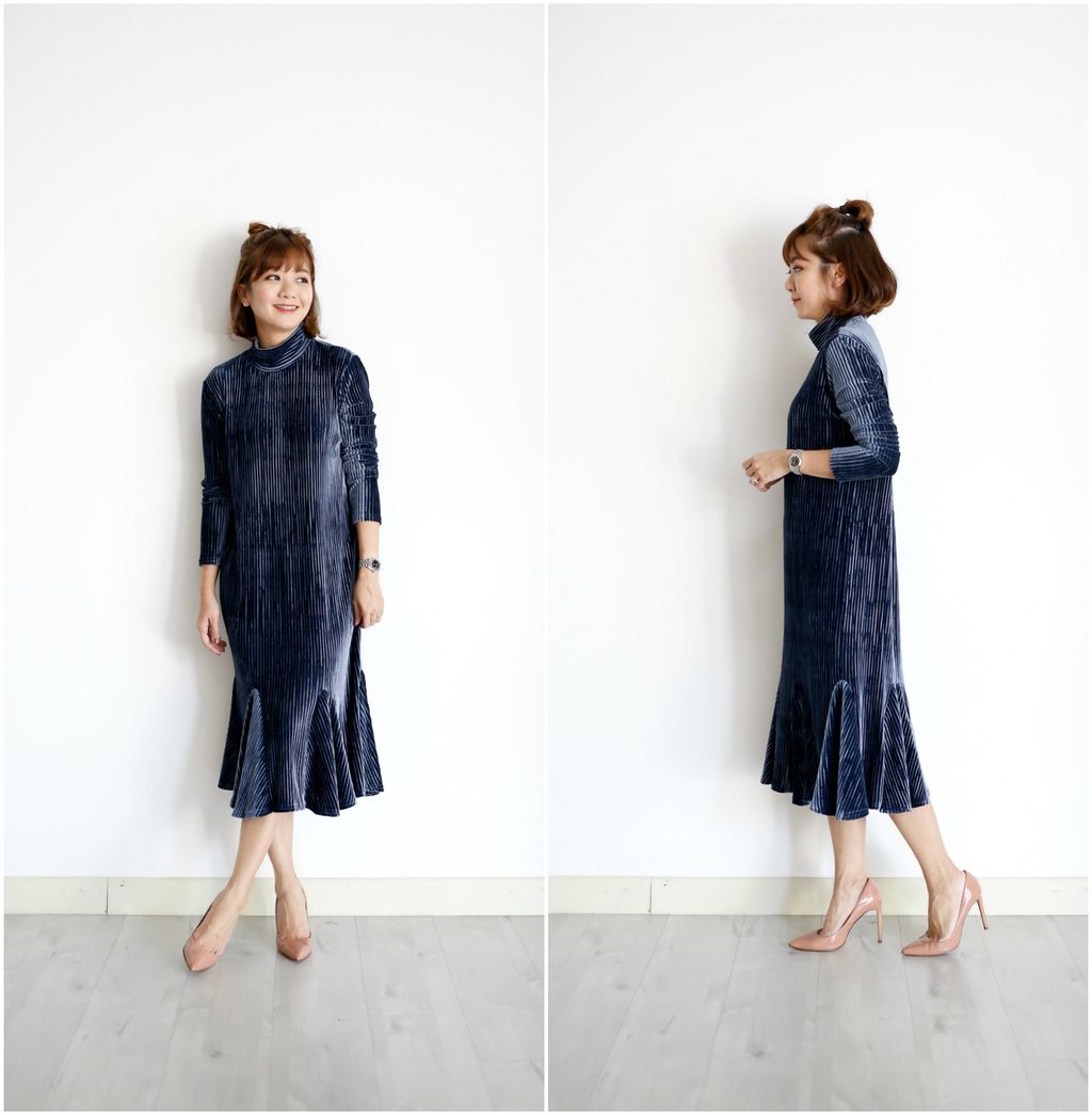 Type: Ruffle Bottom Turtle Neck Velvet Dress | Stretchable Velvet Material | Elegant Look