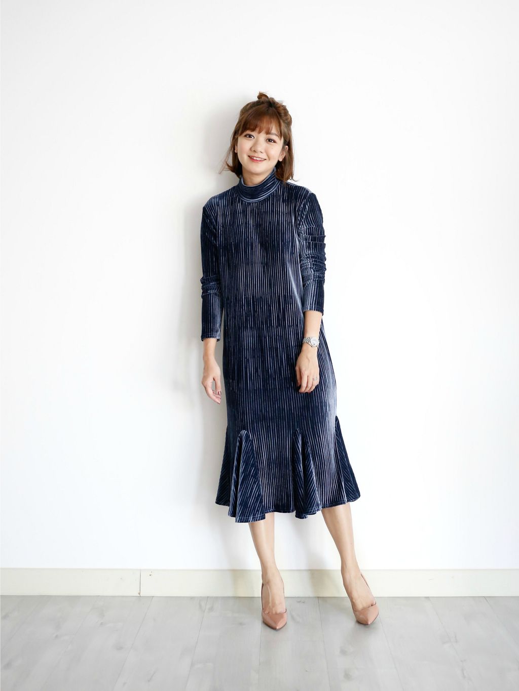 Ruffle Bottom Turtle Neck Velvet Dress