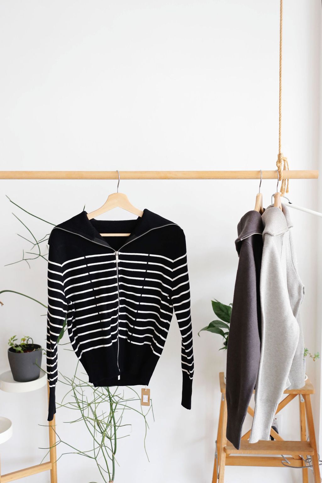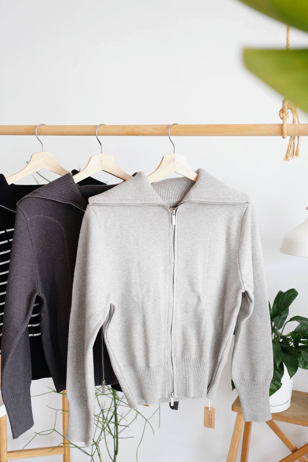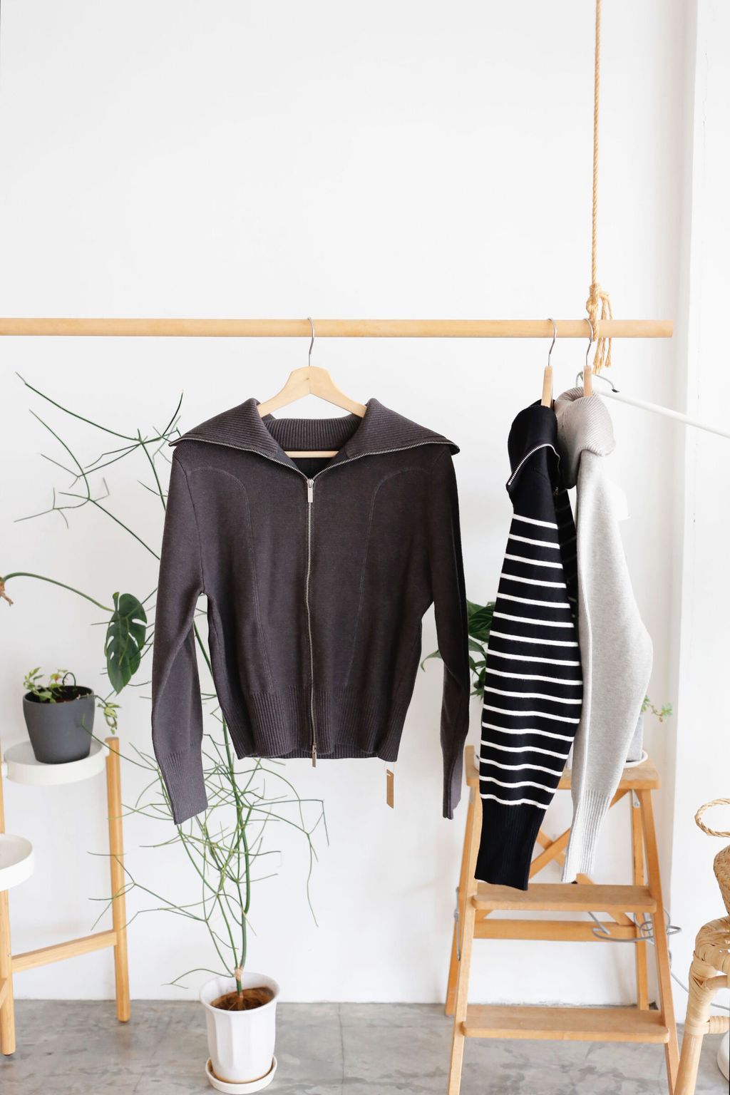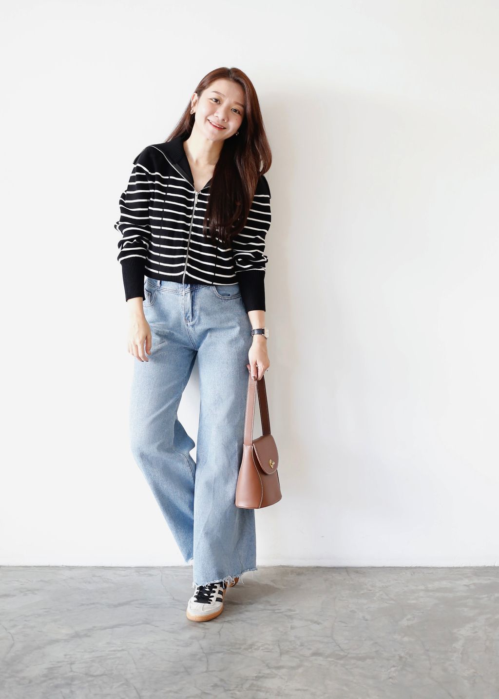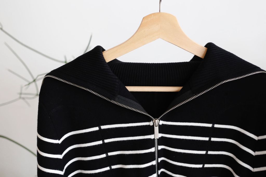 Type: Sailor Collar Knit Zipper Cardigan | PREMIUM SERIES | Stretchable Knit Fabric | 2-Way Zipper