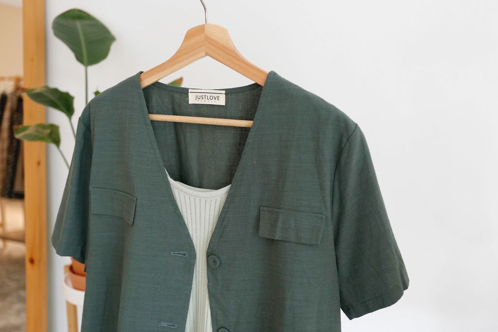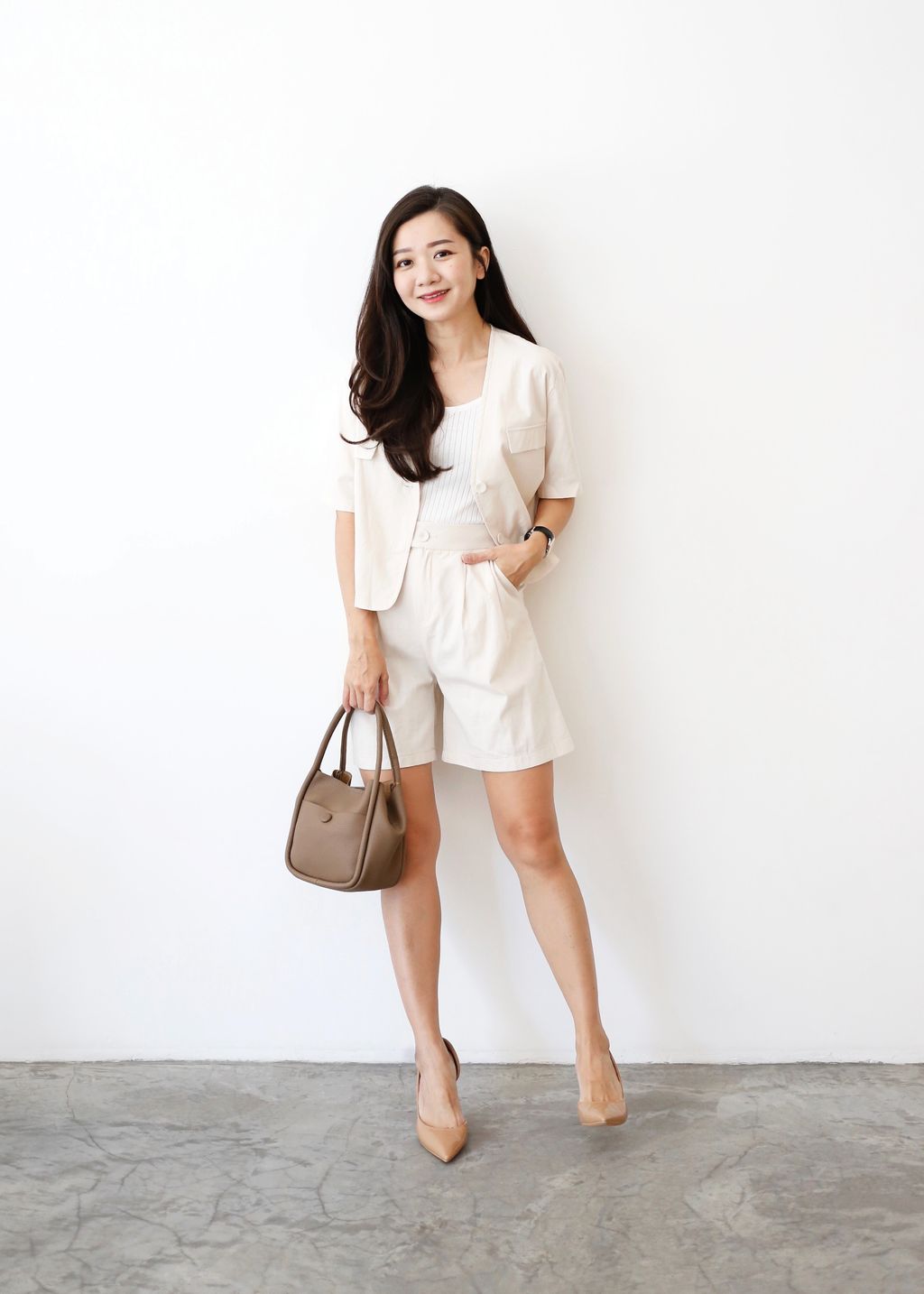 Type: 2PCS Cami Top and Blazer Set | Cotton Linen Fabric | Stretchable Cami Top | Knit Fabric for Cami Top | Fake Pocket