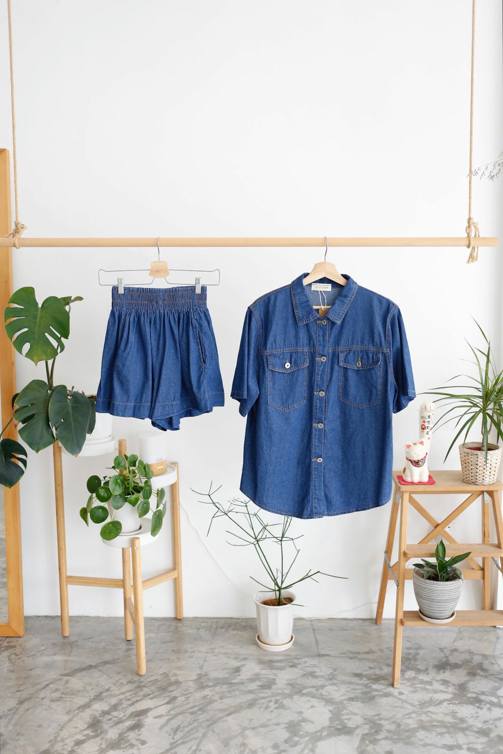 Type: 2PCS Denim Shirt with Wide Leg Shorts Set | Soft Denim Fabric | Front Pockets and Stretchable Waistband for Pants