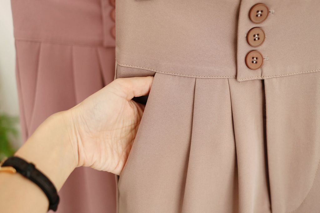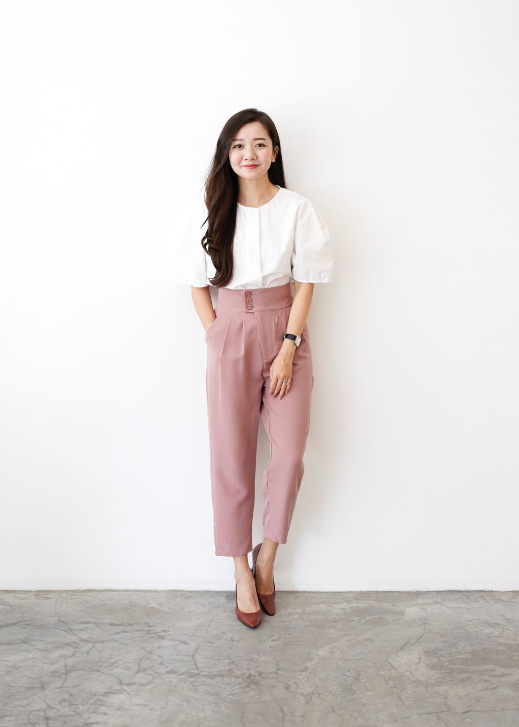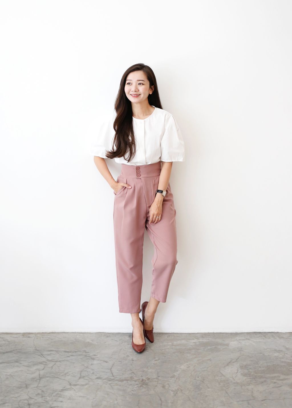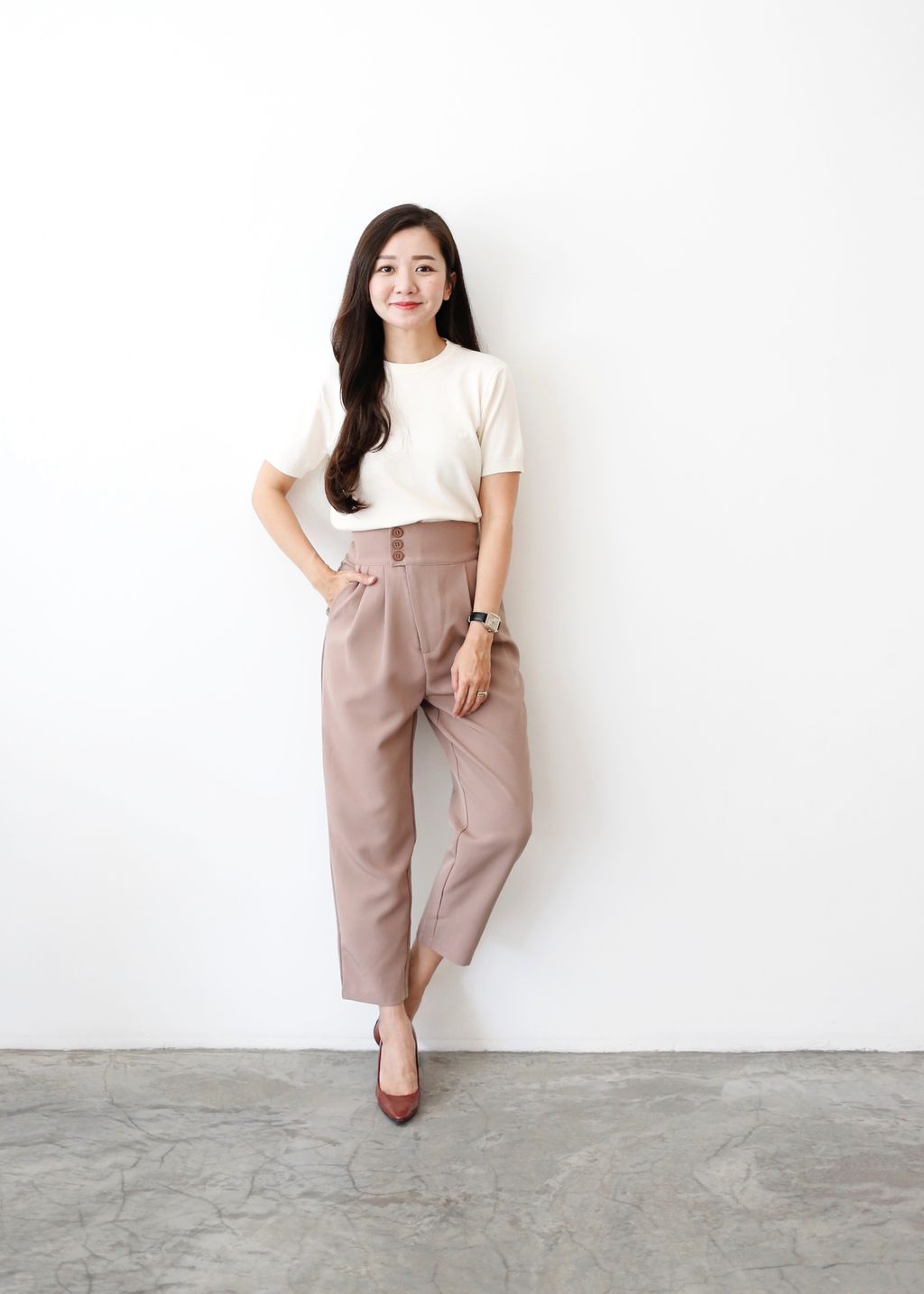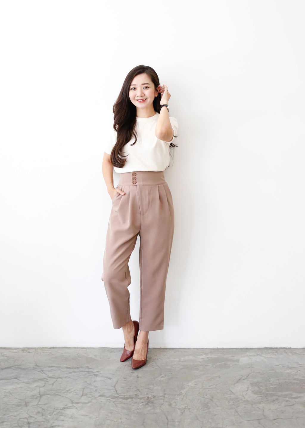 Type: High Waist Cropped Hem Pants | Polyester Fabric | Not Stretchable | Slanted Zipper Design | Side Pockets