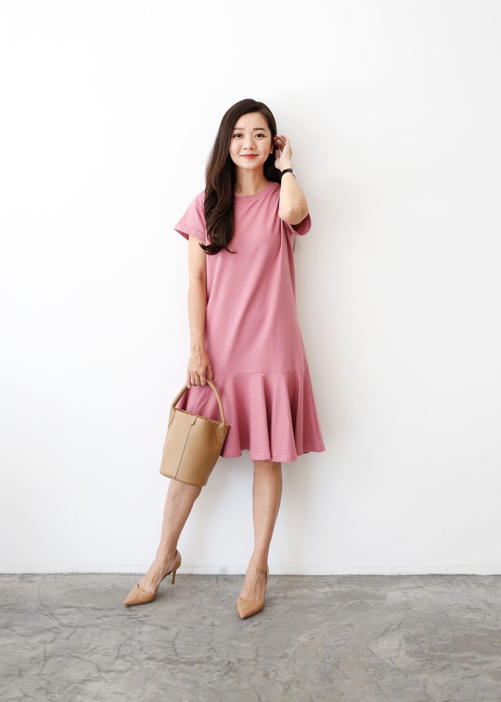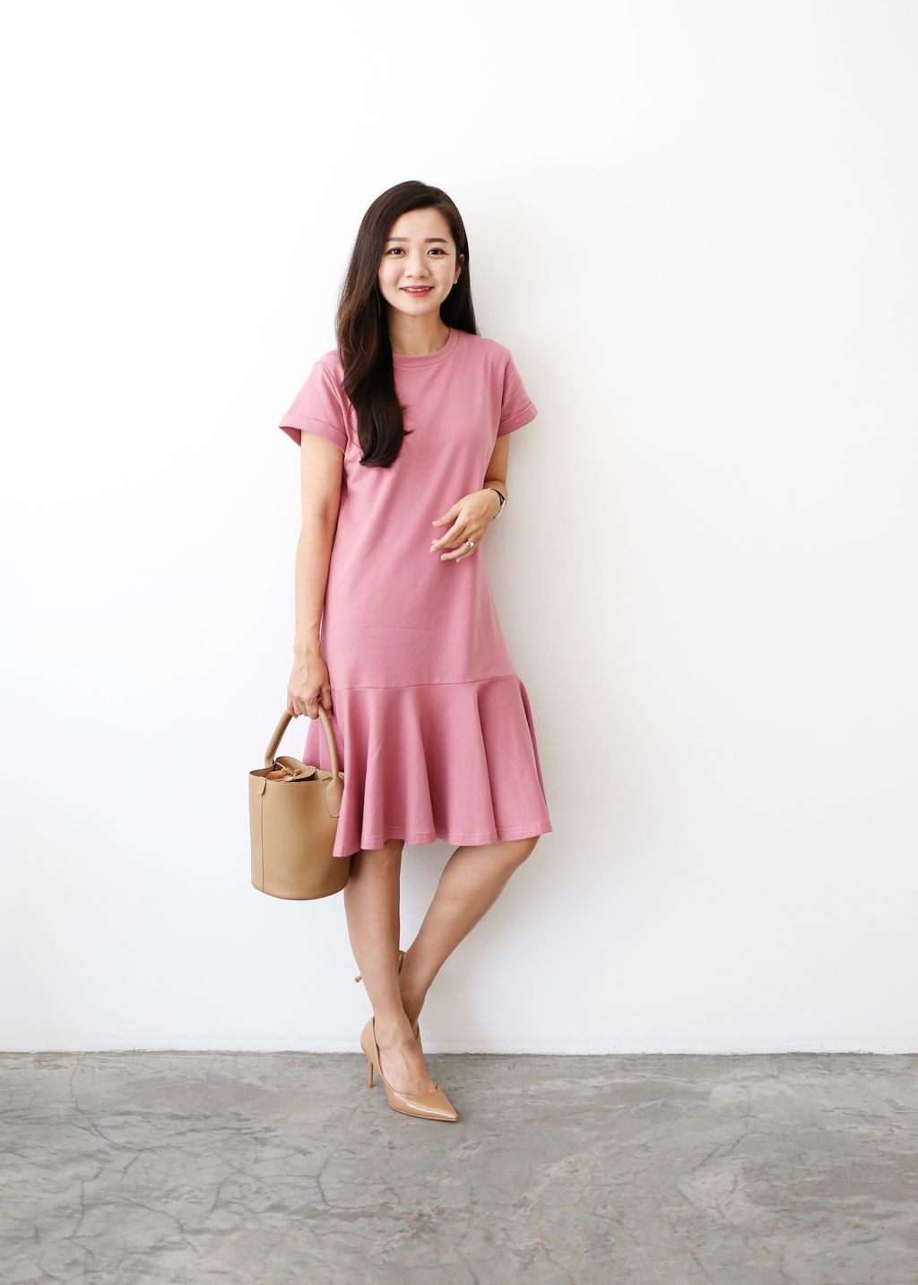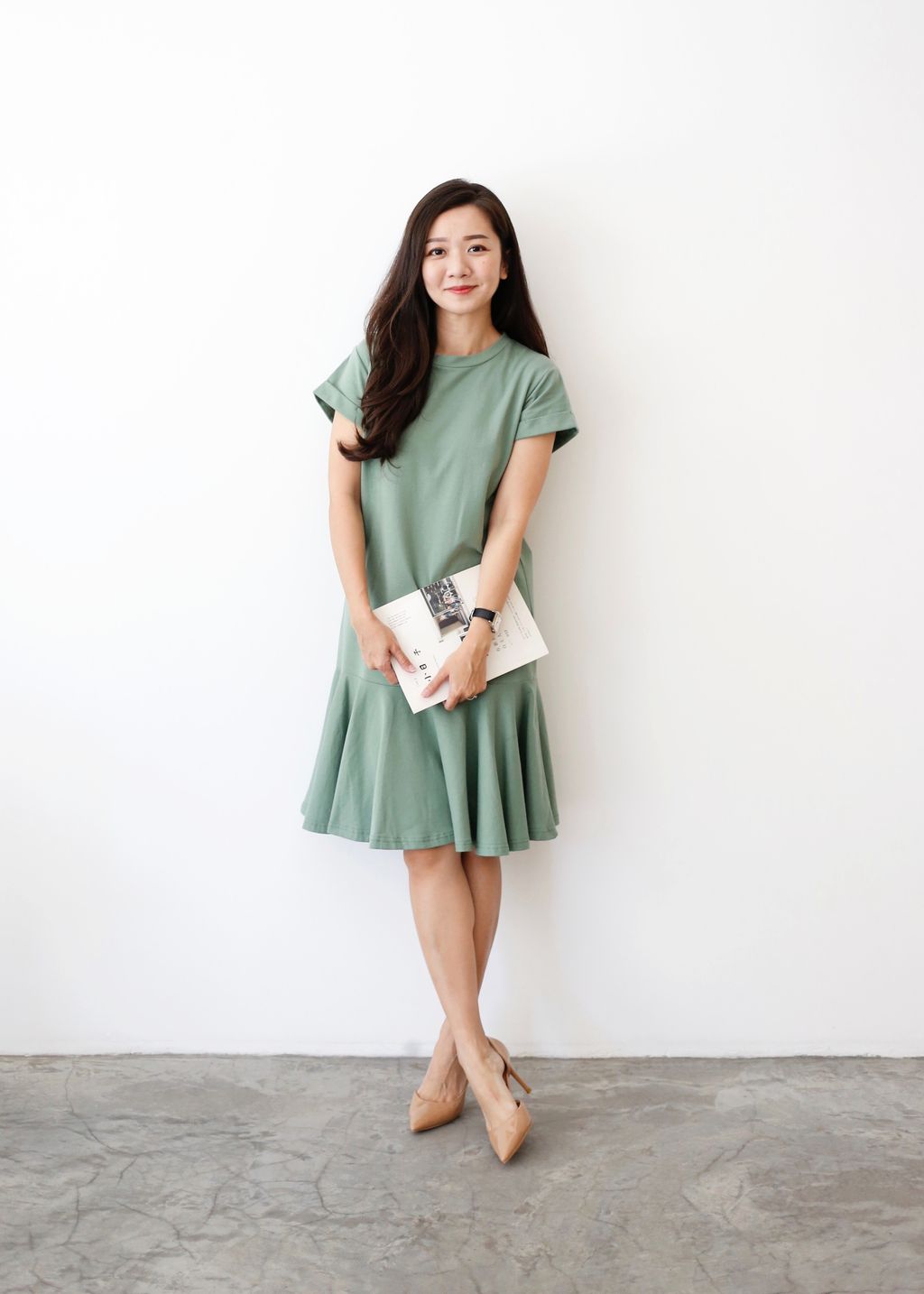 Type: Short Sleeves Flared Hem Dress | Cotton Fabric | Folded Sleeves Design | Slightly Stretchable