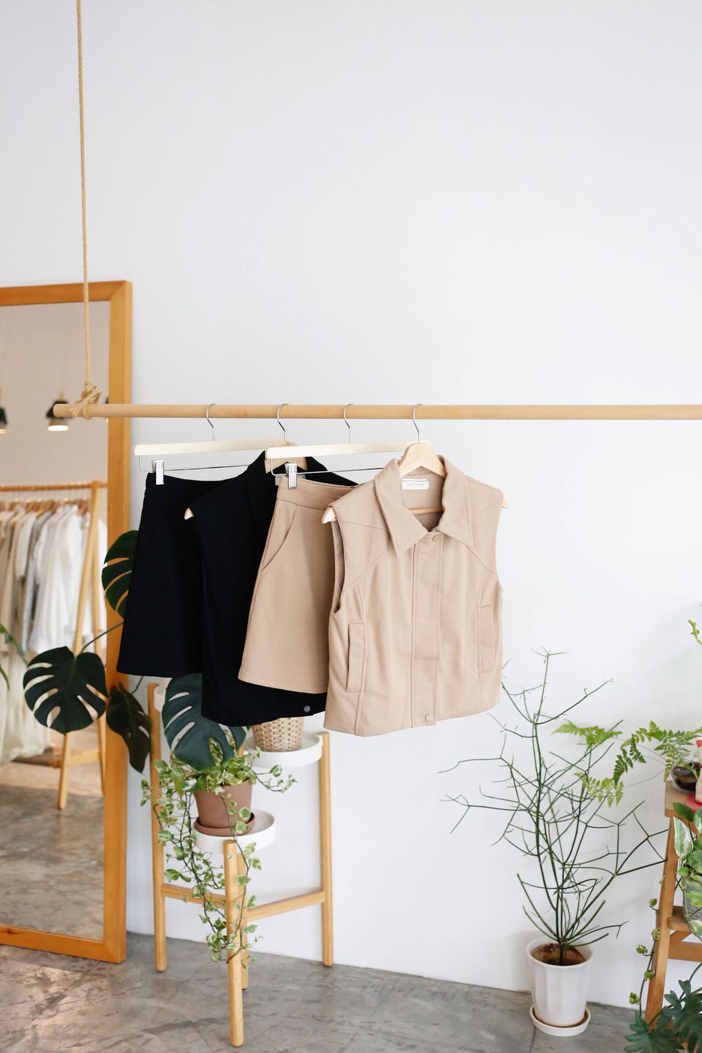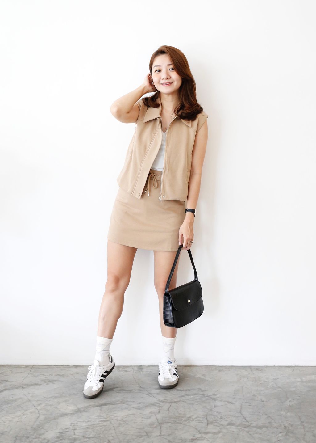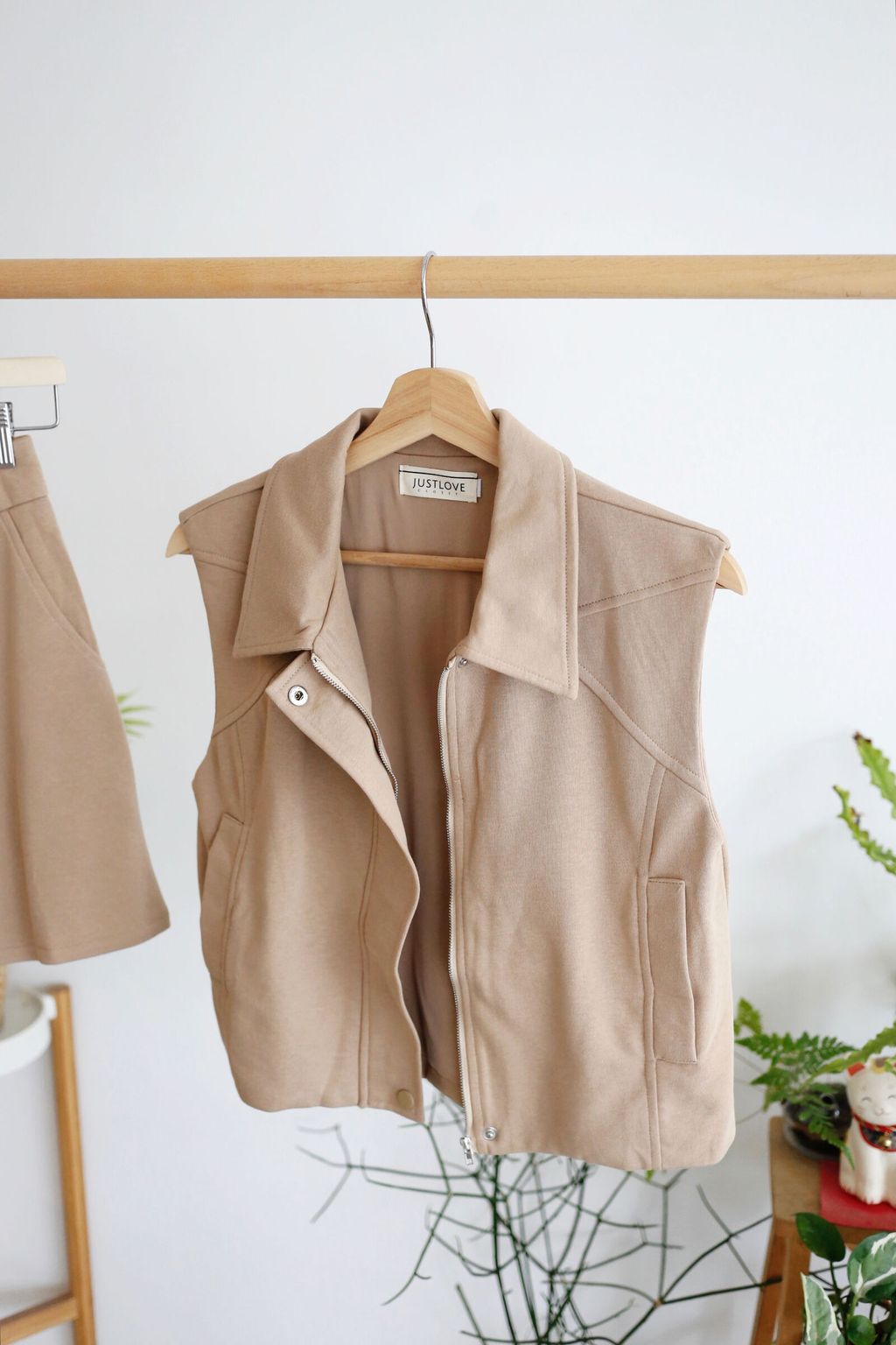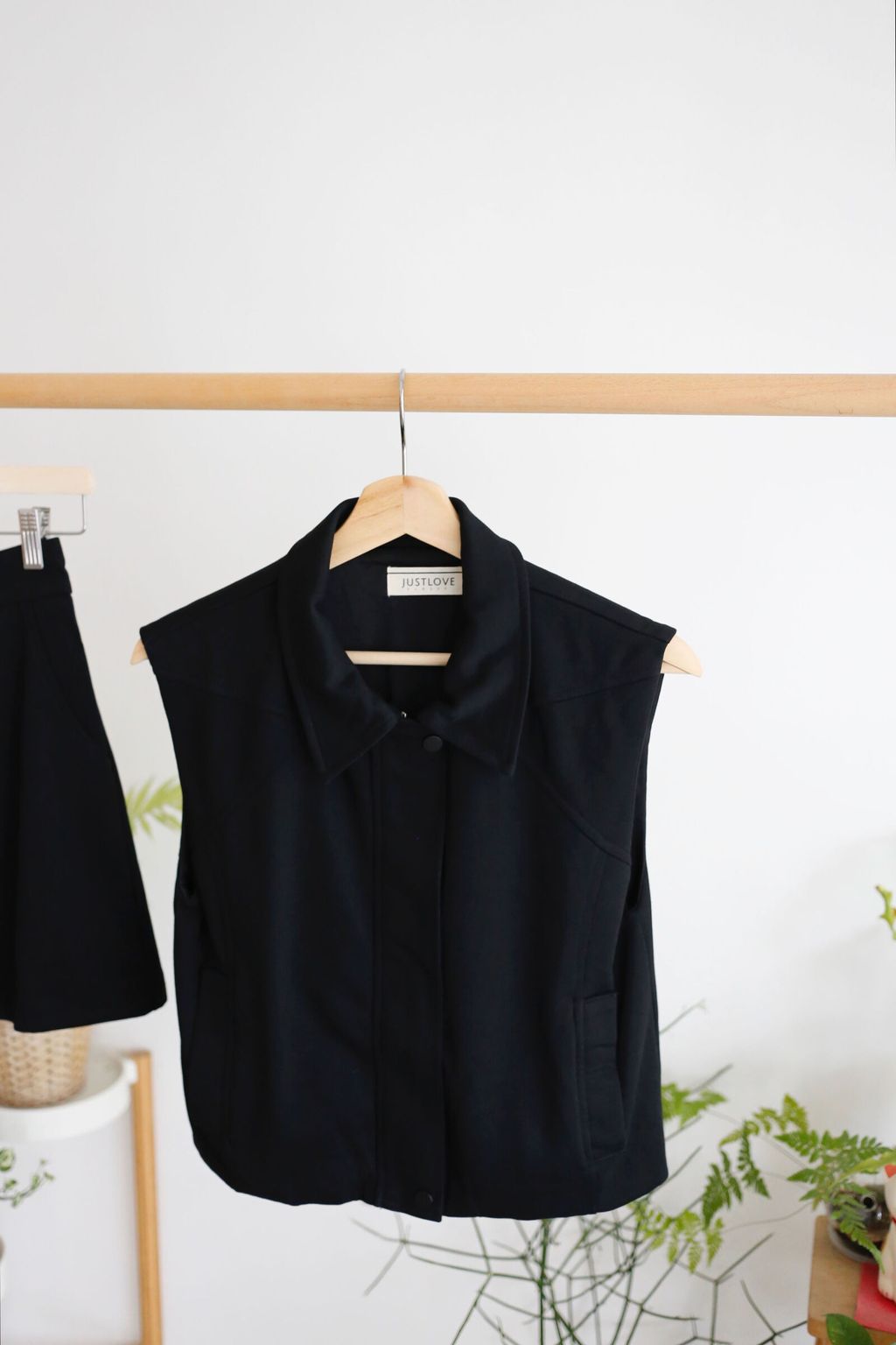 Type: 2PCS Collared Vest and Skirt Set | Stretchable Cotton Fabric | Front Zipper for Vest | Back Zipper with Drawstring for Skirt | Vest with Full Lining | Skirt with Pants Lining | Side Pockets