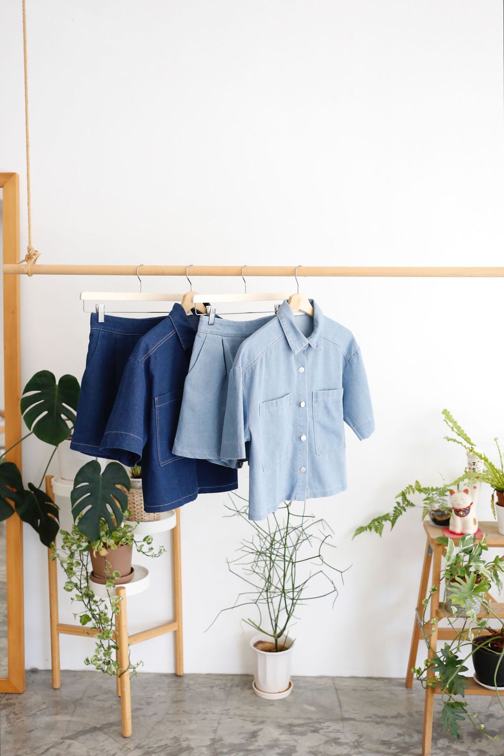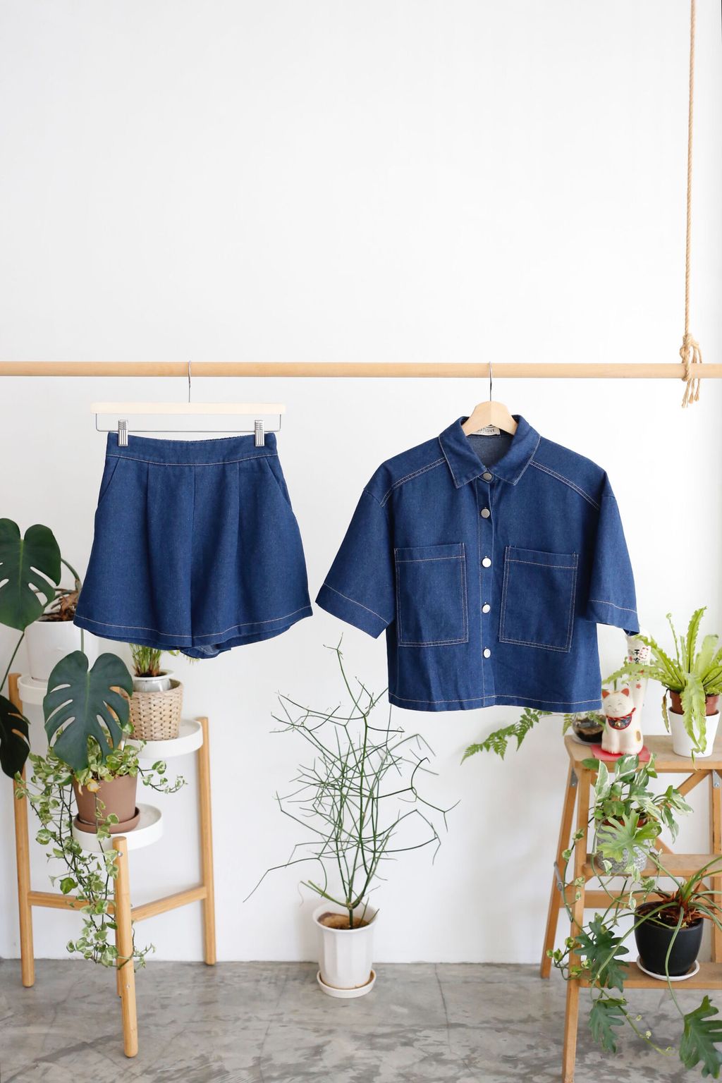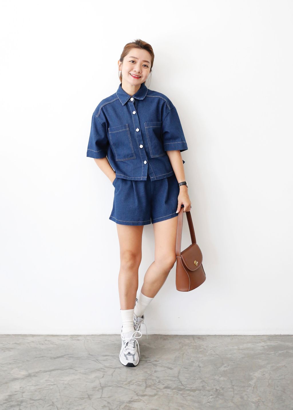 Type: 2PCS Denim Cropped Shirt with Shorts Set | Non Stretchable Denim | Stretchable Waistband for Pants | Side Pockets for Pants