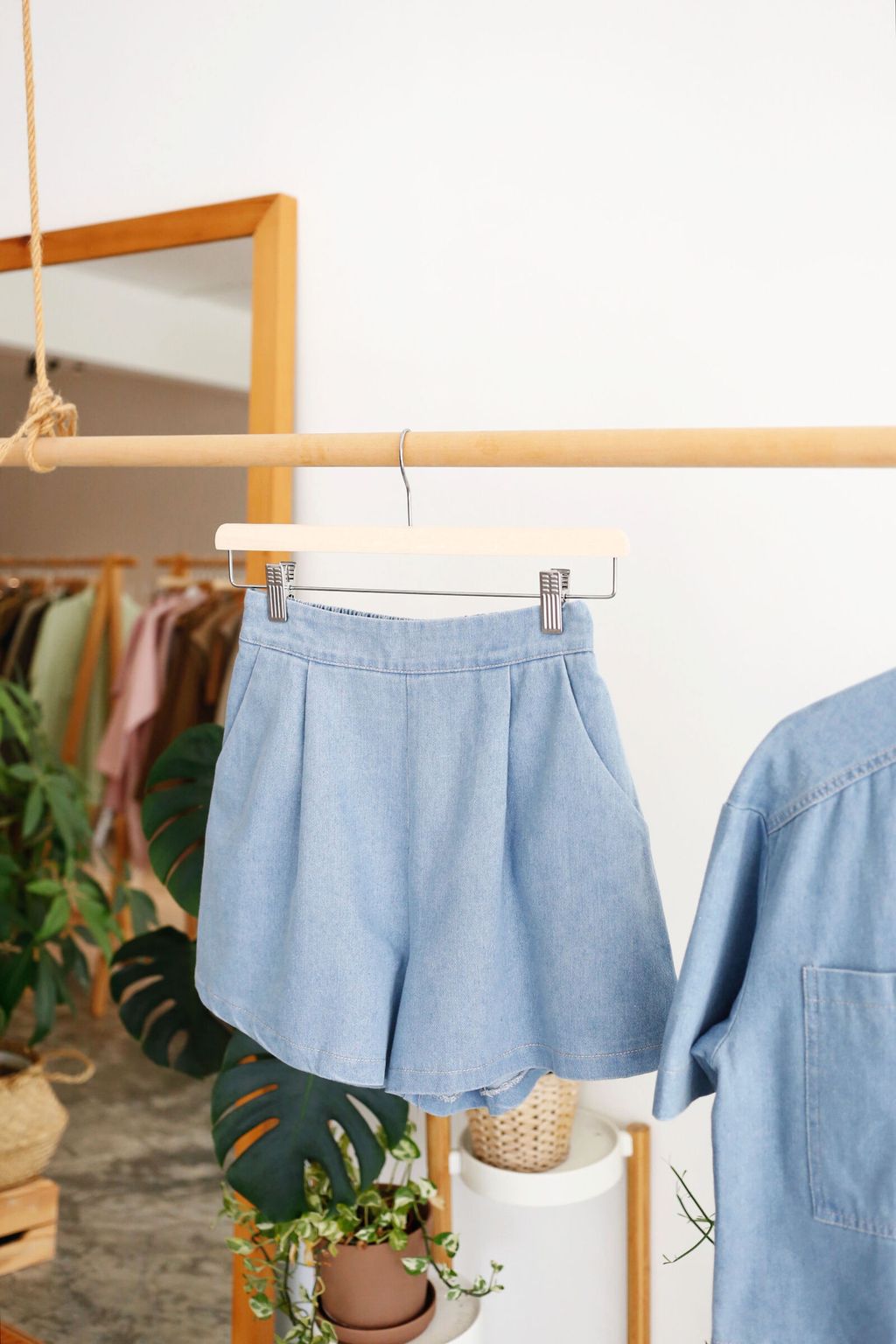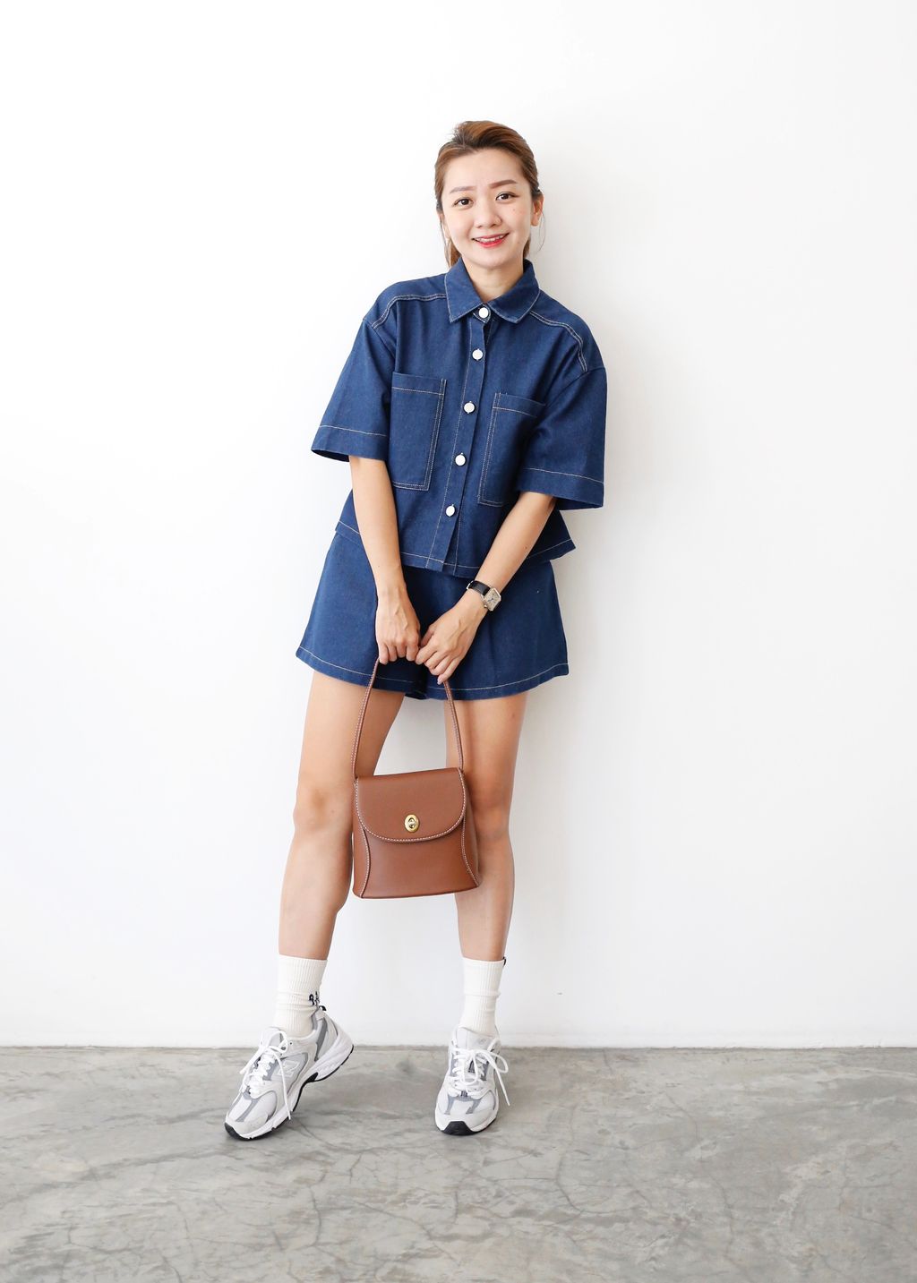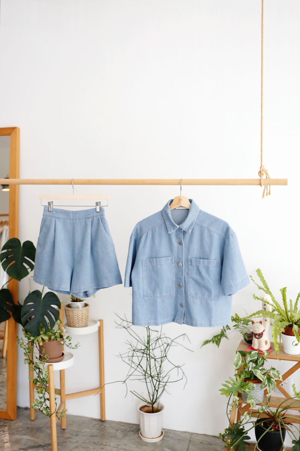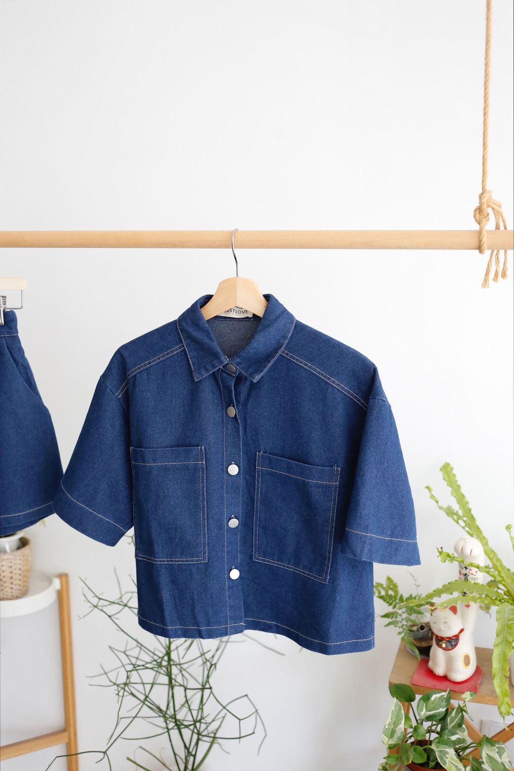 Type: 2PCS Denim Cropped Shirt with Shorts Set | Non Stretchable Denim | Stretchable Waistband for Pants | Side Pockets for Pants