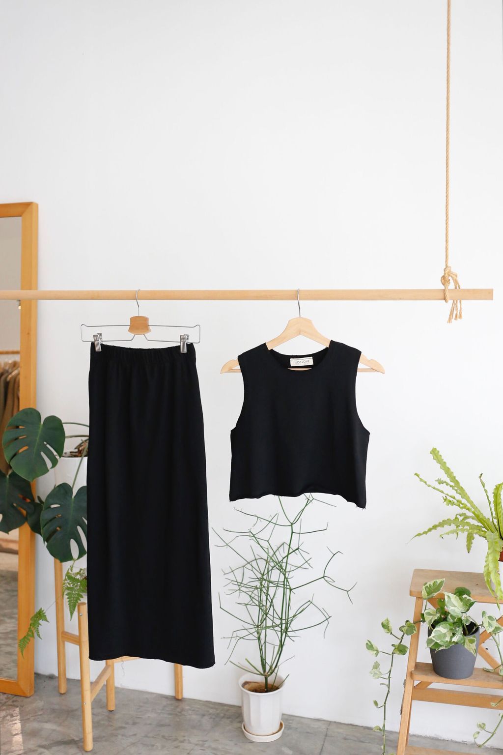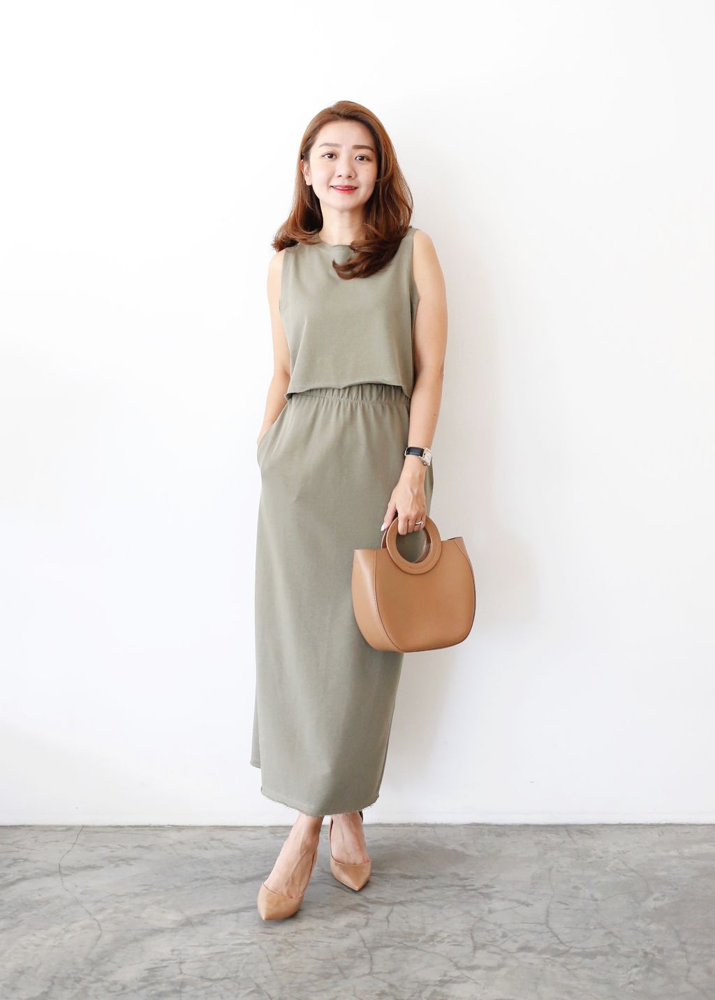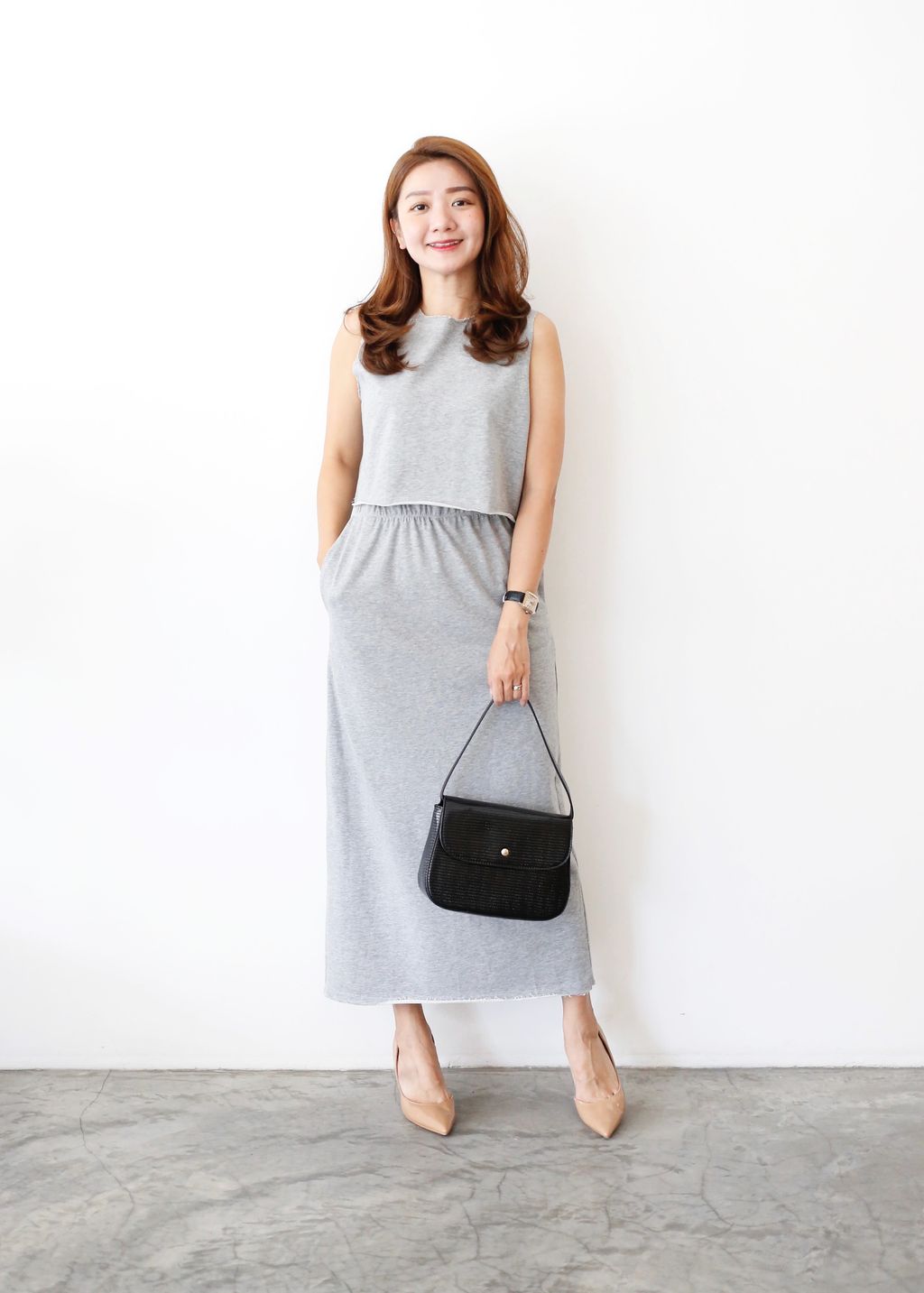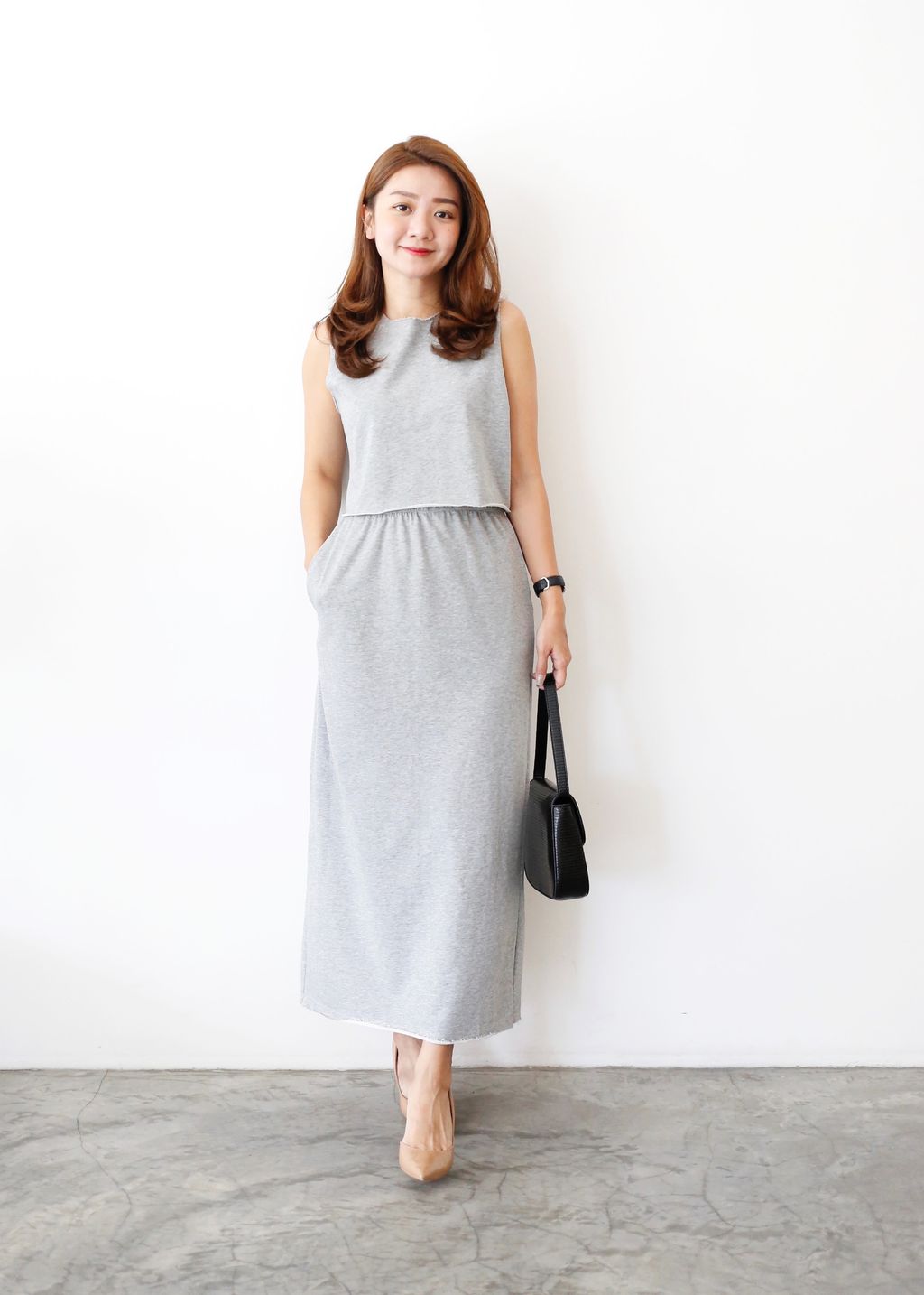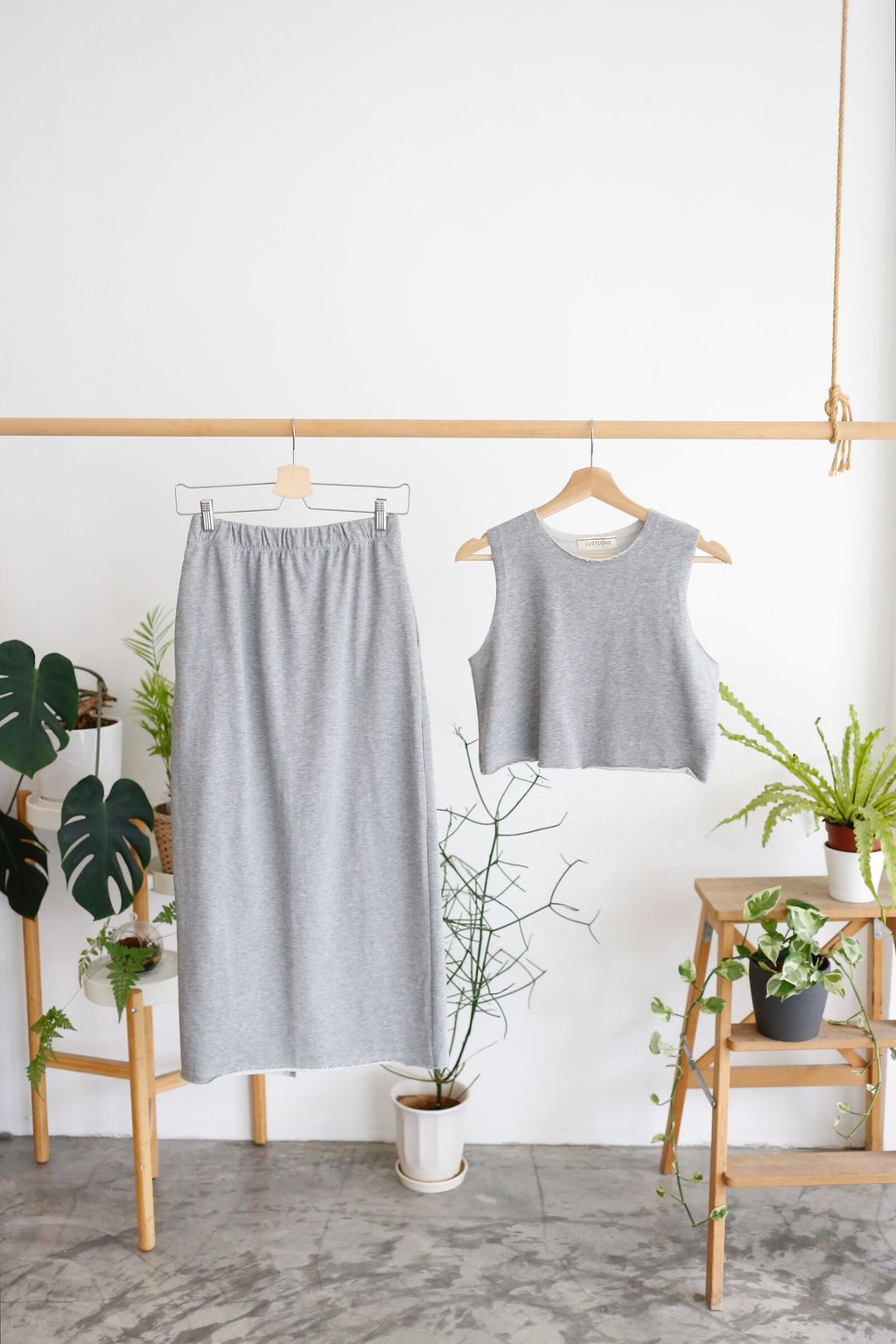 Type: 2PCS Frayed Hem Top and Skirt Set | French Terry Fabric | Slightly Stretchable | Stretchable Waistband for Skirt | Side Pockets | Kindly Take Note on Bigger Armpit Gap Hole | Back Slit Design for Skirt