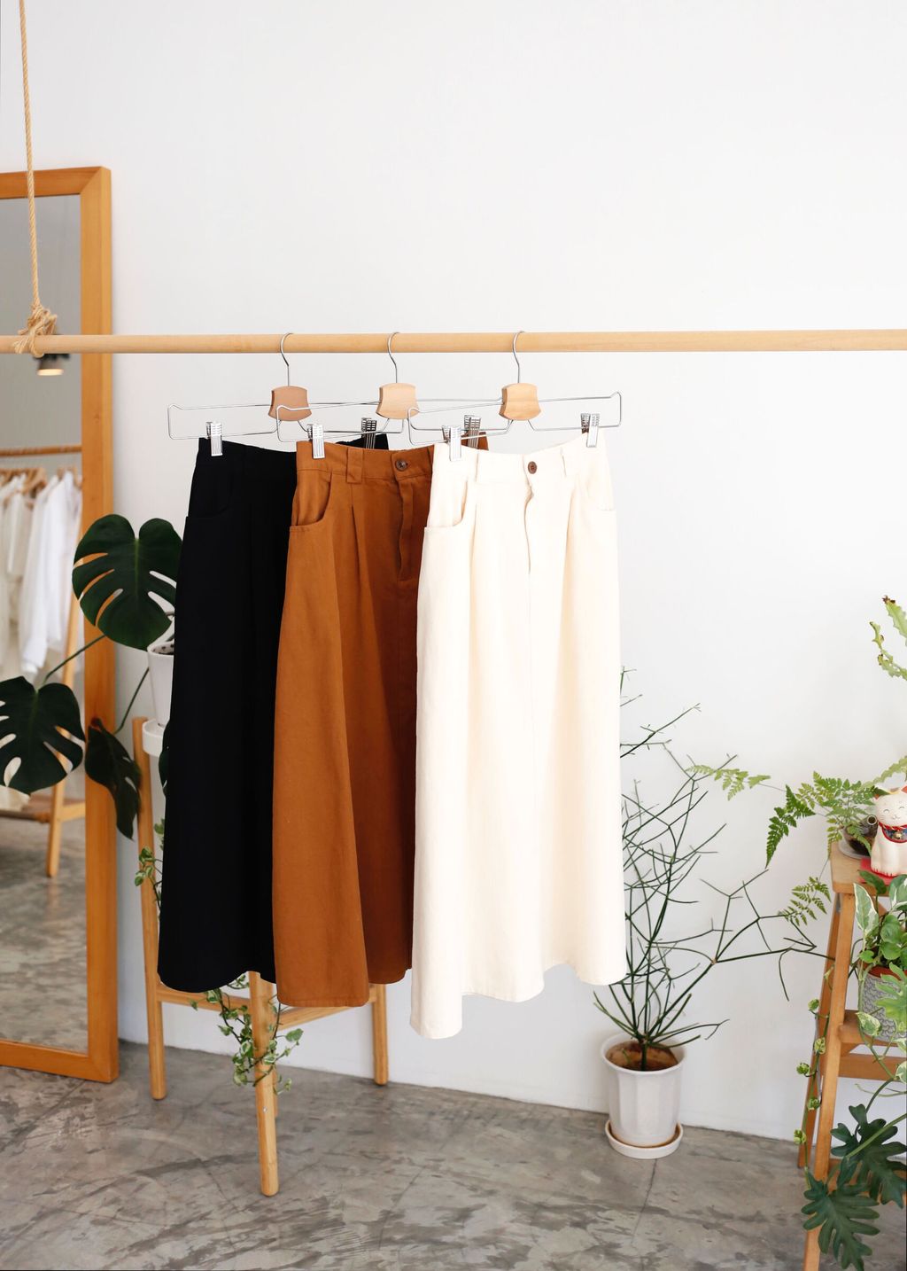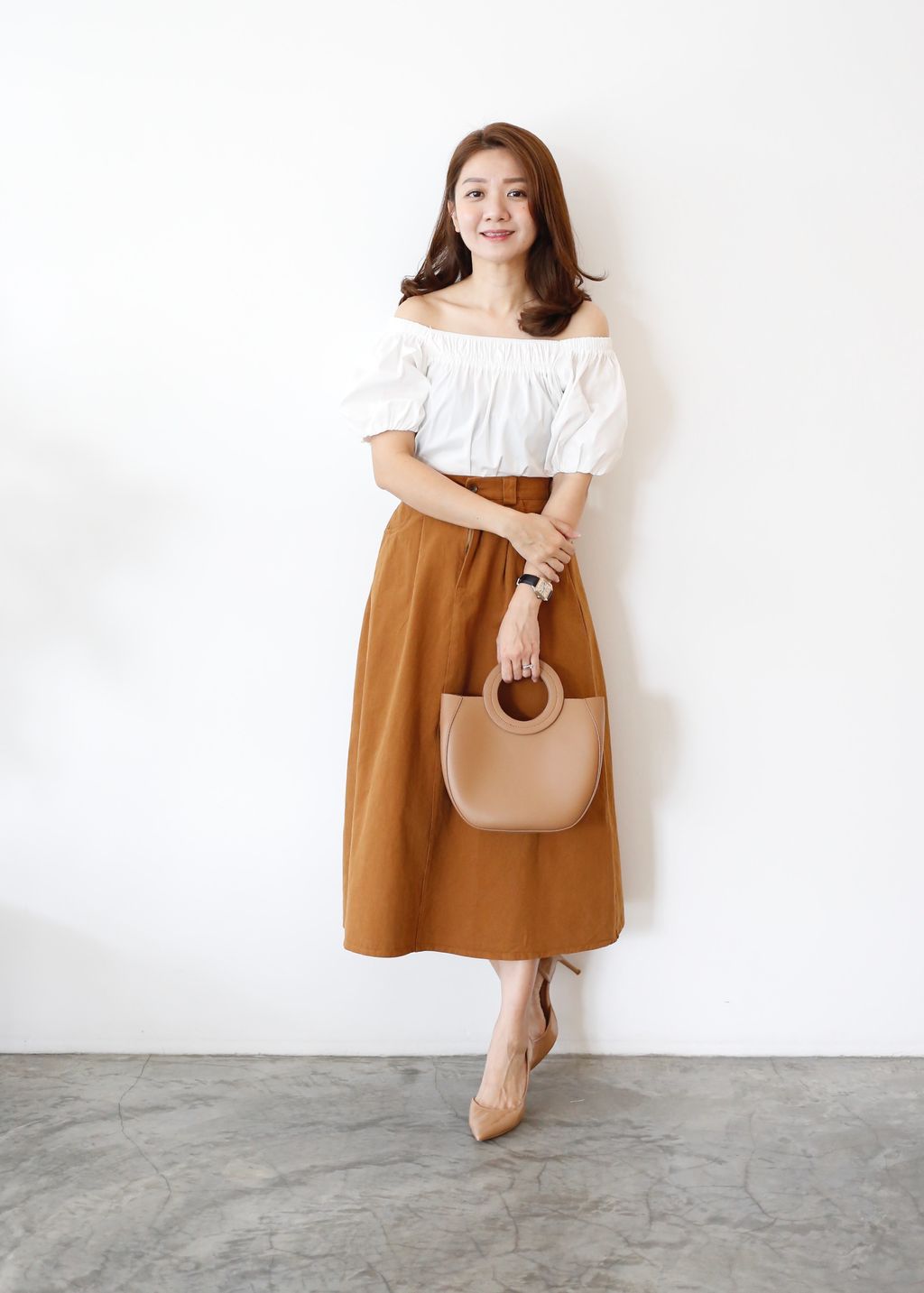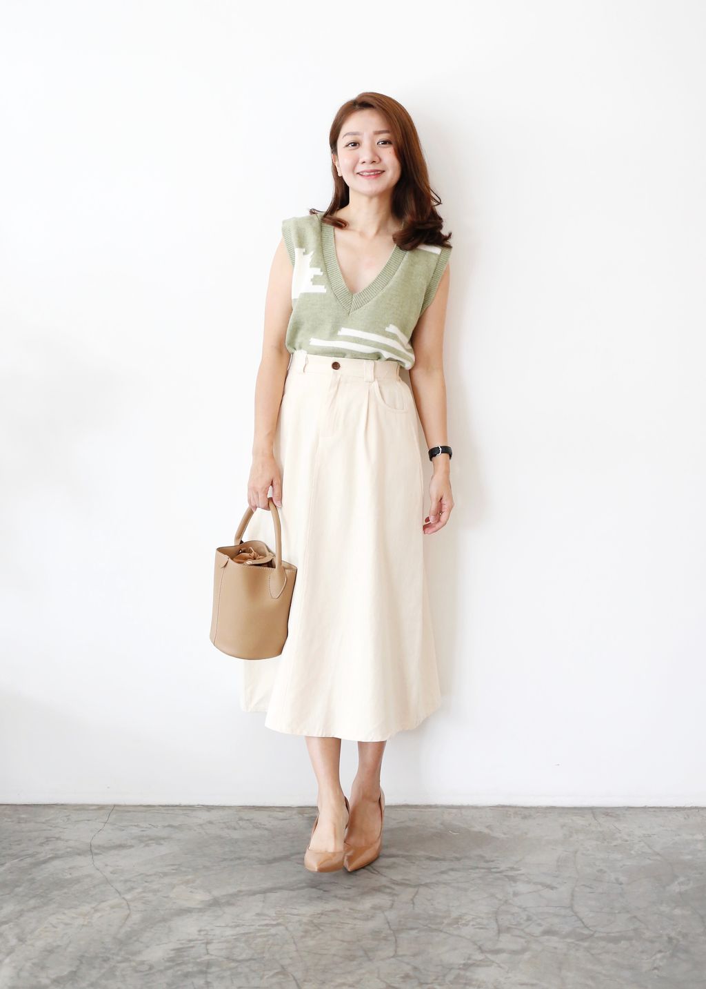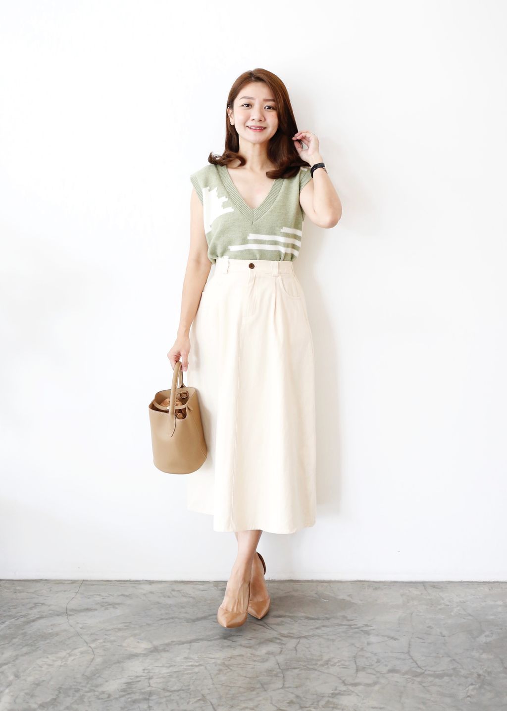 Type: Cotton Twill A-Line Midi Skirt | Non Stretchable Cotton Twill Fabric | Side Pockets | Front Zipper | Stretchable Waistband