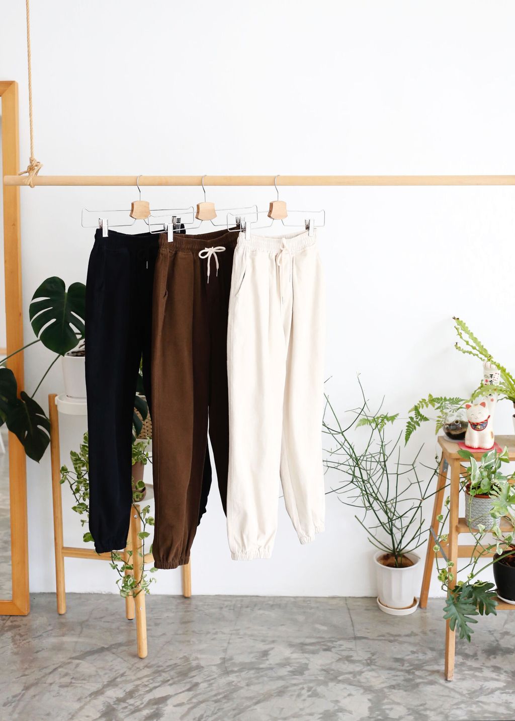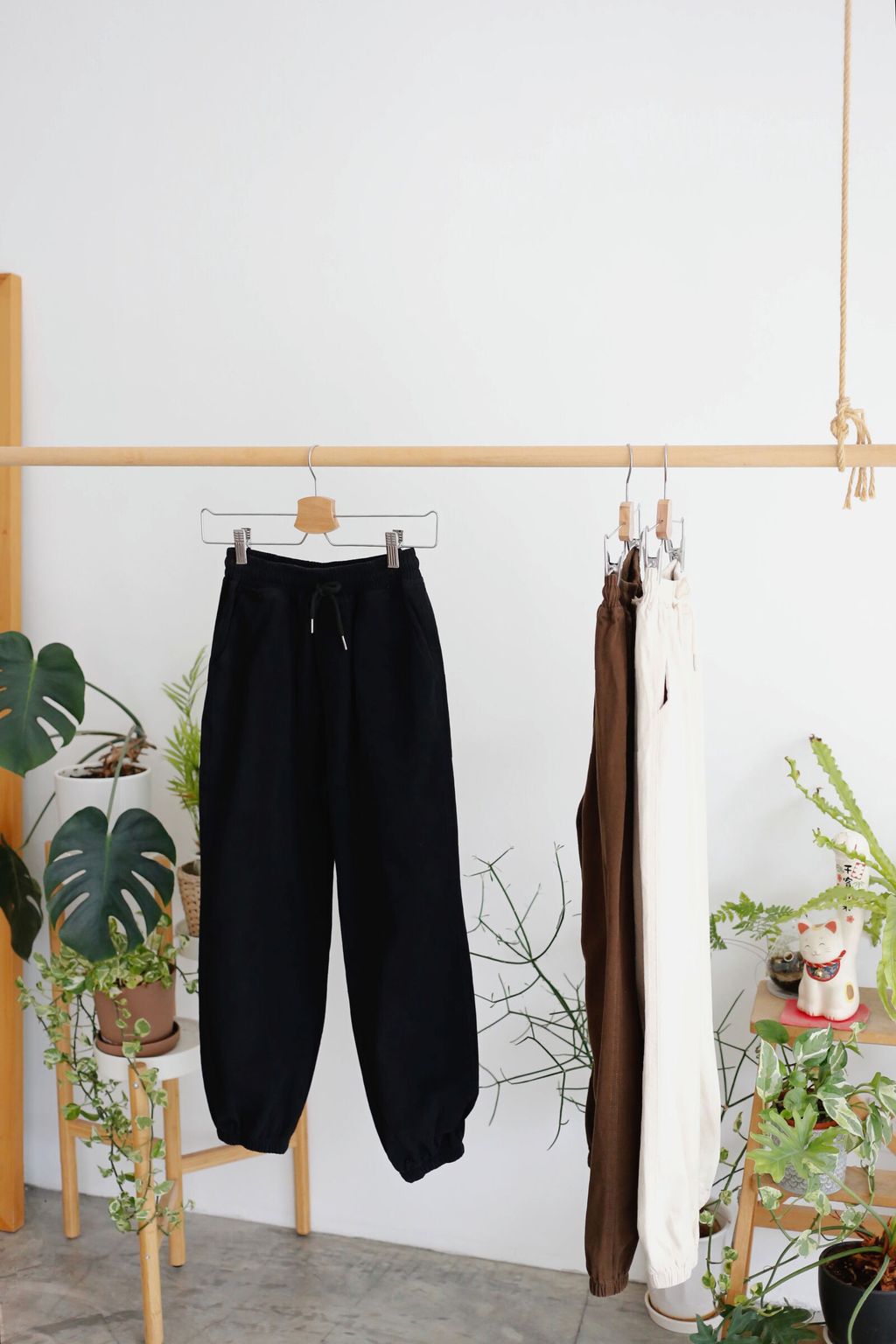 Type: Cotton Twill Jogger Pants | Cotton Twill Fabric | Stretchable Waistband With Drawstring | Side Pockets | Black Color Shorter, Please Refer to Measurement Below | Not Suitable for Height > 164cm