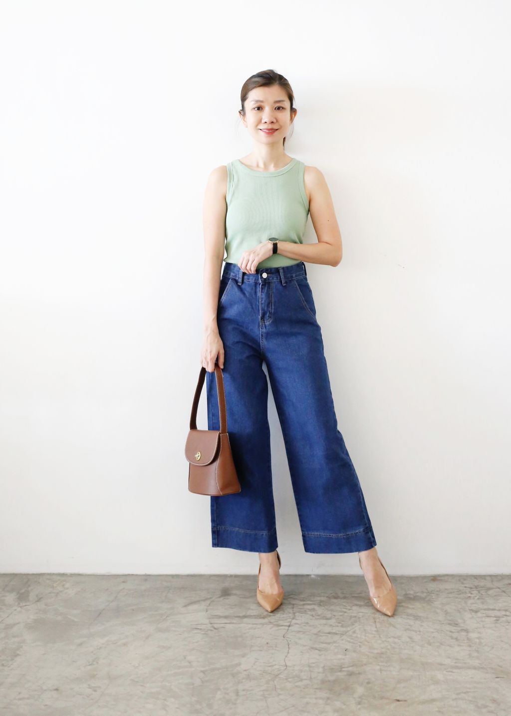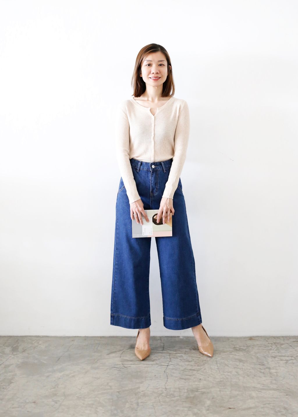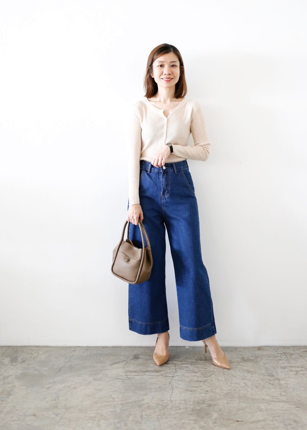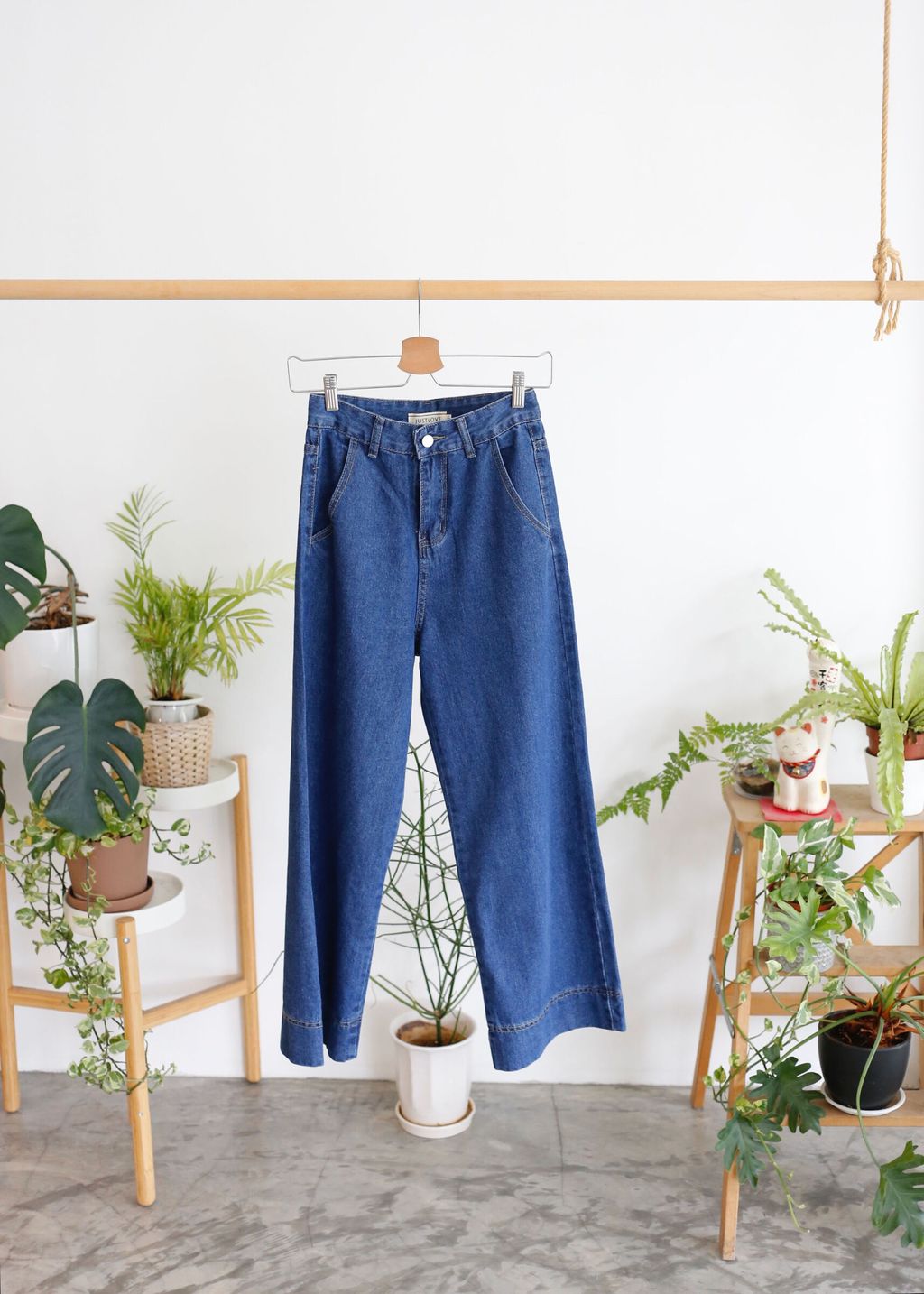 Type: Denim High Rise Wide Leg Pants | Non Stretchable Denim Fabric | Front Zipper | Side Pockets | Not Suitable for Height > 165cm | Kindly Take Note on Smaller Hips Measurement