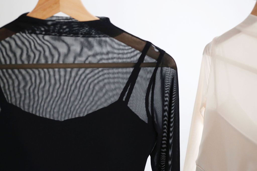 Mesh Turtle Neck Padded Blouse