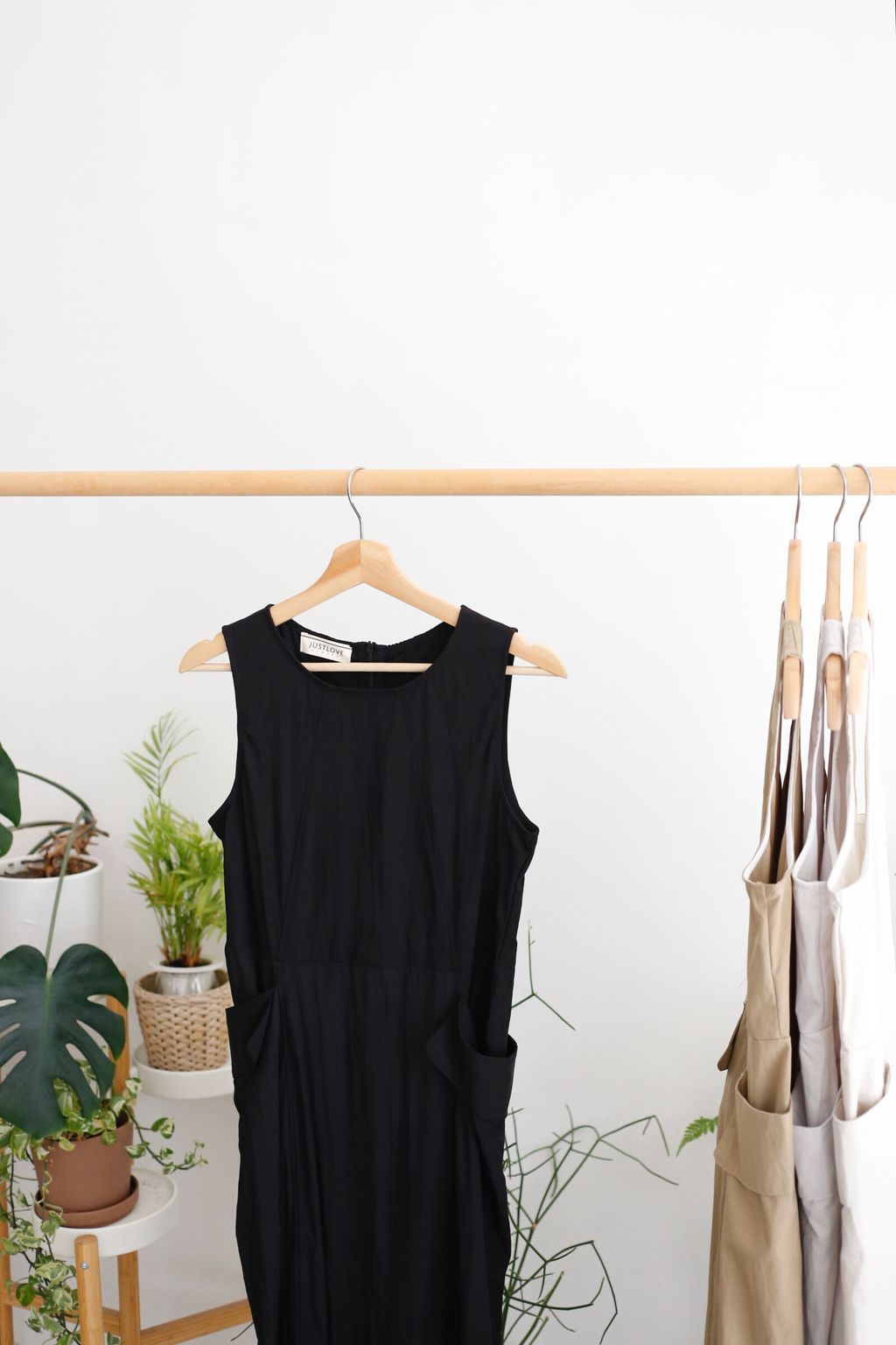 Type: Sleeveless Side Pockets Dress | Nylon Fabric | Not Stretchable | Side Pockets | Back Zipper | Low Temperature Iron