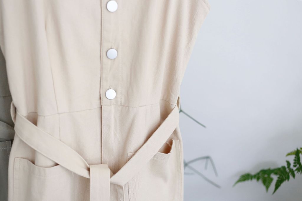Type: Square Neck Soft Denim Dress | Soft Denim Fabric | Not Stretchable | Comes with Separate Belt | Front Buttons and Zipper | Front Pockets | Stretchable Waistband at the Back