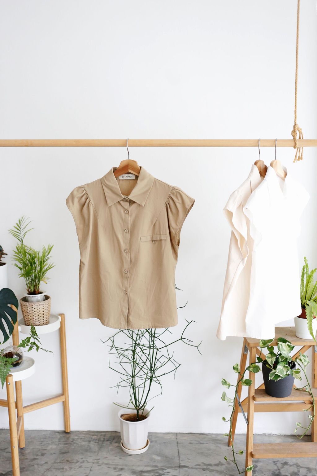 Type: Textured Butterfly Sleeves Blouse | Cotton Linen Fabric | Soft and Comfy | Button Through Design