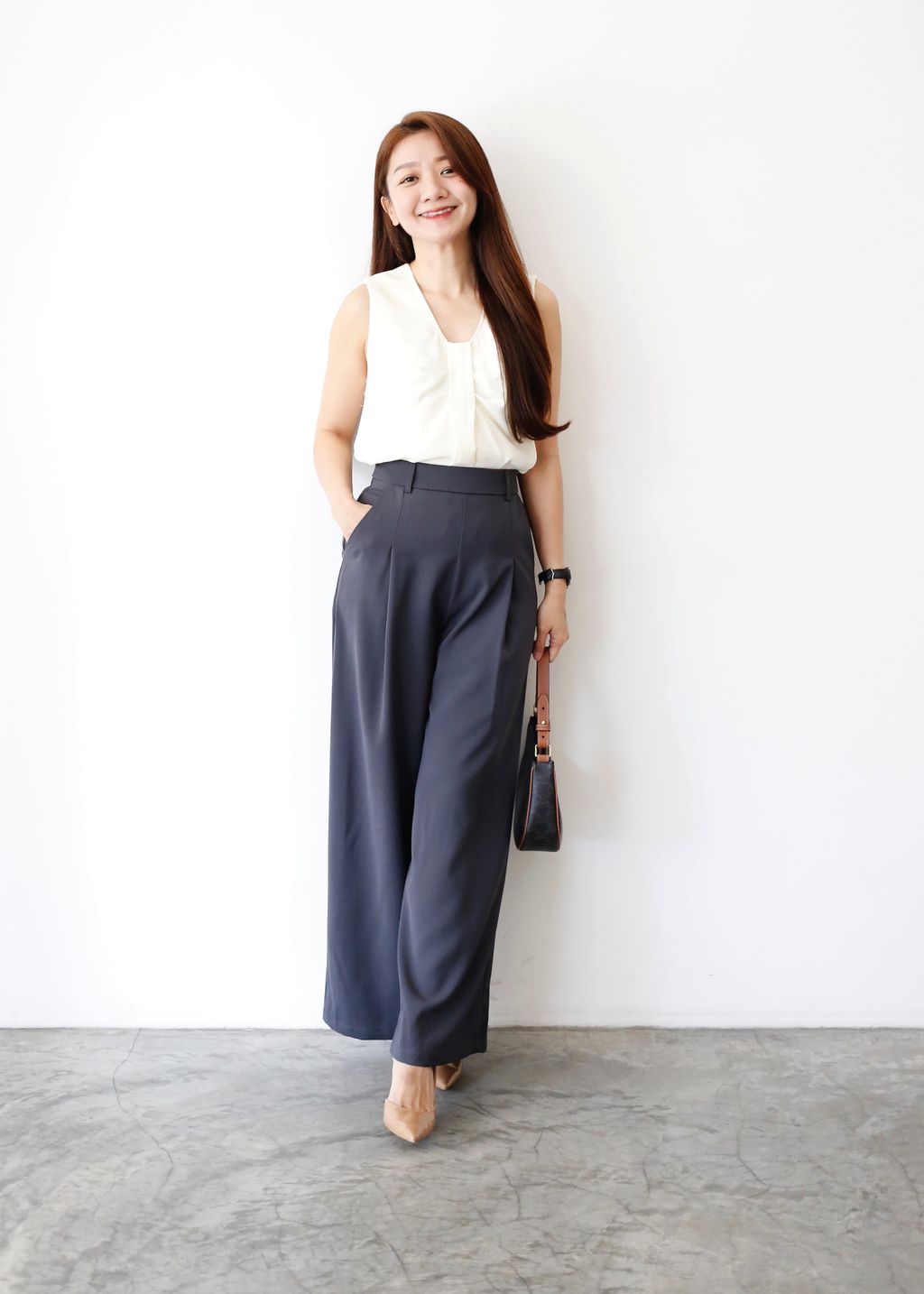 Back Zipper Wide Leg Suit Pants