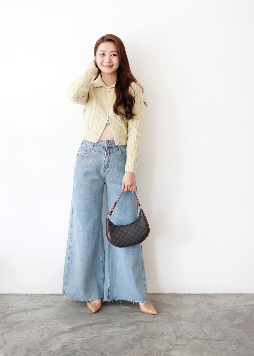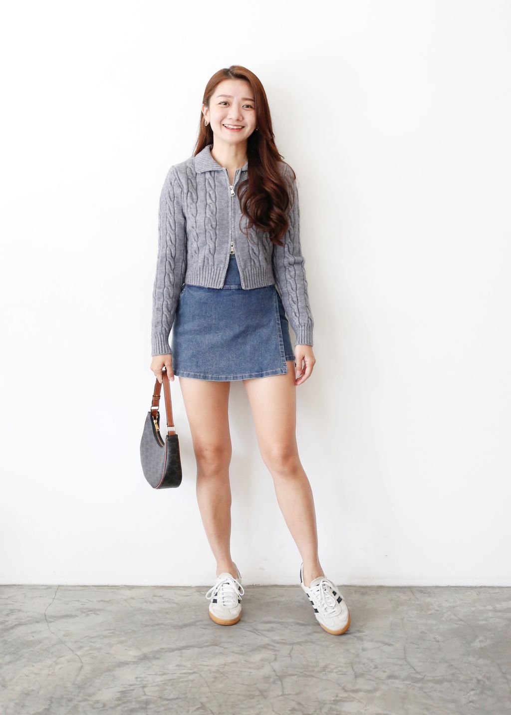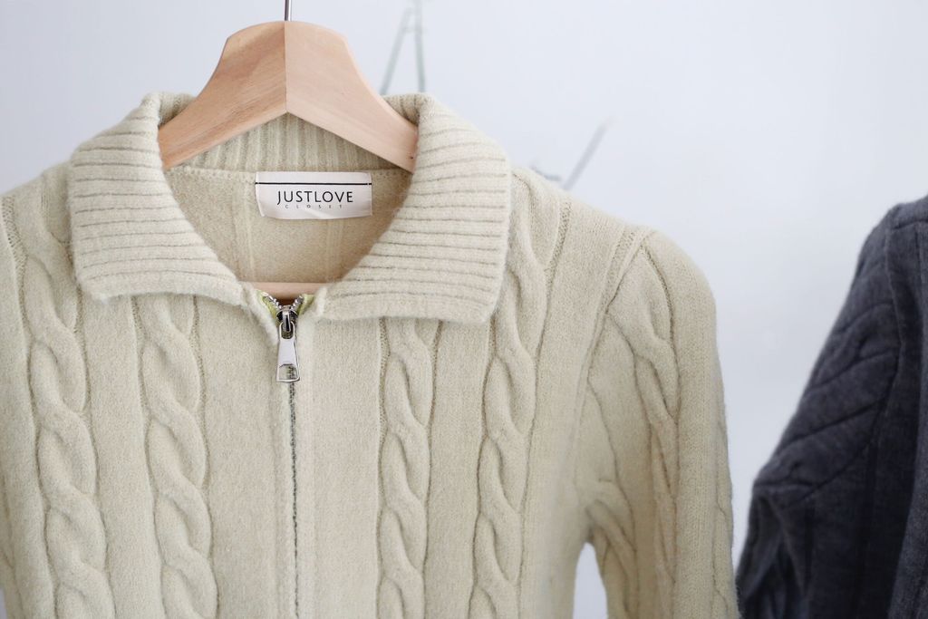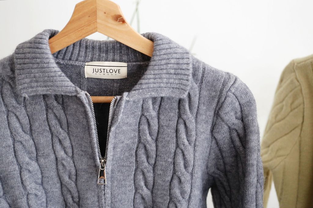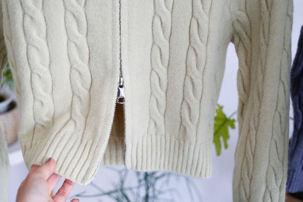 Type: Cropped Cable Knit Zip-Up Sweater | PREMIUM SERIES | Stretchable Knit Fabric | 2-Way Zipper