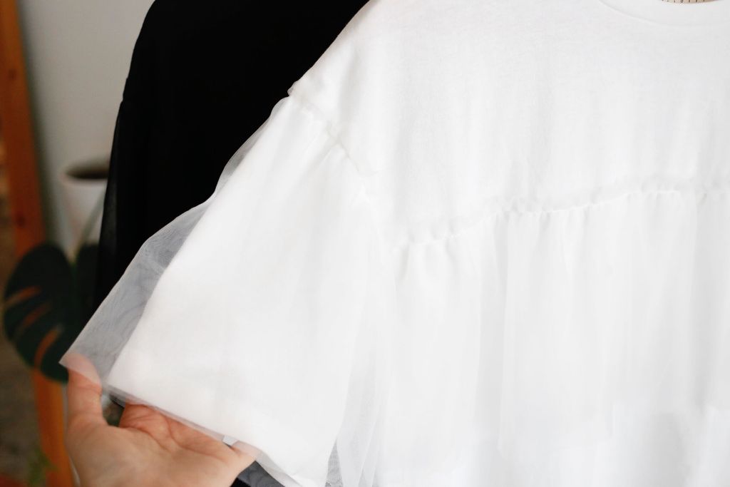 Type: Mesh Overlay Cotton Tee | Outer Layer is a LightWeight Sheer Mesh Fabric | Inner Layer is Stretchable Cotton Fabric | Mesh Cover Only Sleeves and Bust Level