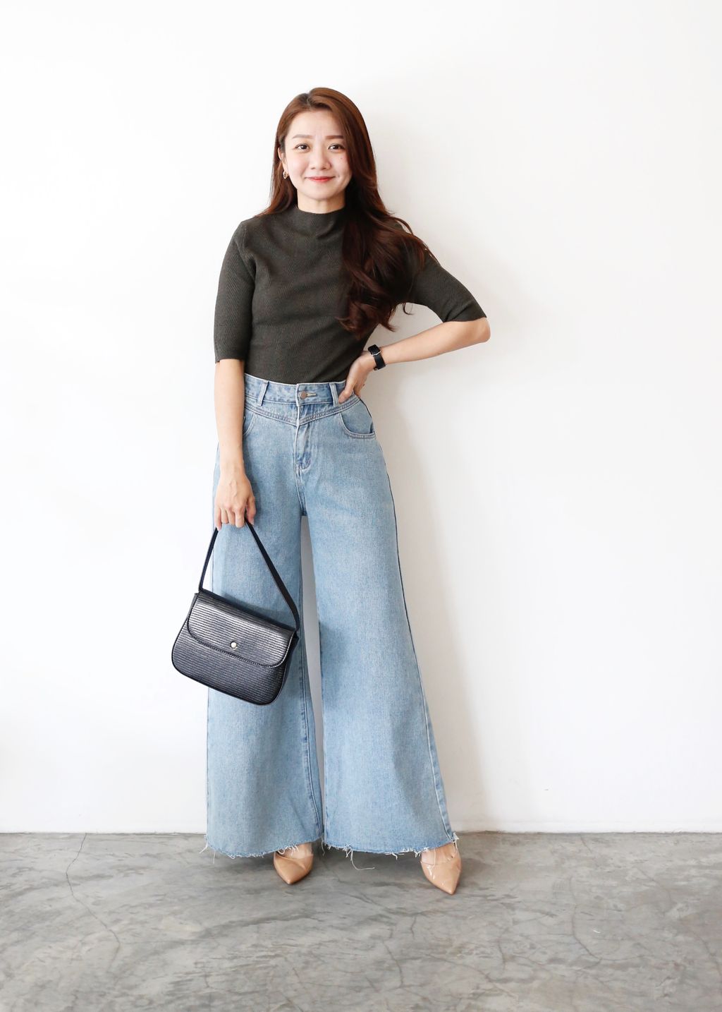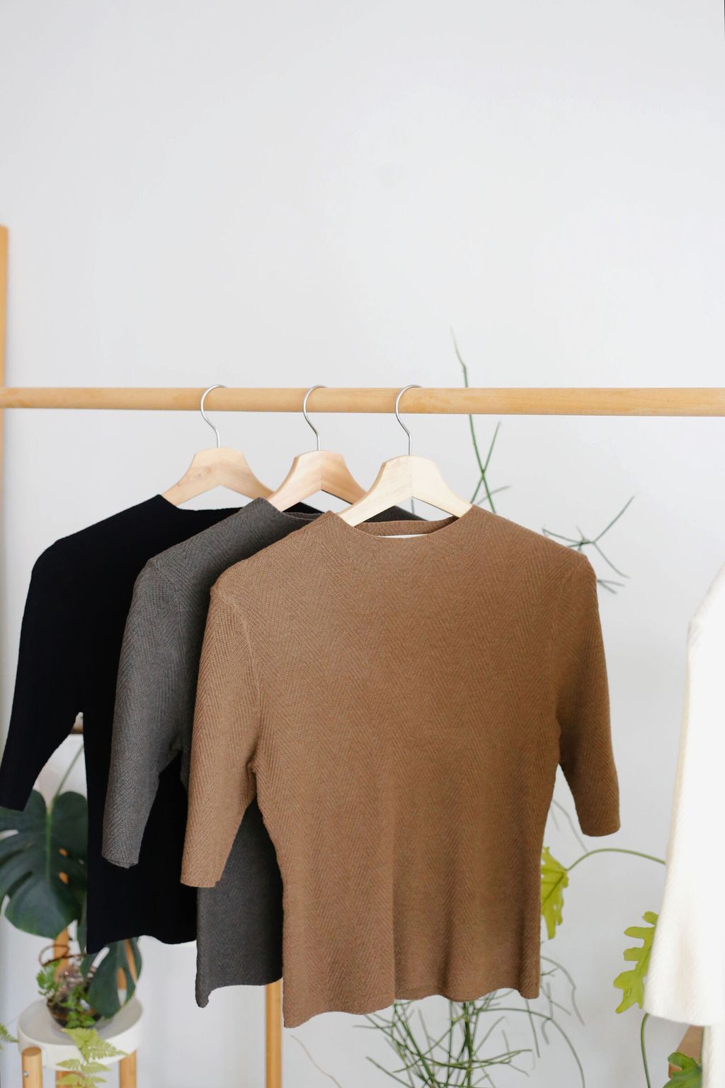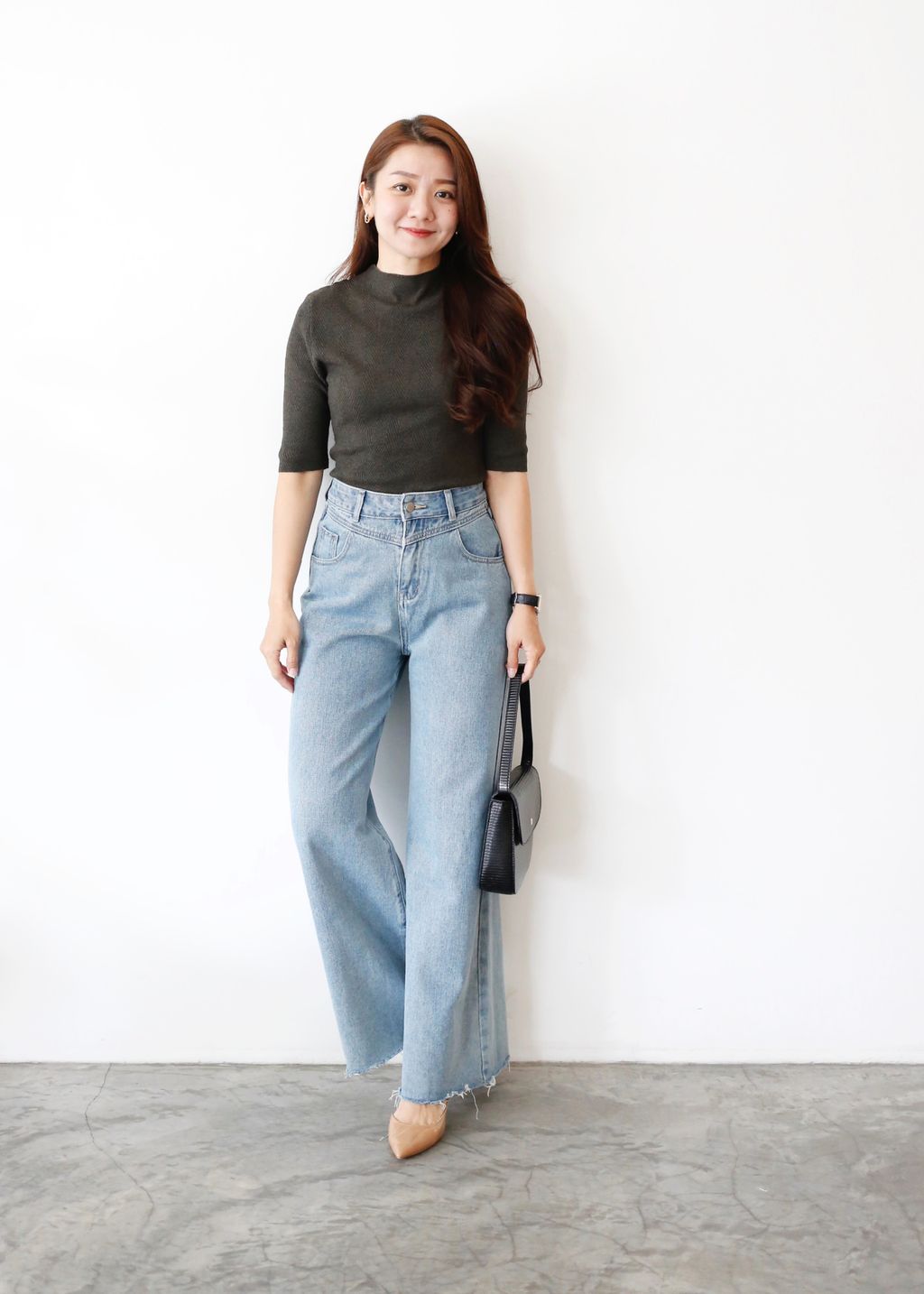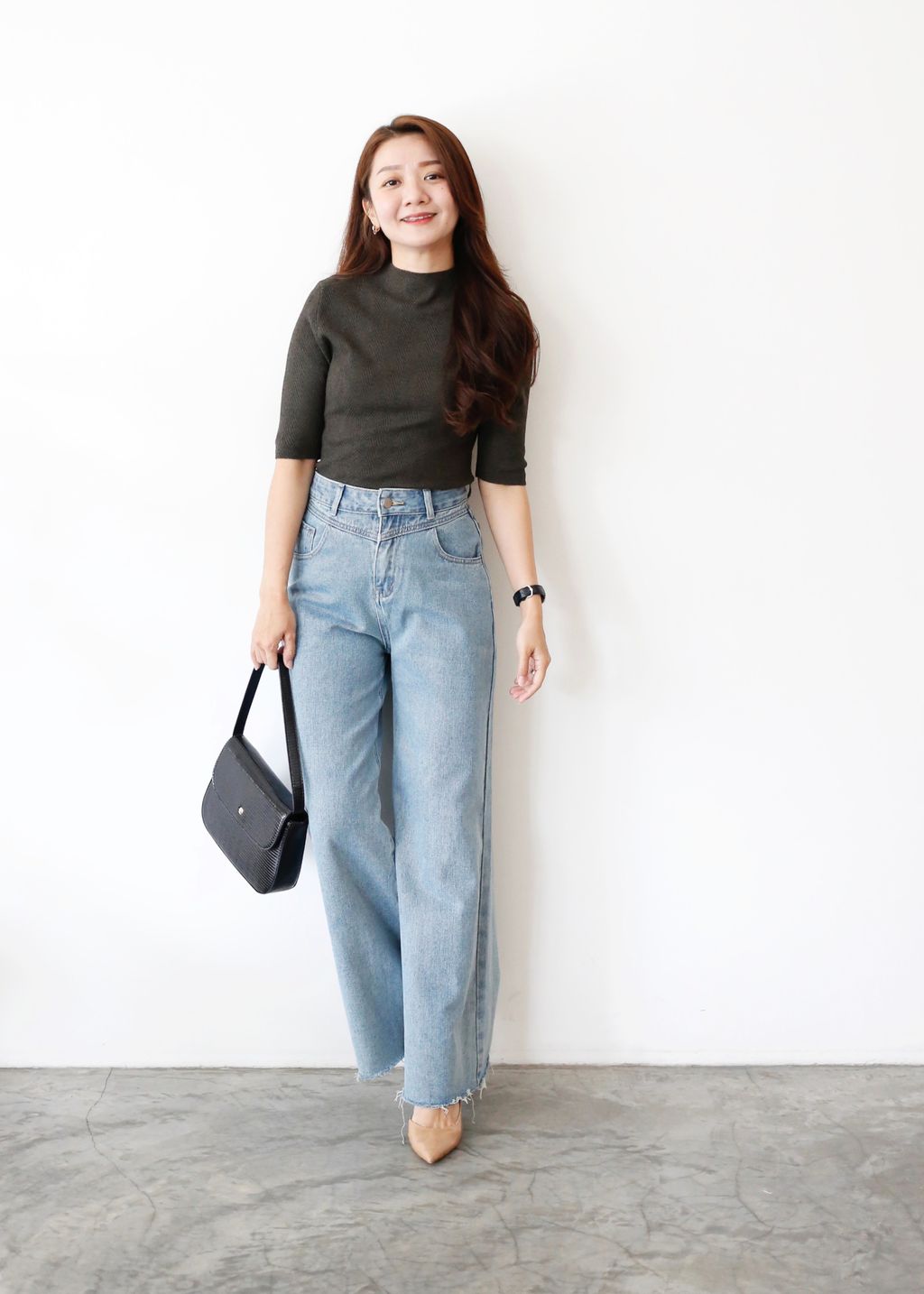 Type: Mock Neck Elbow Sleeves Knit Top | Stretchable Crepe Knit Fabric | Soft and Comfy