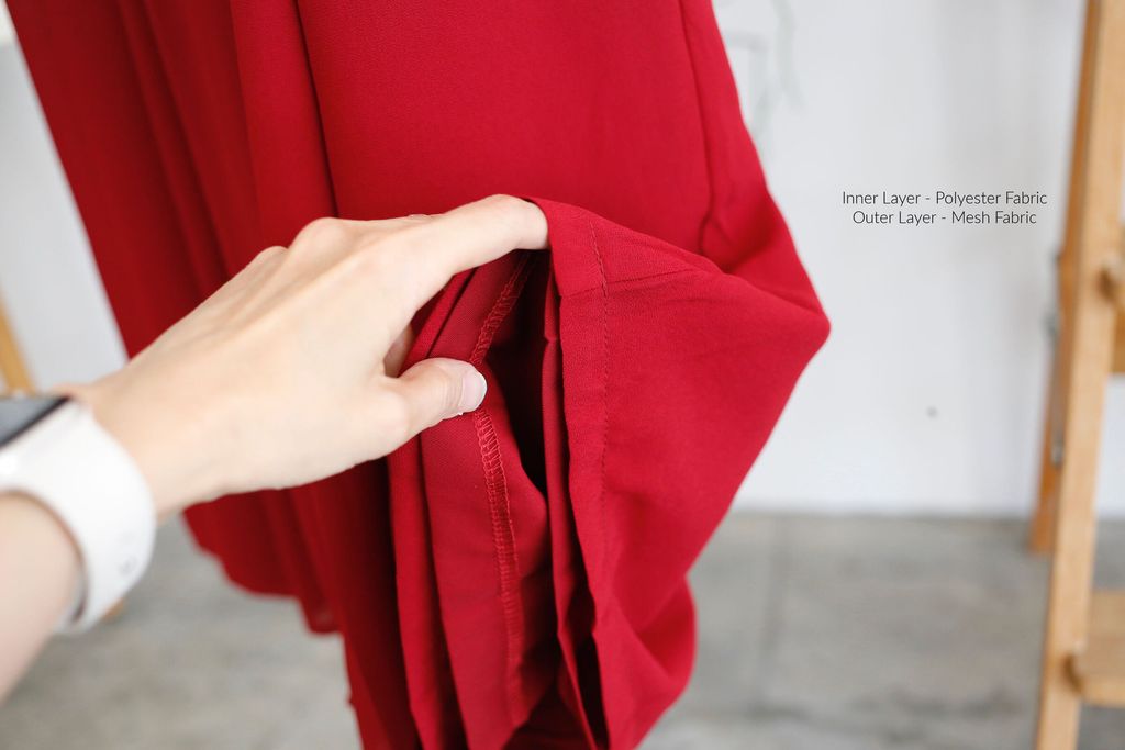 Type: Pleated Mesh Overlay Long Pants | PREMIUM SERIES | Polyester Fabric with Mesh Outer Layer | Side Zipper on Right | Stretchable Waistband | LightWeight Mesh Overlay, Pants Looks Like Skirt At the Front