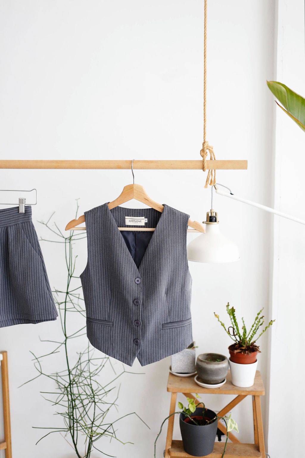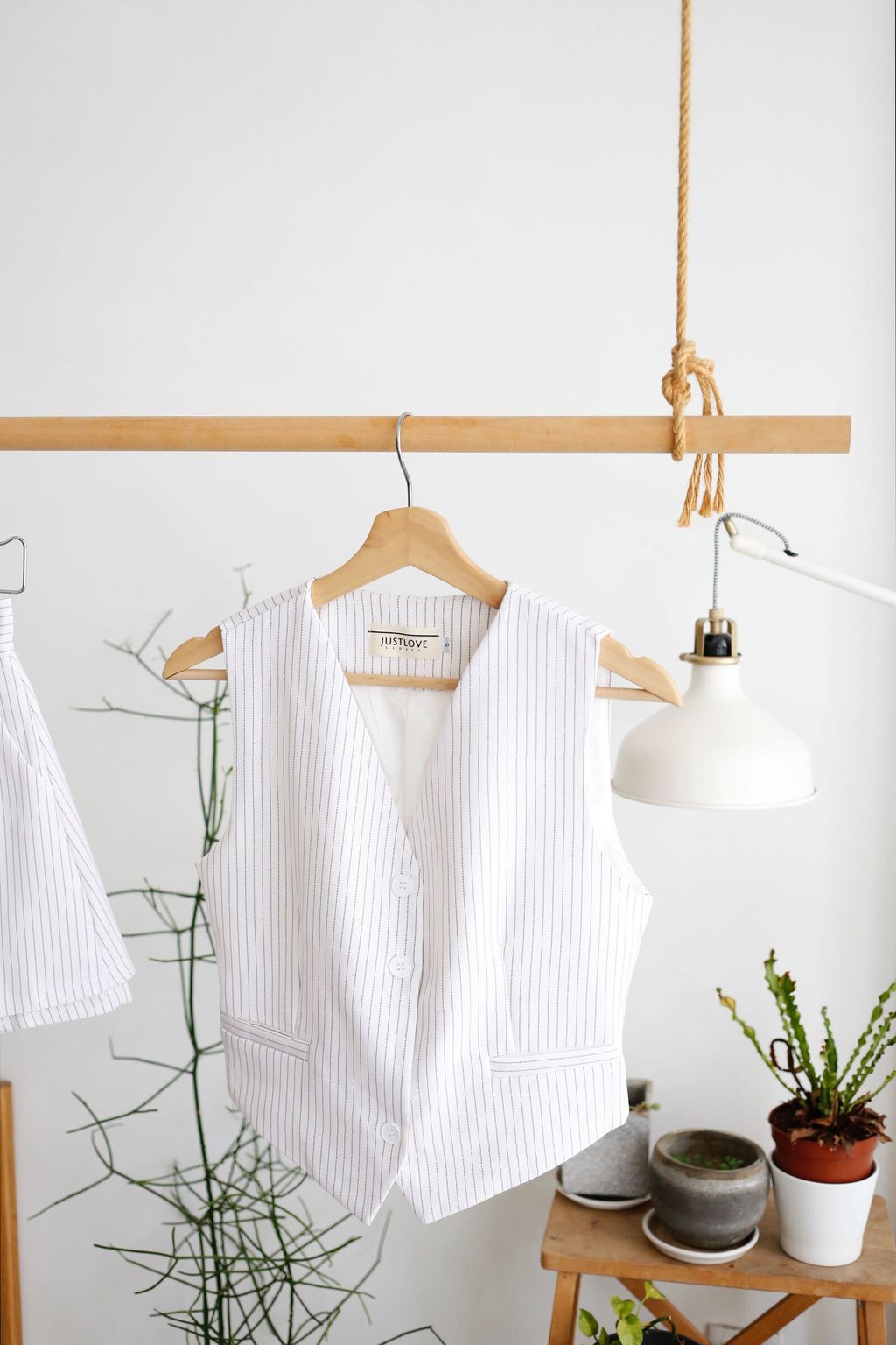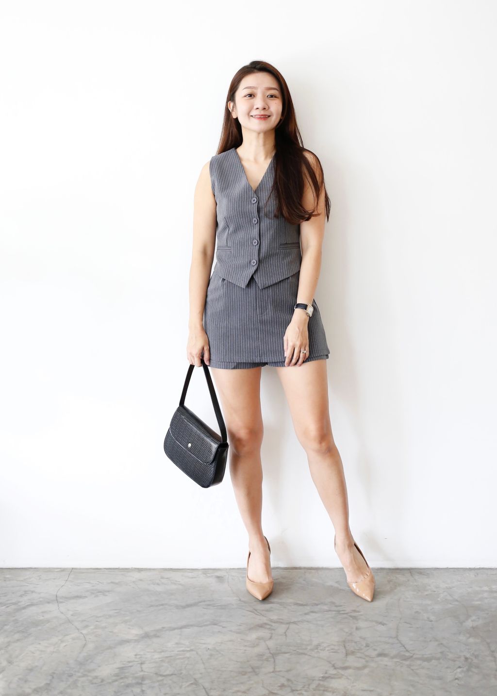 Type: 2PCS Stripey Vest and Skort Set | PREMIUM SERIES | Soft Cotton Fabric | Comes with Full Lining | Non-Functional Pocket for Vest | Not Stretchable Waistband for Skort | Front Zipper | Side Pockets