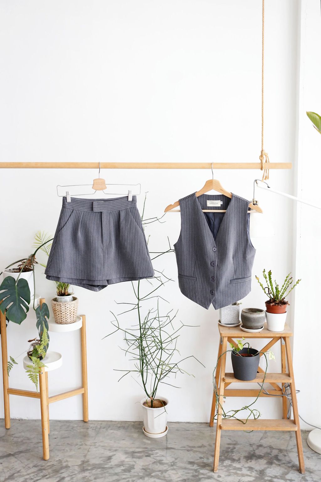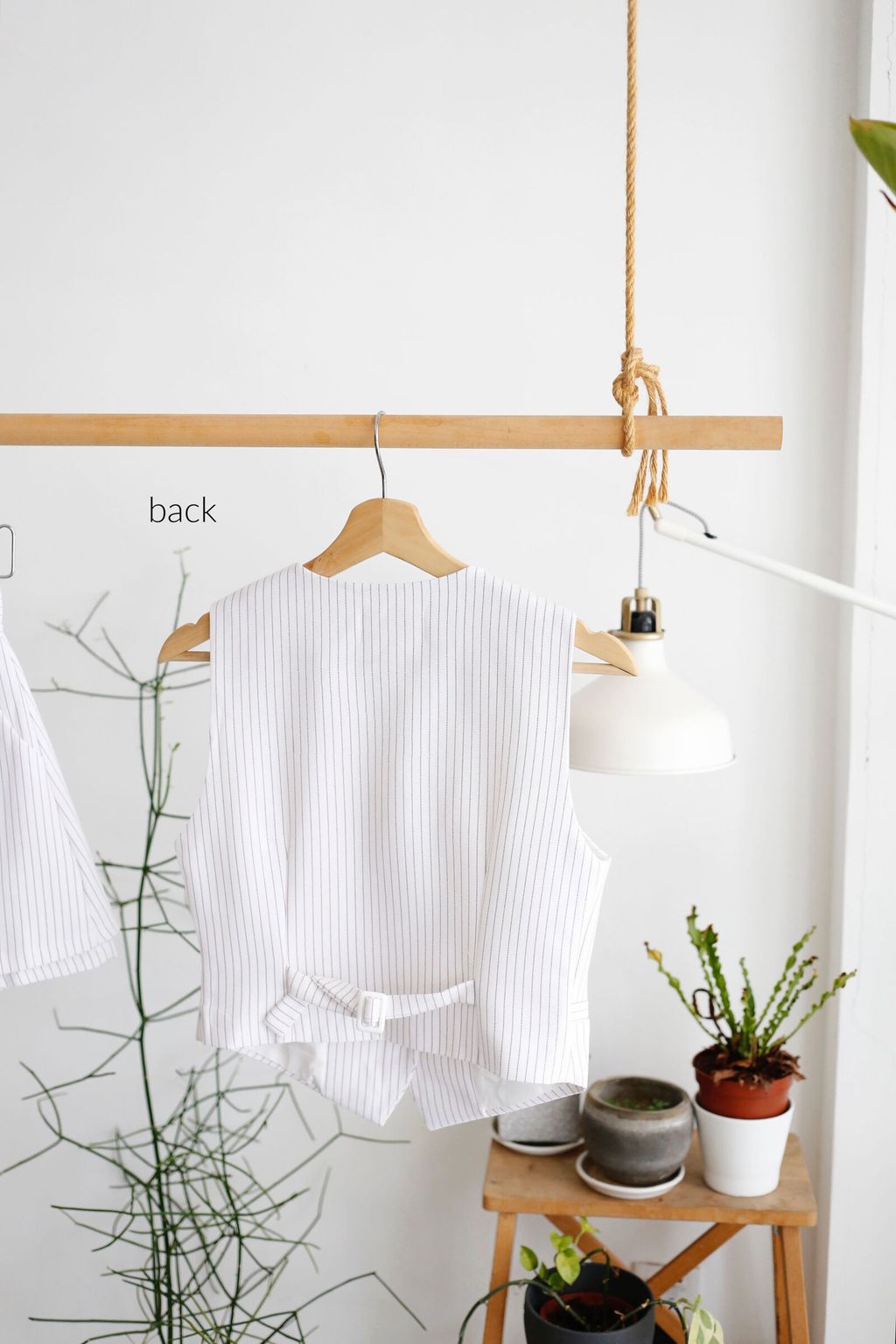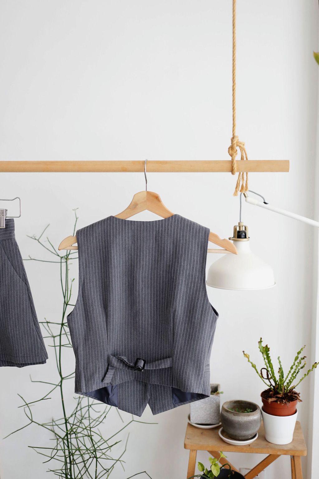 Type: 2PCS Stripey Vest and Skort Set | PREMIUM SERIES | Soft Cotton Fabric | Comes with Full Lining | Non-Functional Pocket for Vest | Not Stretchable Waistband for Skort | Front Zipper | Side Pockets