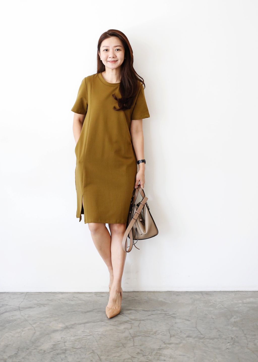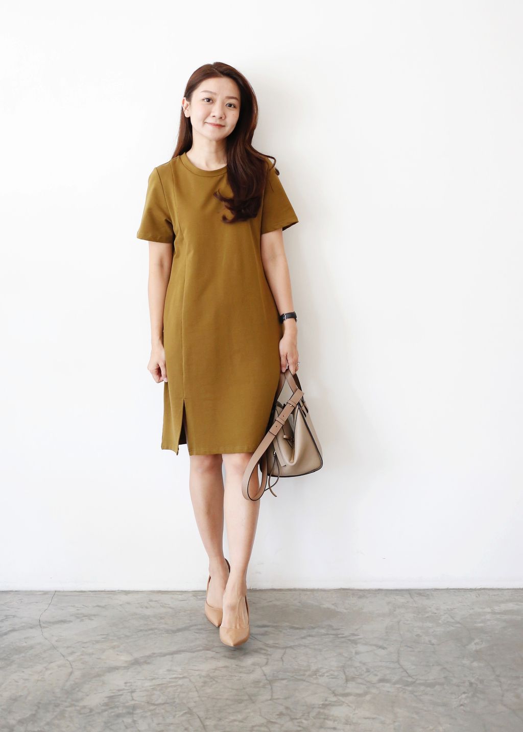 Type: Front Slit Flare Midi Dress | PREMIUM SERIES | Stretchable Cotton Fabric | Side Pockets