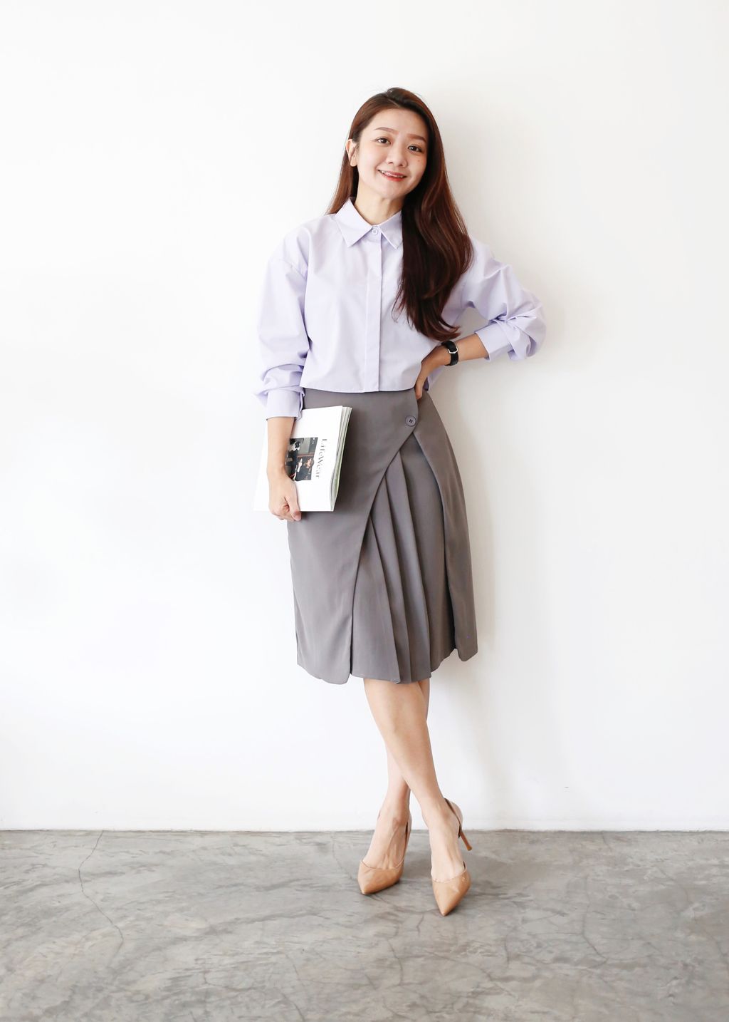 Type: Long Sleeves Boxy Cropped Shirt | PREMIUM SERIES | Cotton Fabric | Non-Functional Pocket
