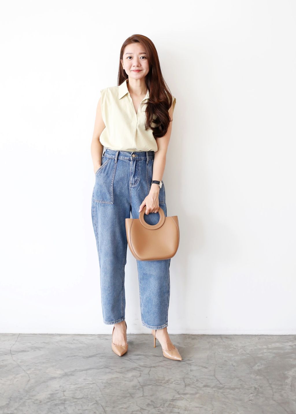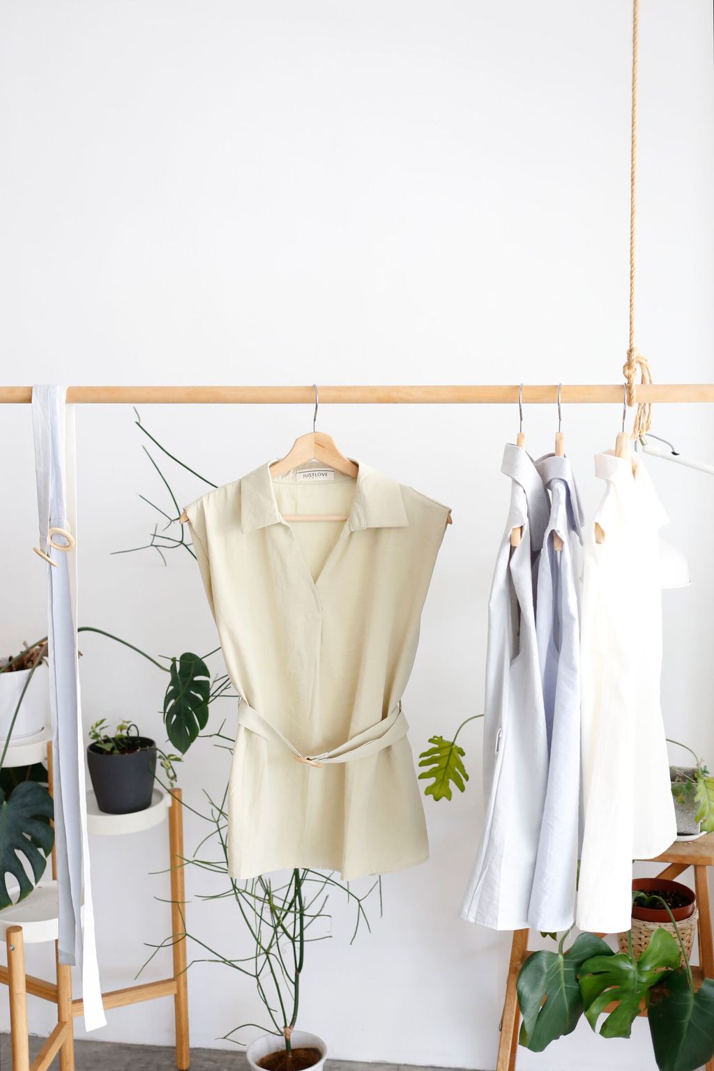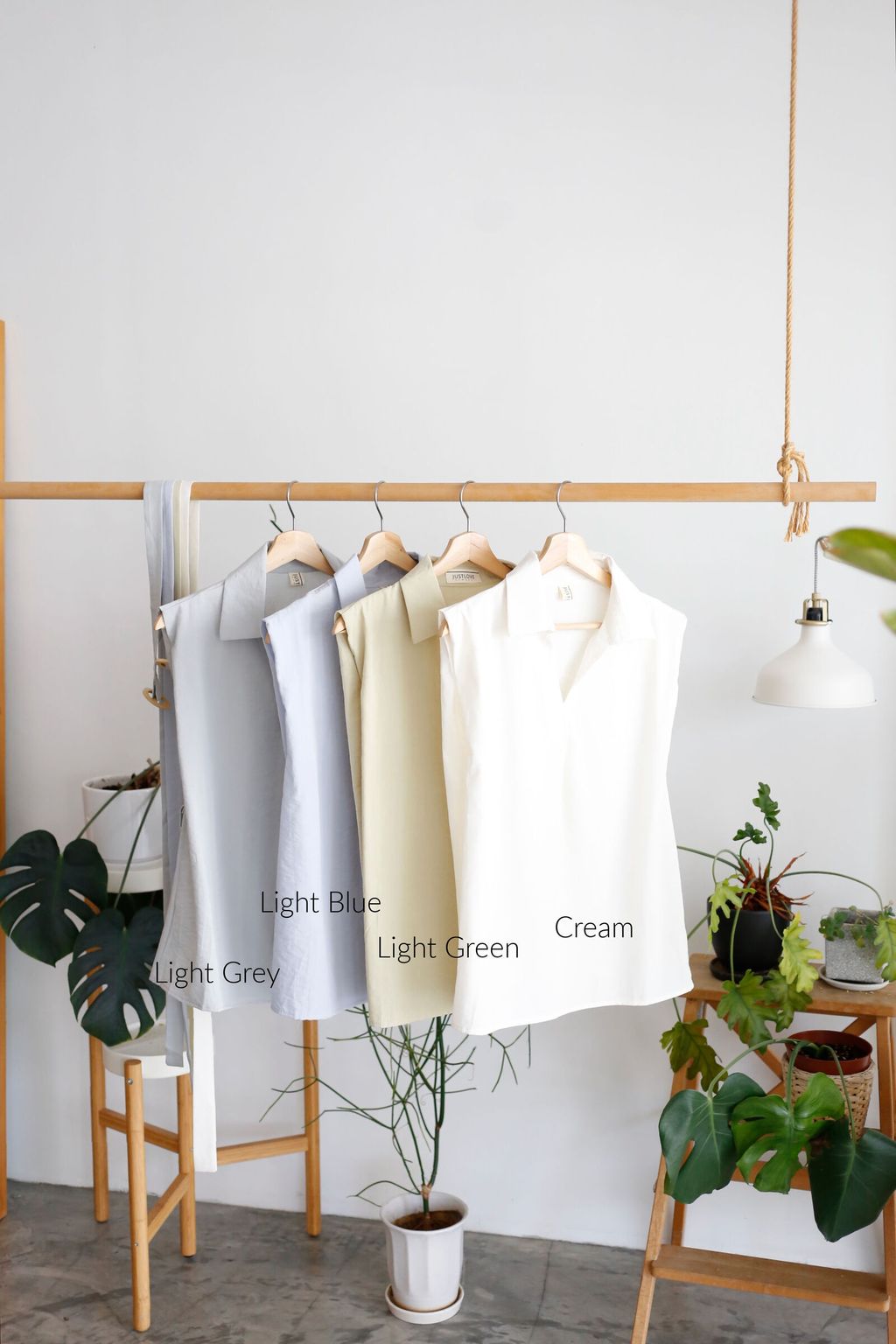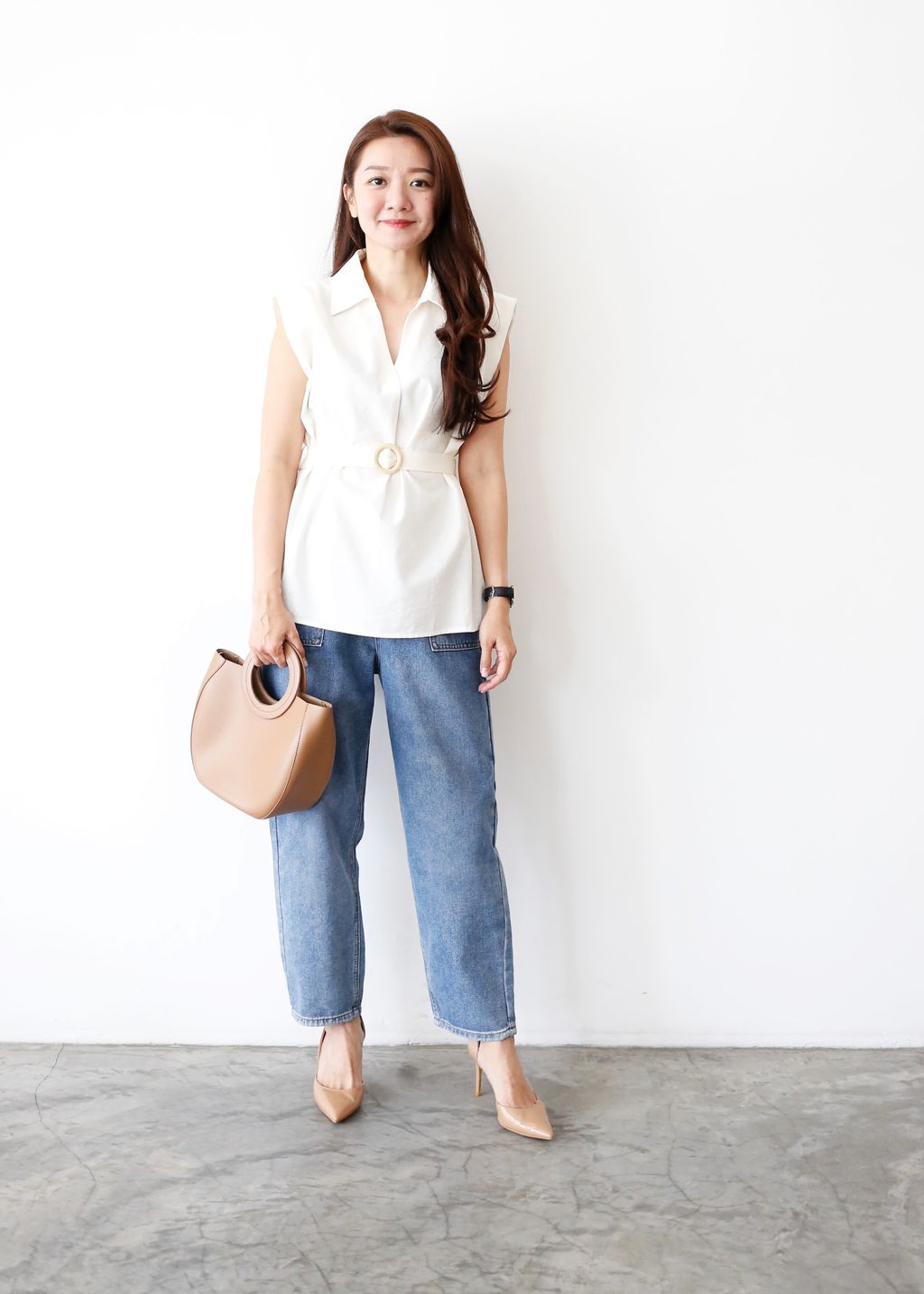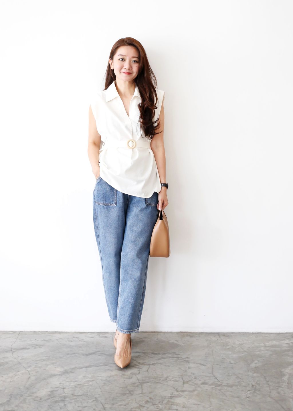 Type: Minimal Sleeveless Structured Blouse | Cotton Blend Fabric | Comes with Separate Belt with Same Fabric