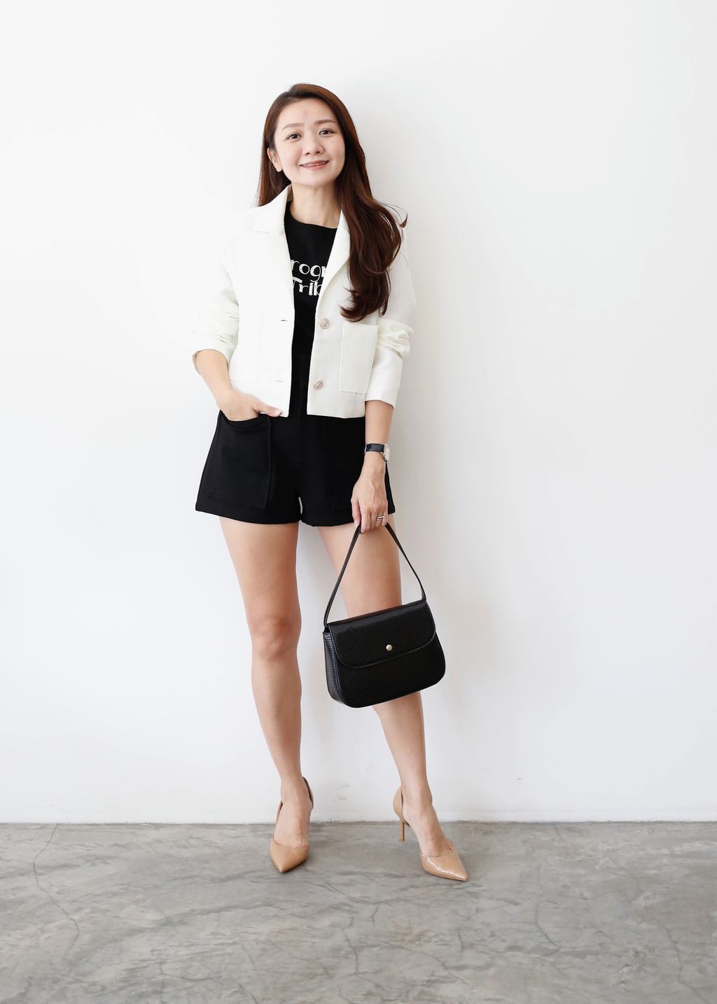 Type: Urban Tweed Cropped Blazer | Tweed Fabric | Not Stretchable | Comes with Lining | Comes with Shoulder Pad | Front Pockets